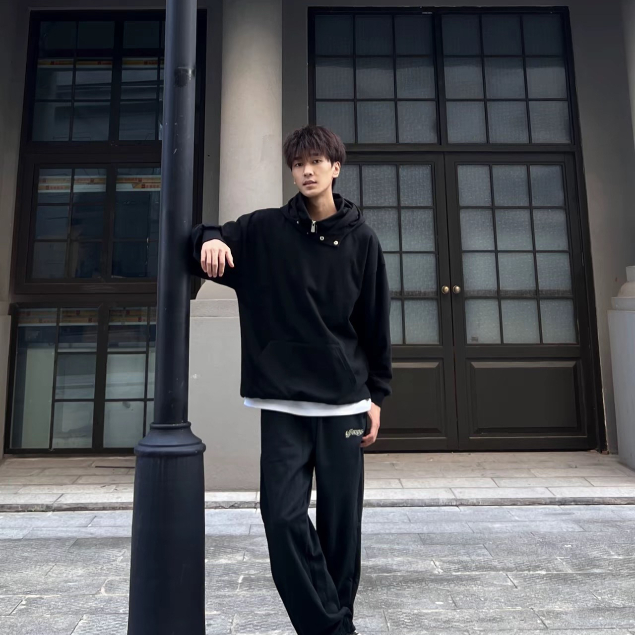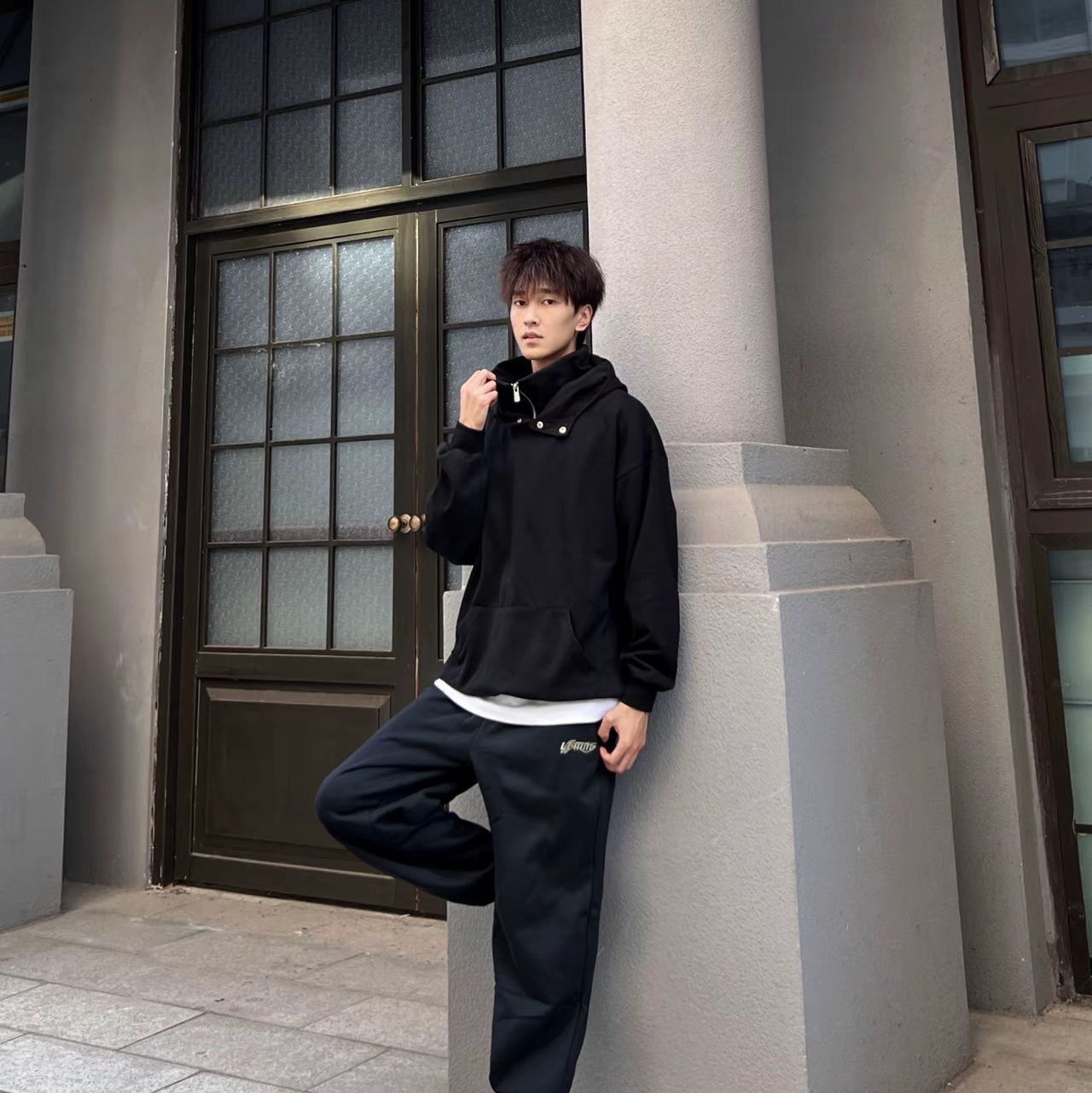 ➖M卫衣1黑卫裤白色板鞋 身高180体重110尺码上身XL hi 白李宁 家的黑色卫裤✔️ 经典黑色的配色上身百搭休闲 面料柔软舒适 透气不闷肤加绒设计 秋冬暖暖入冬 束脚裤 抽绳设计方便穿脱👣 图片来源于@Stone石石石头