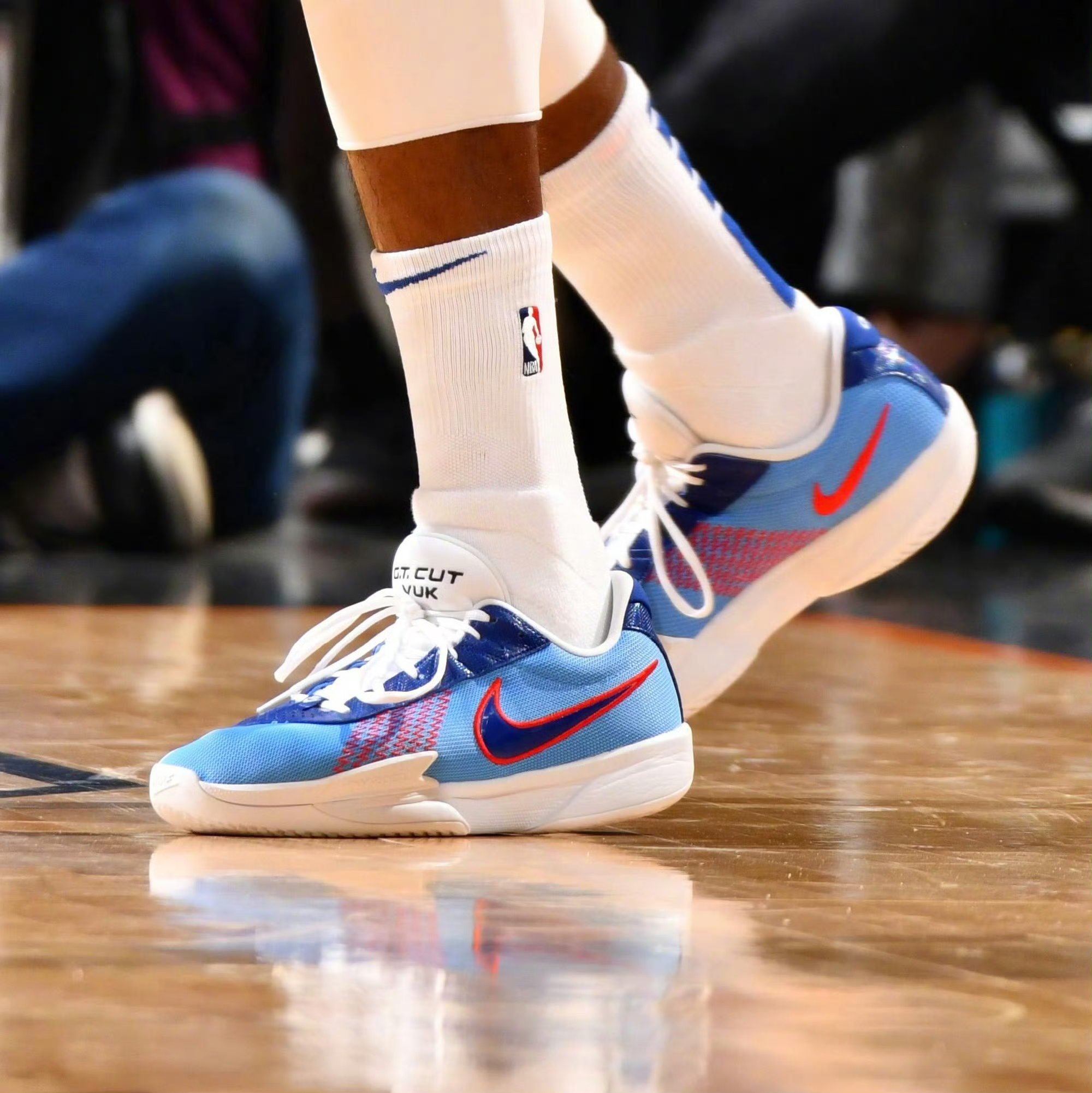 Nike KD 17 PE Nike GT Cut Academy「King Vuk」 杜兰特上篮准绝杀全场35+4+6,乔治跳投绝杀球未果,这场也是好看的!今儿复出的乔治穿的是Nike By You定制的GT Cut Academy;阿杜穿的是一双金黄色迷彩风格的KD 17 PE版本;