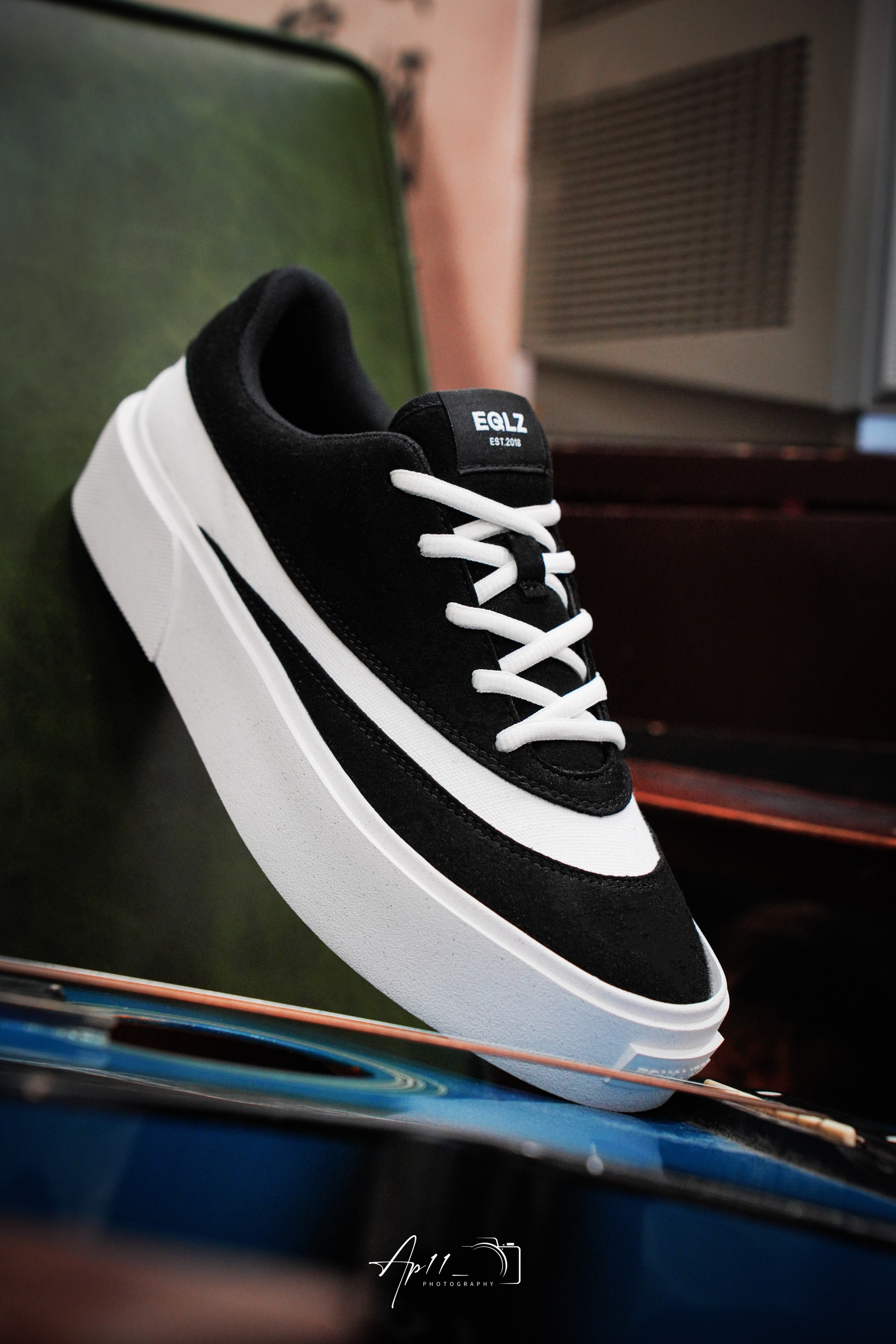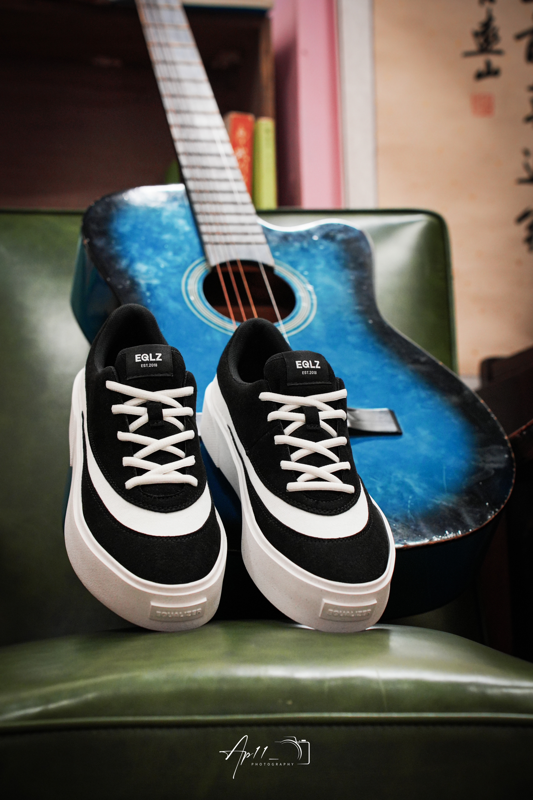 作为日常搭配中的万金油, 板鞋简直就是一大利器, 秋冬季当然也少不了黑白配色的板鞋啦, 我选择EQLZ的Fault24。 不仅百搭耐看,还很高级。 而且还不容易撞鞋。 基础的黑白撞色, 在视觉上也具有冲击感。 鞋面弧形的白色设计还是蛮有辨识度的。 无论是日常穿搭的长裤,还是短裤都能轻松驾驭。
