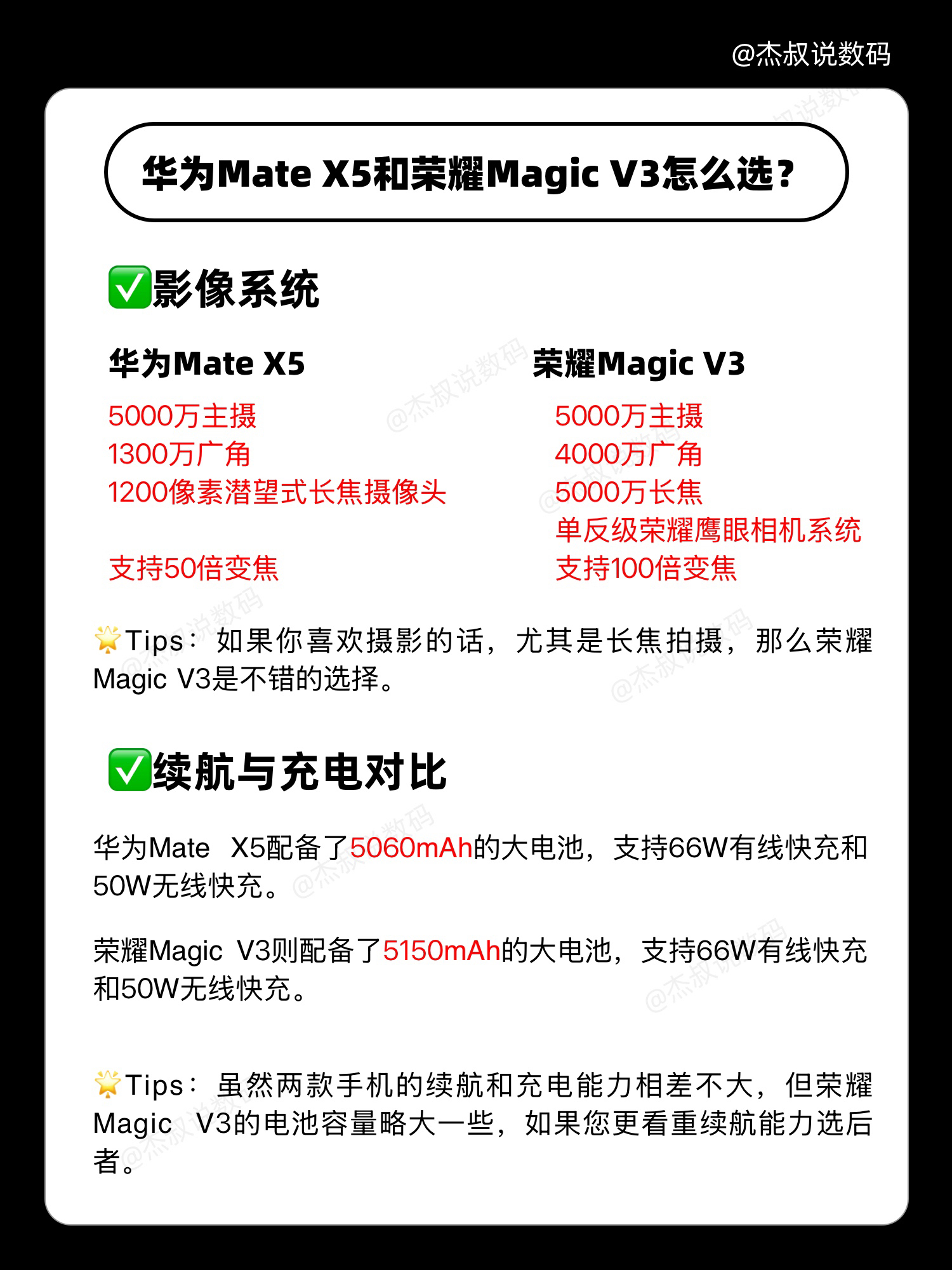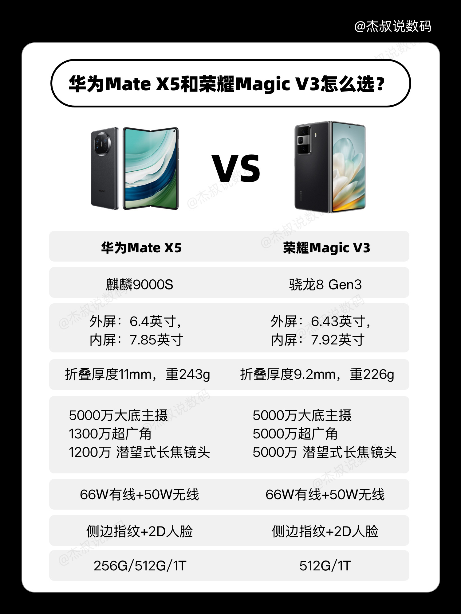 📱 如果你正在考虑入手一款折叠屏手机,华为Mate X5和荣耀Magic V3你肯定会纠结!今天,我来帮大家分析一下,哪款更值得入手! ✅外观设计 都采用金属材质,荣耀后盖为更耐摔的羽纤材质,玻璃是荣耀金刚巨星玻璃,折叠厚度9.2mm,重量226g 而华为后盖是羽砂玻璃,玻璃玄武钢化昆仑玻璃,折叠厚度11mm,重量243g 🌟 Tips:考虑轻薄和耐摔,荣耀更适合; ✅配置 荣耀:高通骁龙8Gen...
