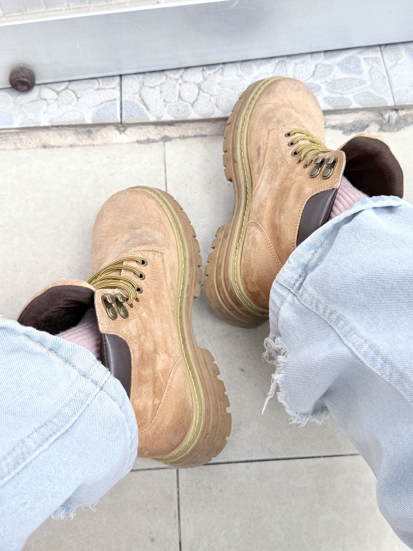 这双鞋一上脚 我就知道我买对了 它的舒适度简直了 软软的鞋底 让我的脚仿佛踩在云朵上 而且它的厚底设计 让我瞬间增高了几厘米 它的颜色也很特别 浅棕给人一种很温暖的感觉 而且它的设计很时尚 工装风格非常帅气