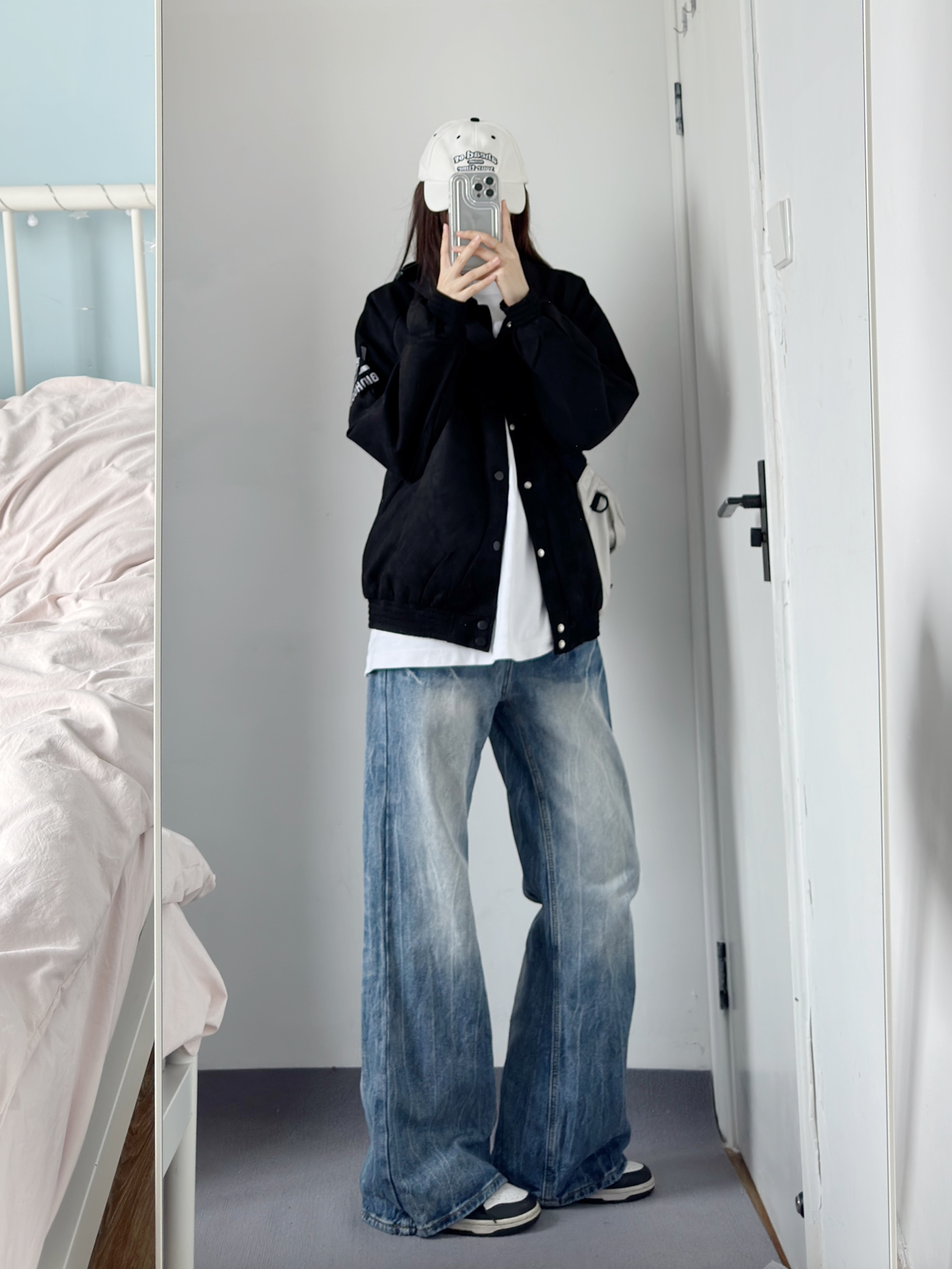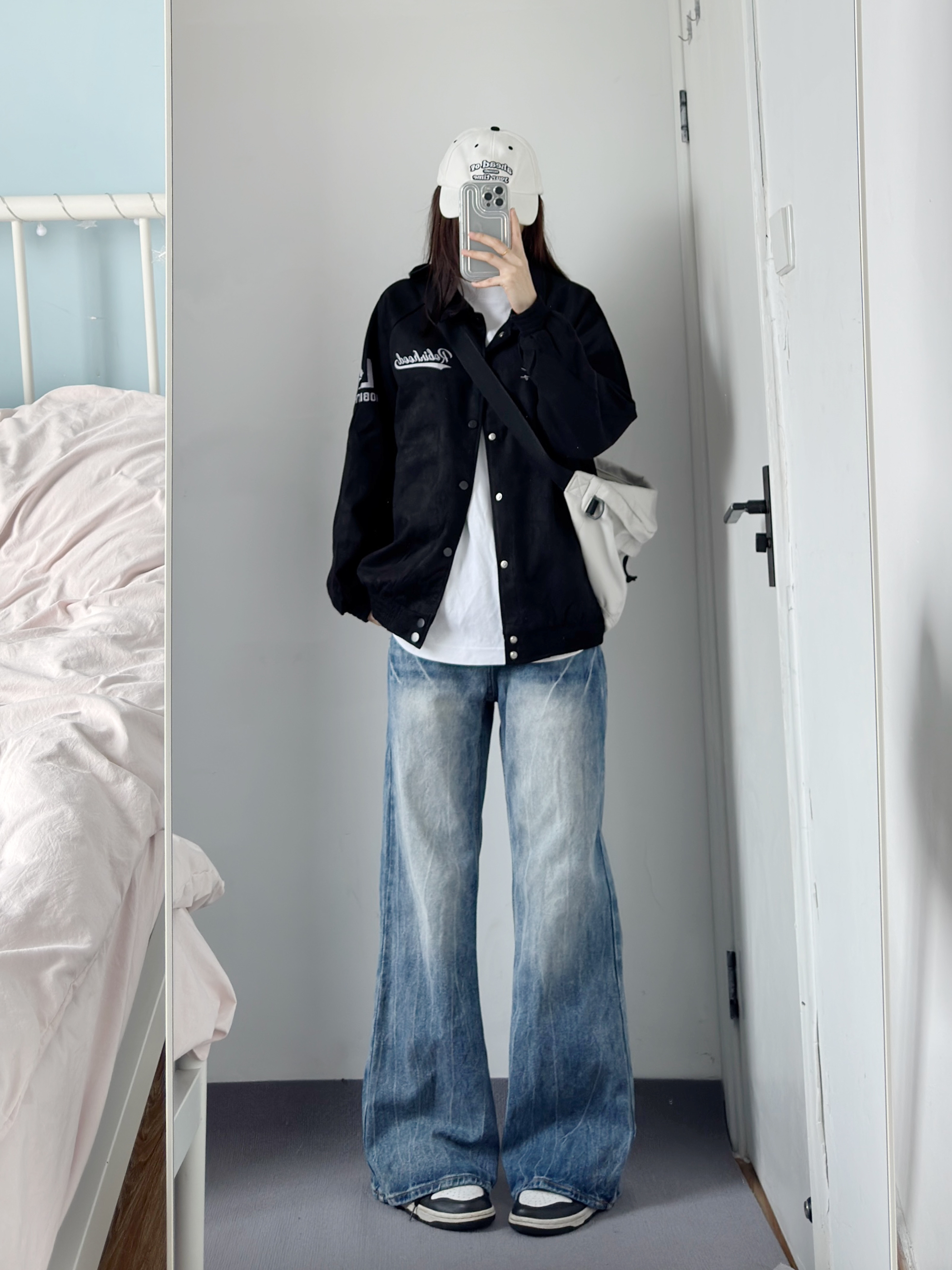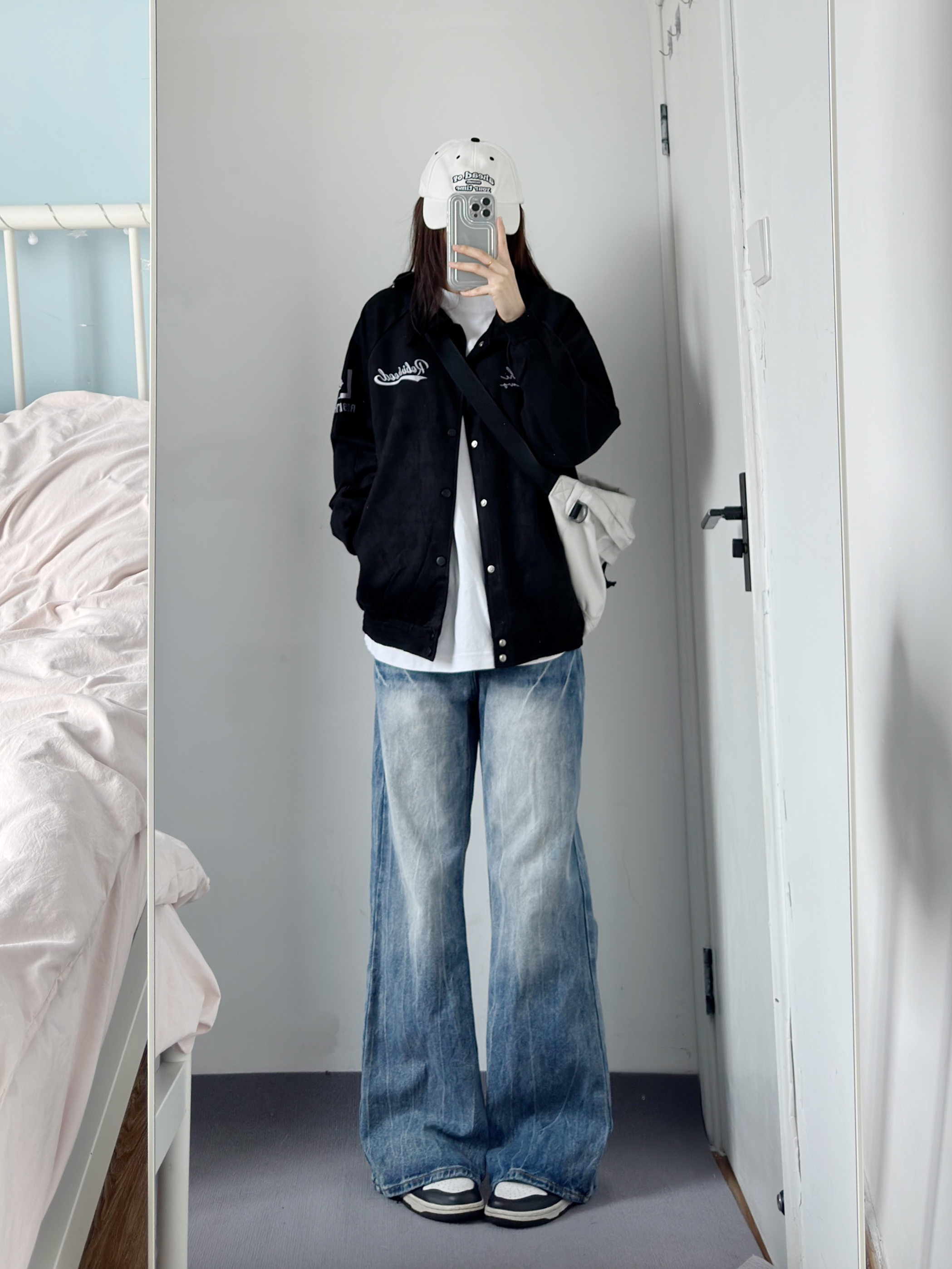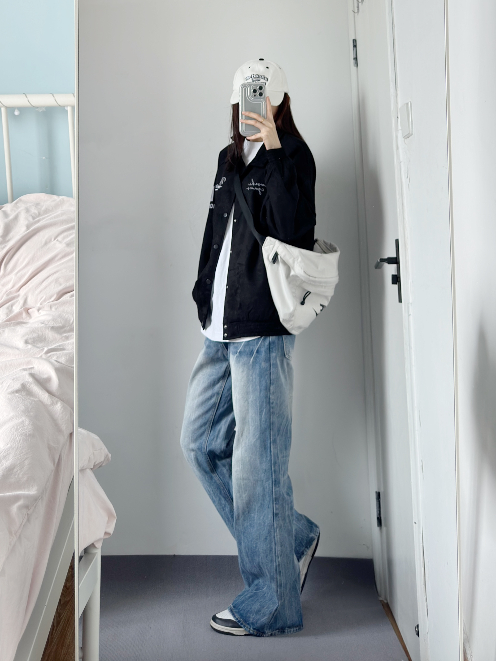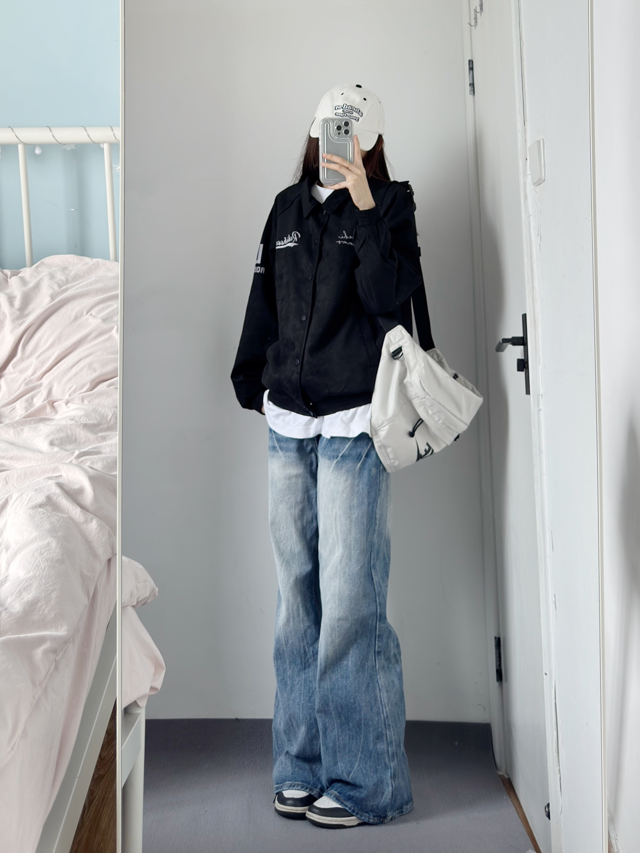 谁懂!黑色夹克真的太帅了😎 建议人手一件!! 叠穿卫衣或者叠穿白t都可以 再搭配一件牛仔裤休闲帅气风拿捏咯🫴