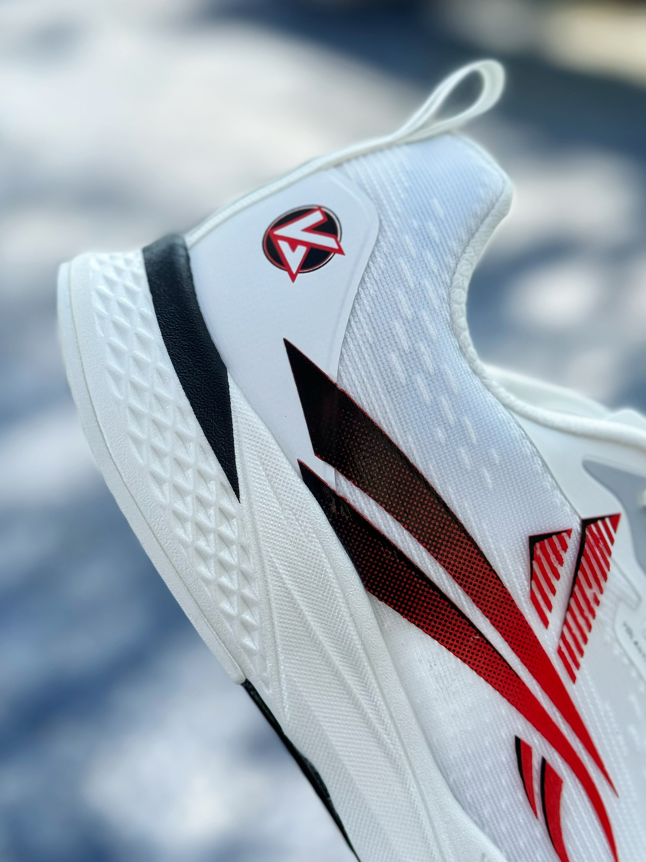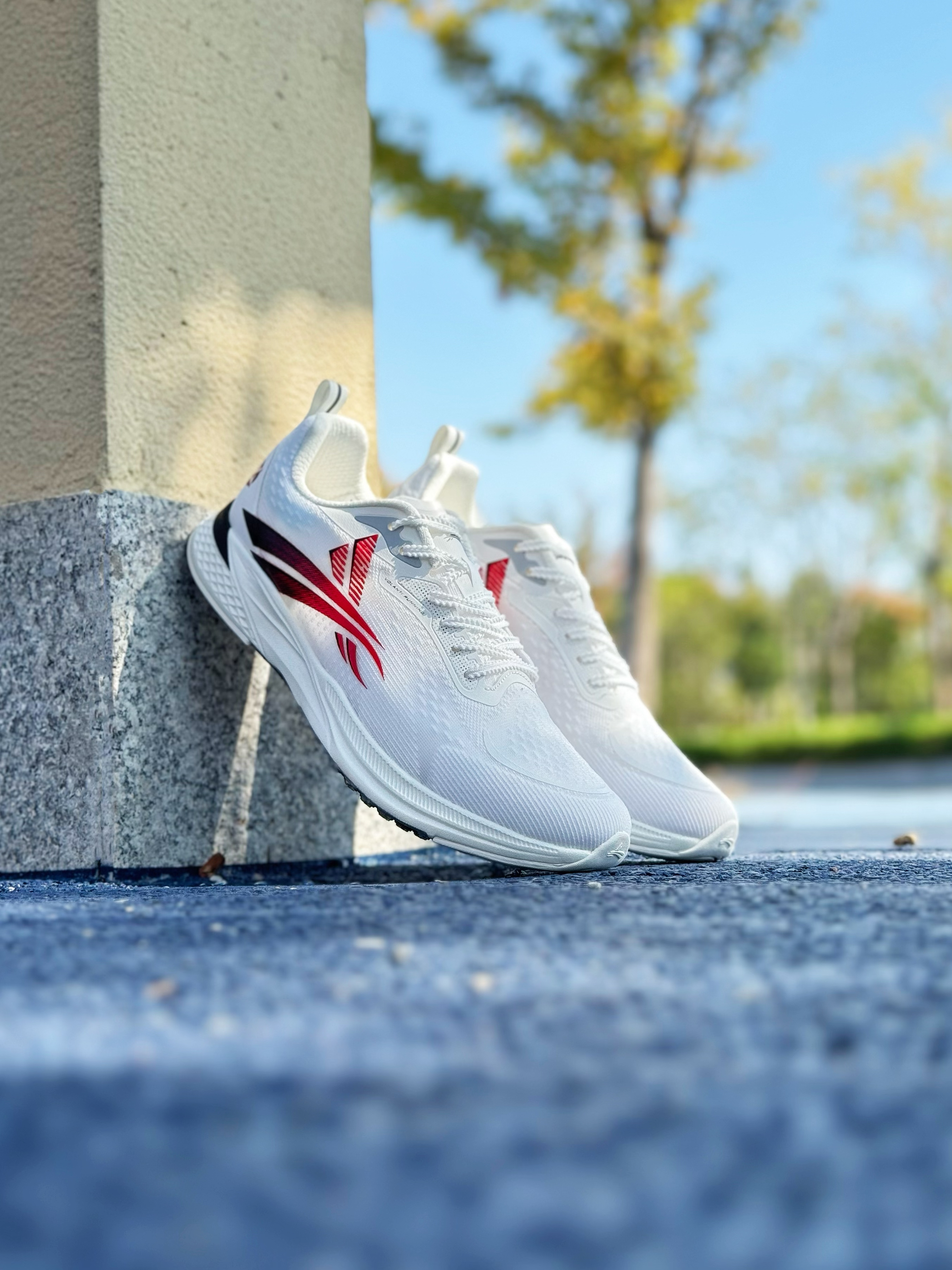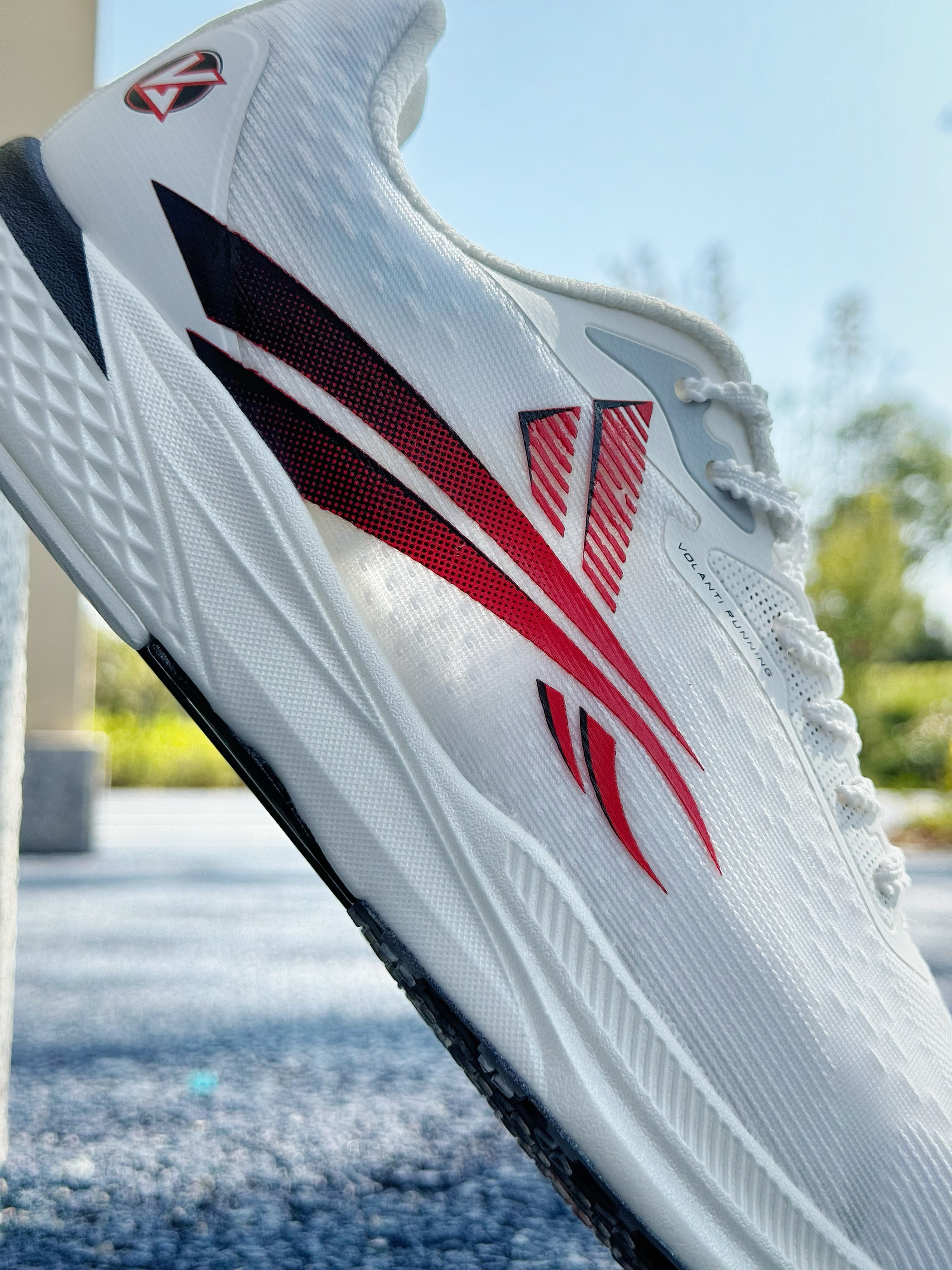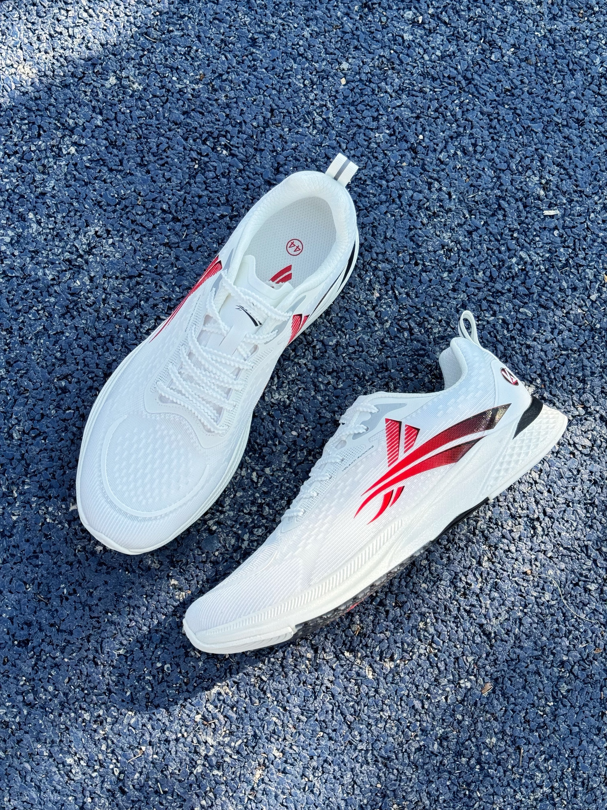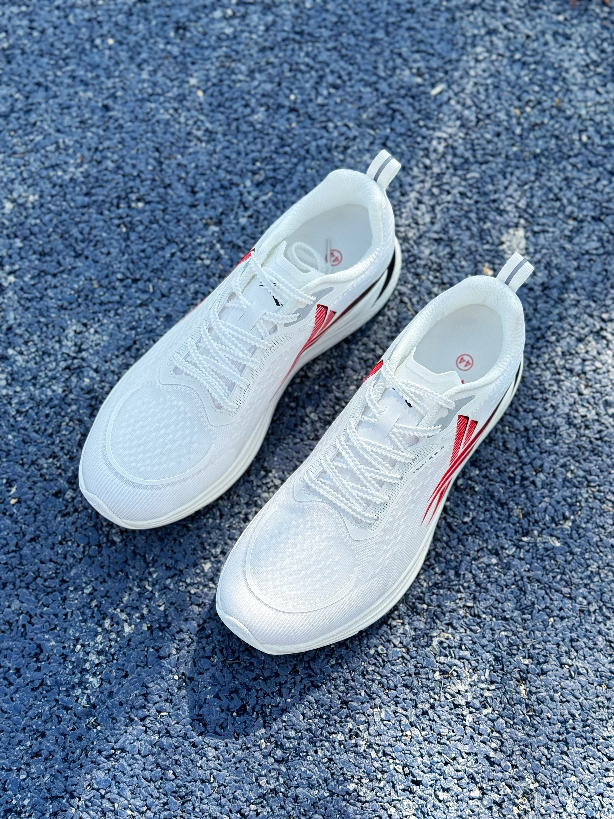 跑鞋不耐脏是缺点?还是先看颜值… 这双梦幻闪电 学院配色算是所有配色中最不耐脏的了吧😆好在颜值还蛮高~ 鞋身以白色为主,侧面logo则采用黑红渐变 整体来看还是比较干净 上脚也百搭~ 梦幻闪电系列还是蛮受体育生喜欢的 原因就是鞋型、配置以及颜值 🔥鞋身采用双层贾卡网面 搭配中底全掌V800碳板,透气性足够,并且整体刚性较强 有着不错助推感 🔥鞋底也是采用凸起类似“鞋钉”纹理 防滑性也到位 尺码偏小...