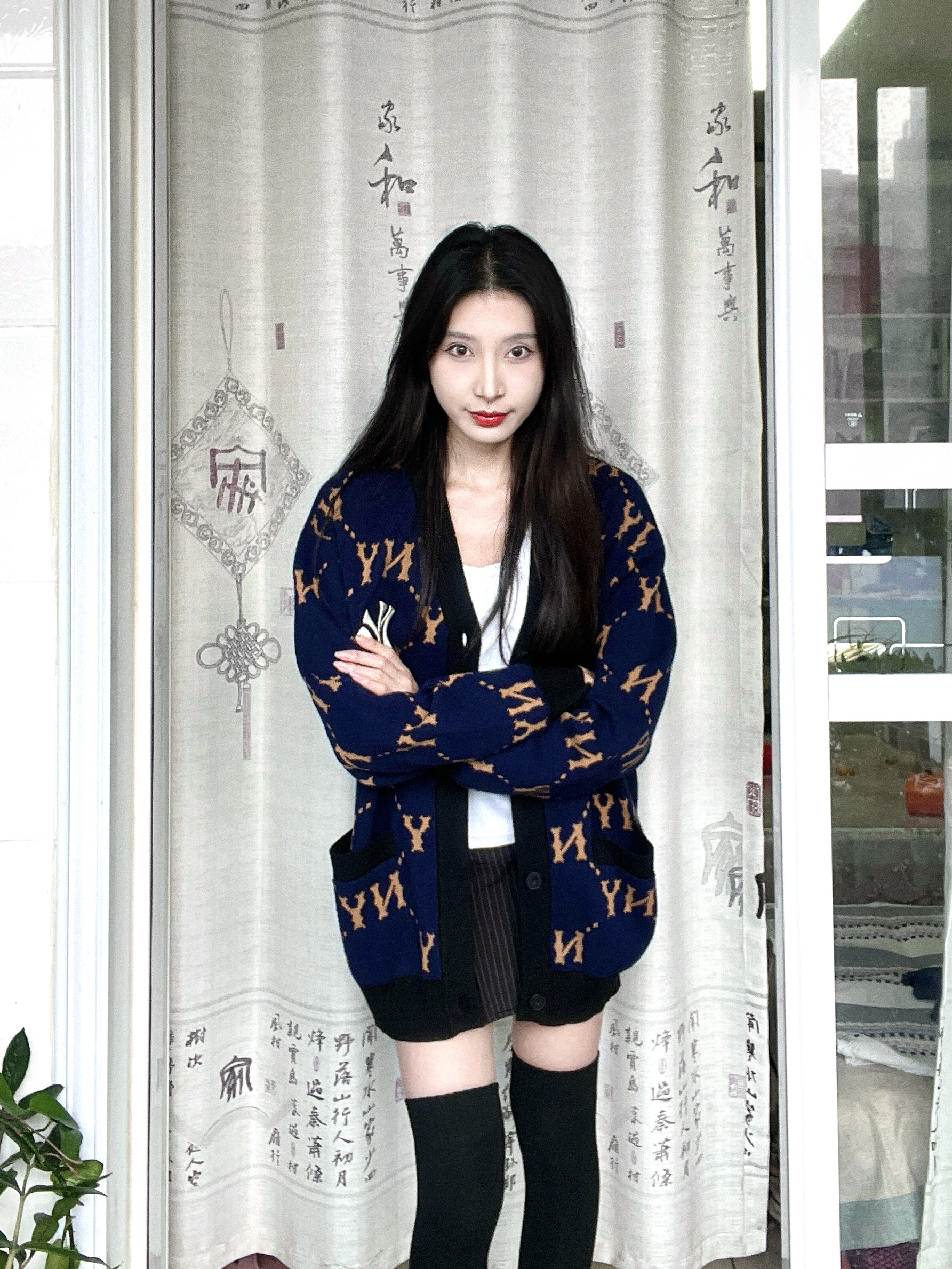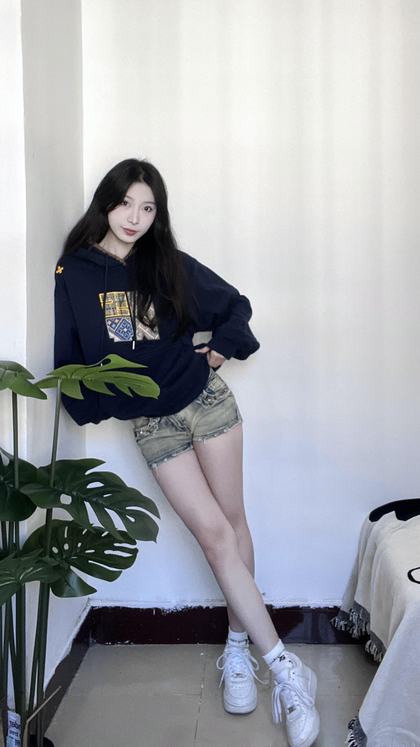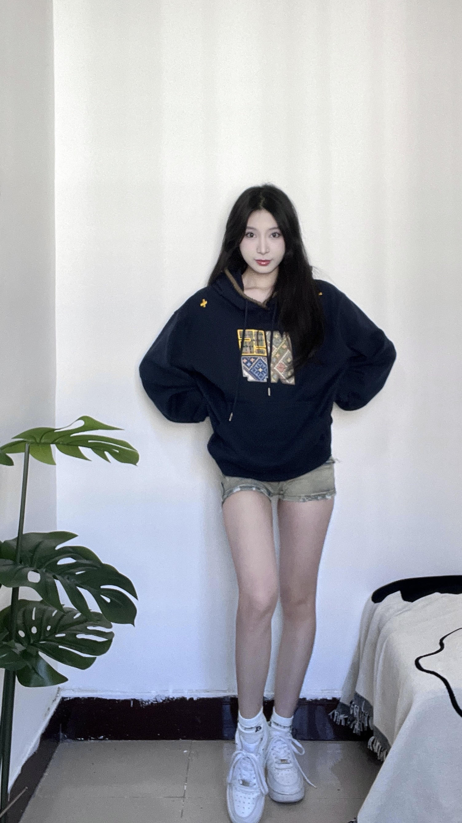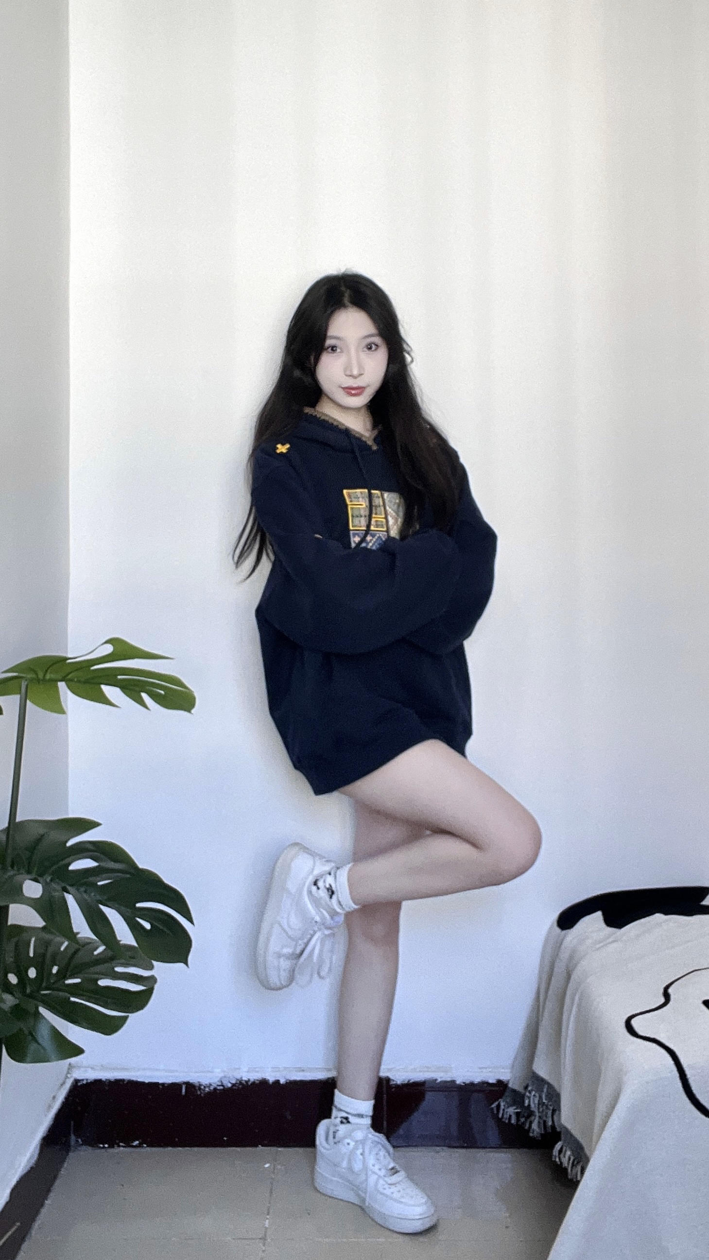 藏蓝色卫衣加上针织的图案真的hen时尚 帽子边边上针织的一圈感觉设计感满满 很适合秋冬的一件卫衣 衣服上的图案也是布料的不是烙上去的那种 是衣服看起来更有质感 衣服很厚实很有重量单穿出去一点都不冷 很青春活力的感觉