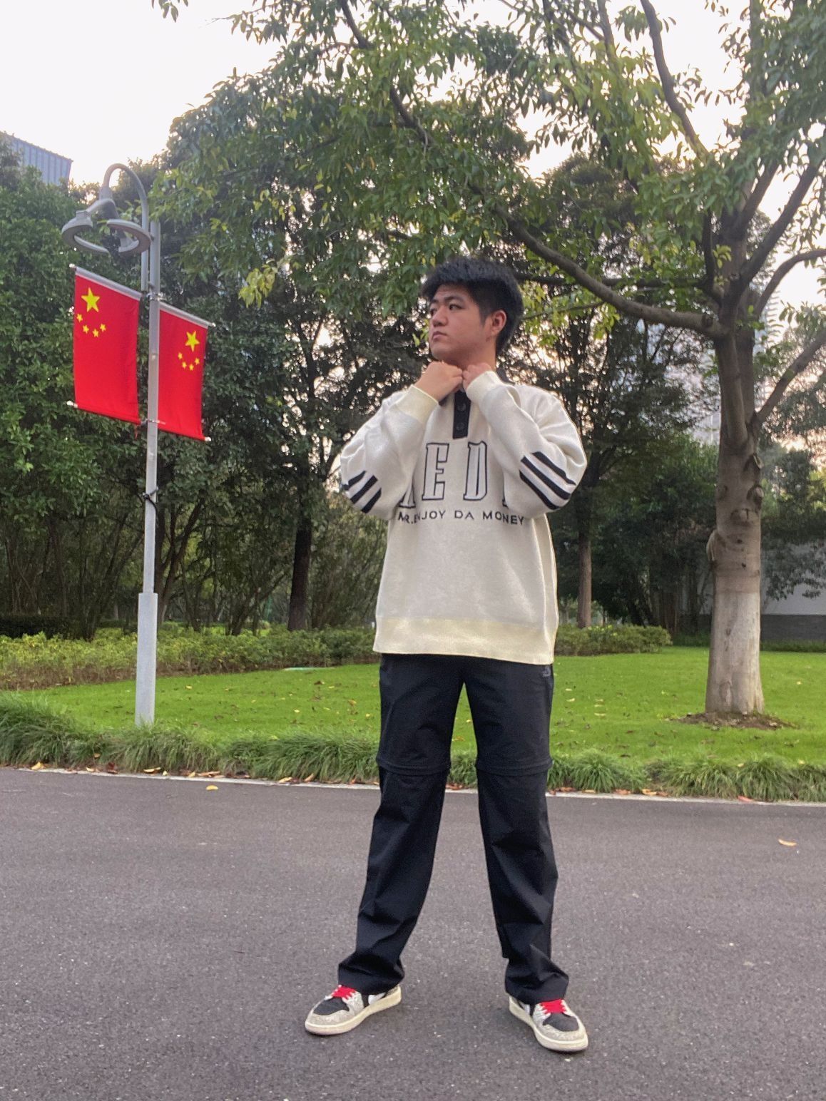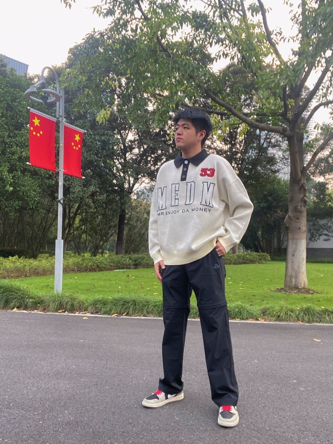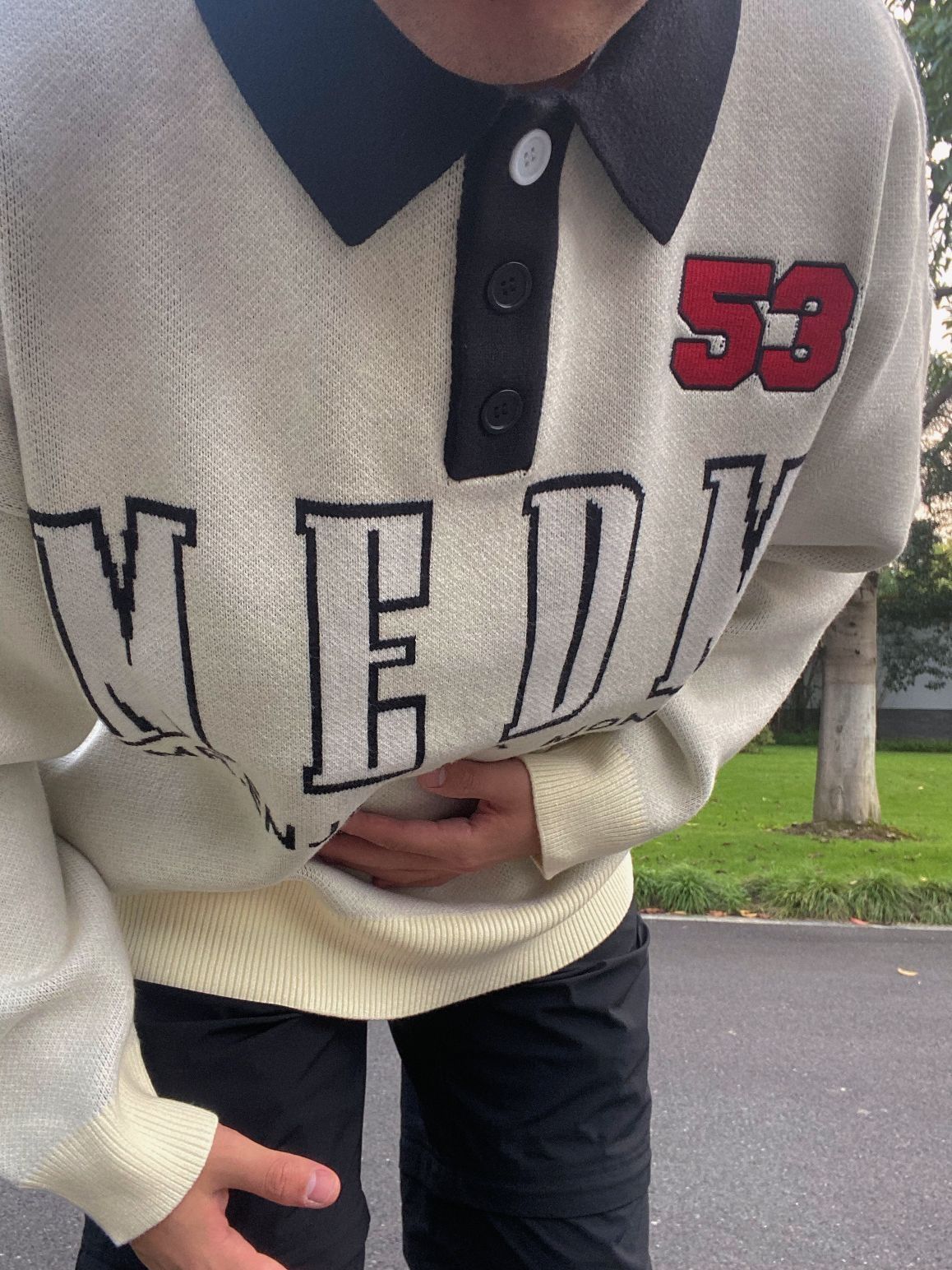 翻领的设计我穿的真的不多 有点乖乖的但是又有美式街头风的feel 材质面料非常柔,单穿也不会扎肉 白色polo衫毛衣真的别有一番风味