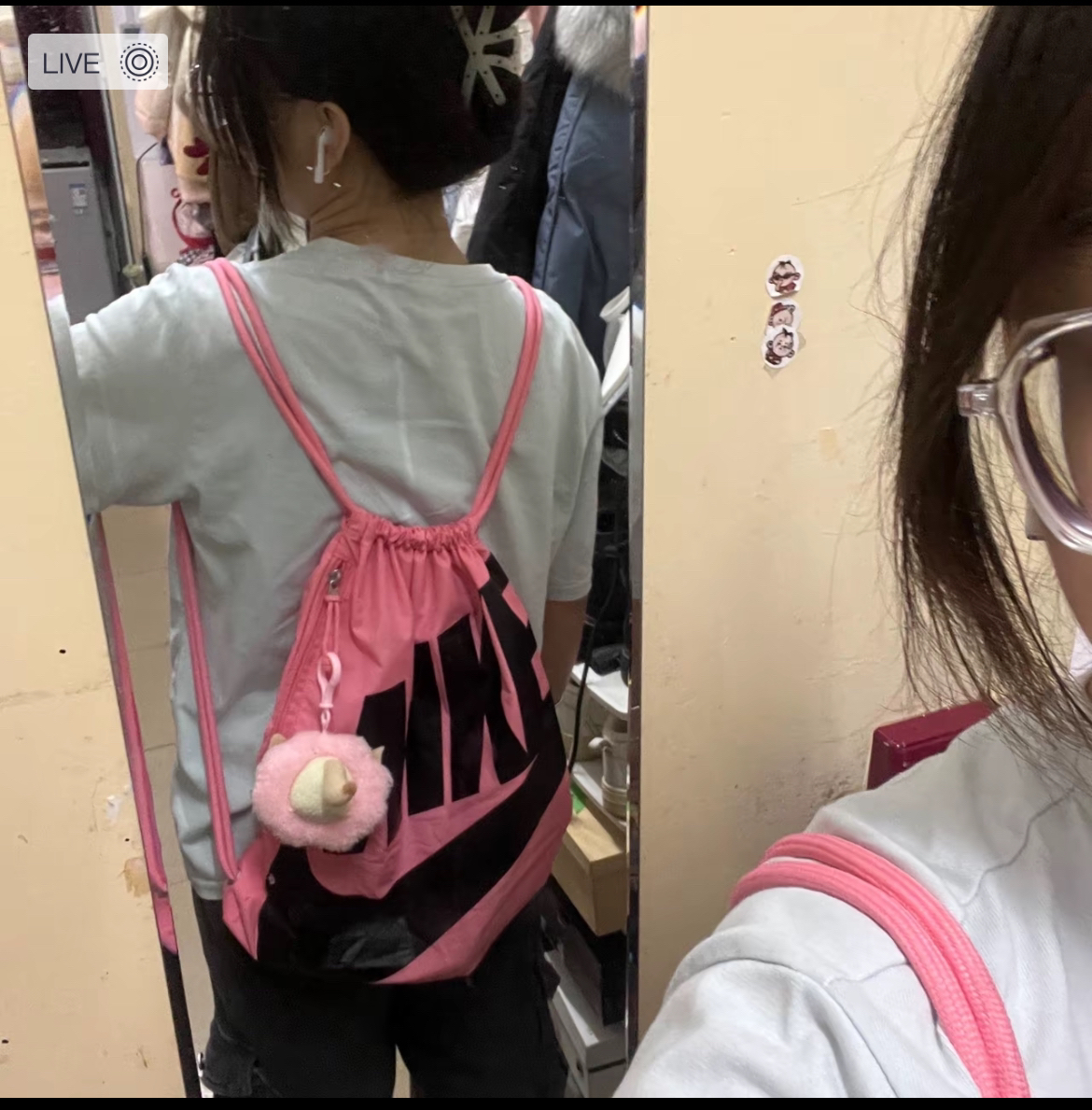 这是我第一次晒出自己日常上课背的书包 tips:大容量+颜色显眼(鲜艳)+适合潮流运动儿 Nike抽绳包就适合不用背电脑,书本不重的时候背,毕竟肩带较窄哈~