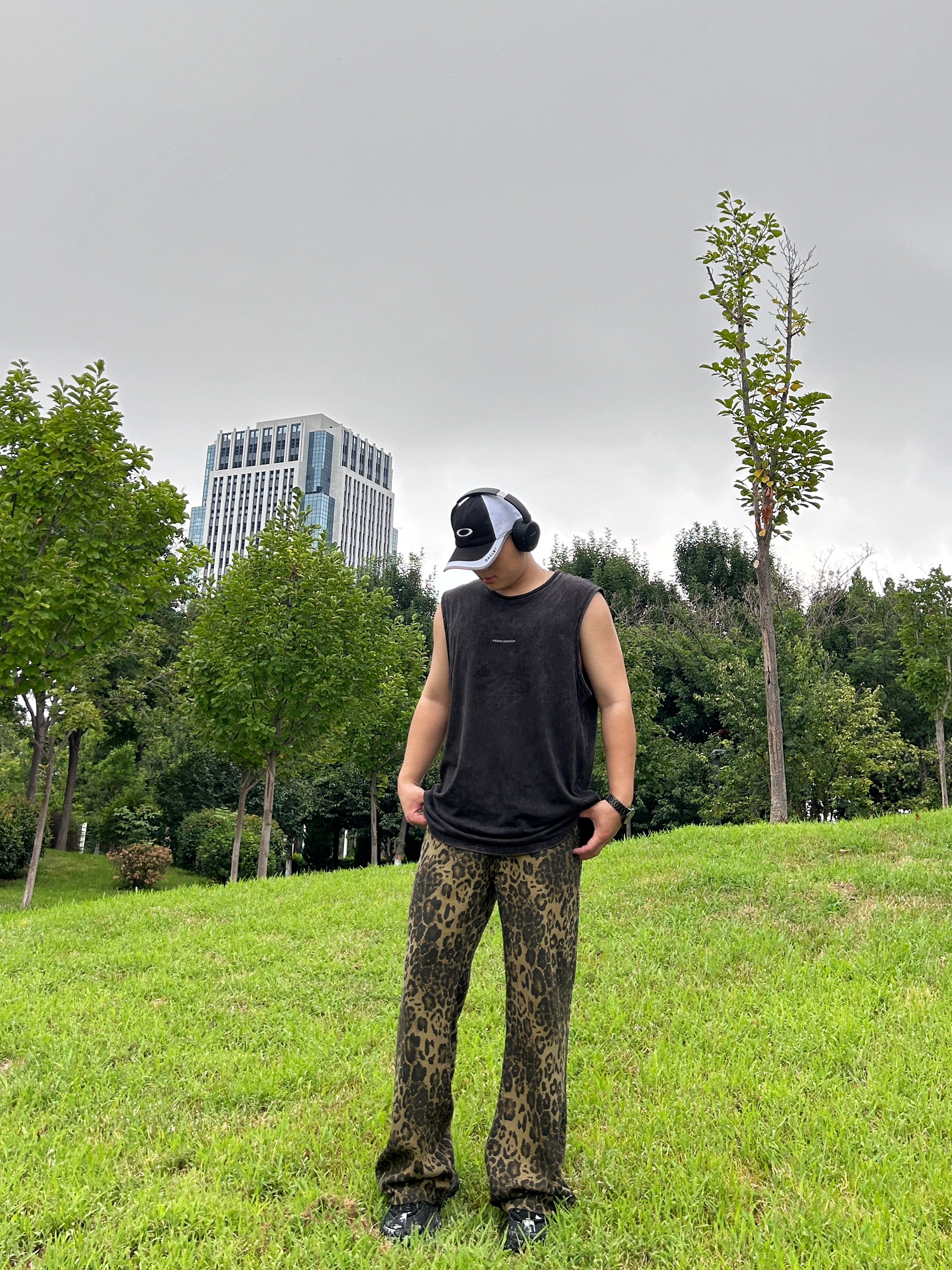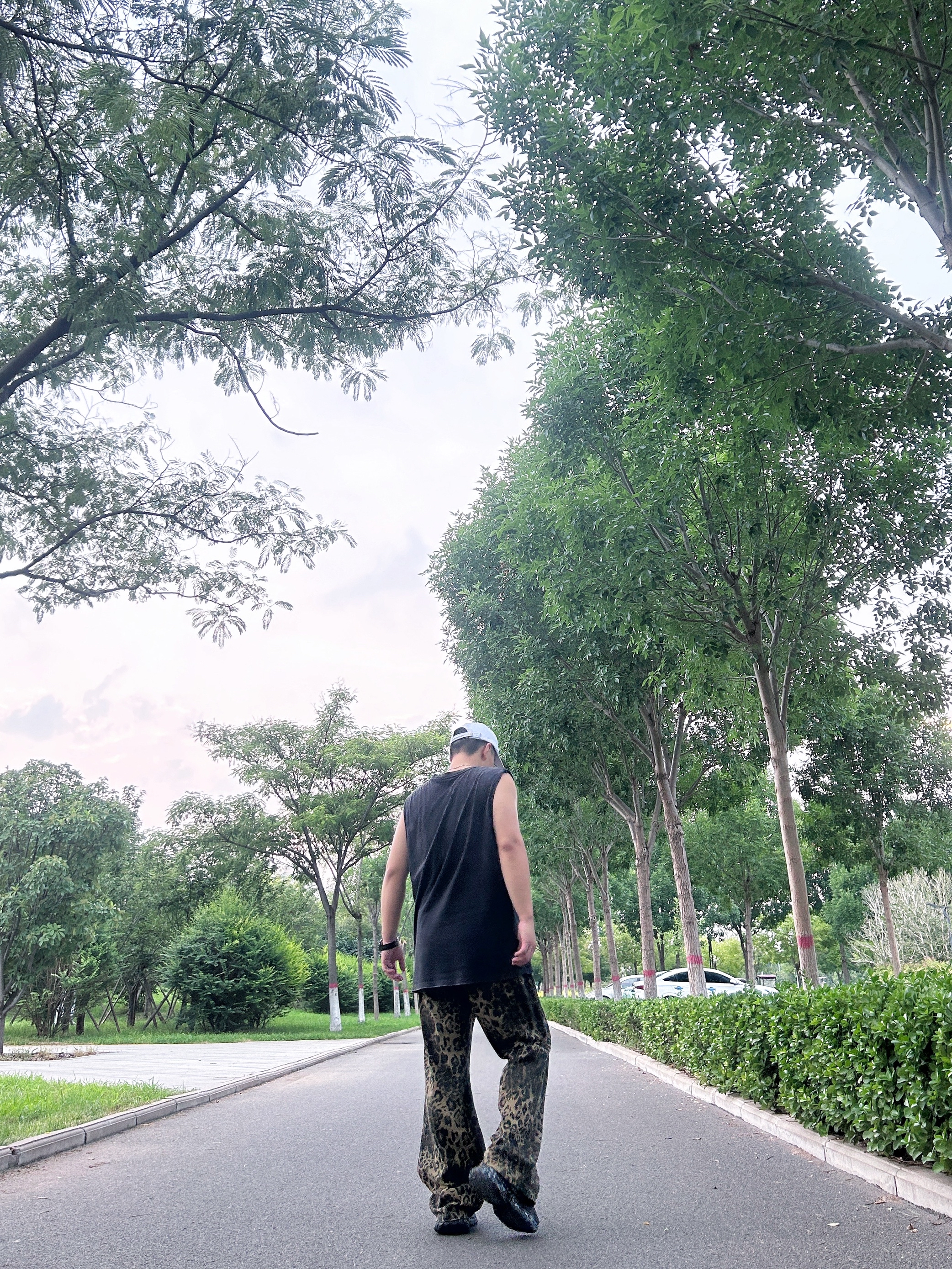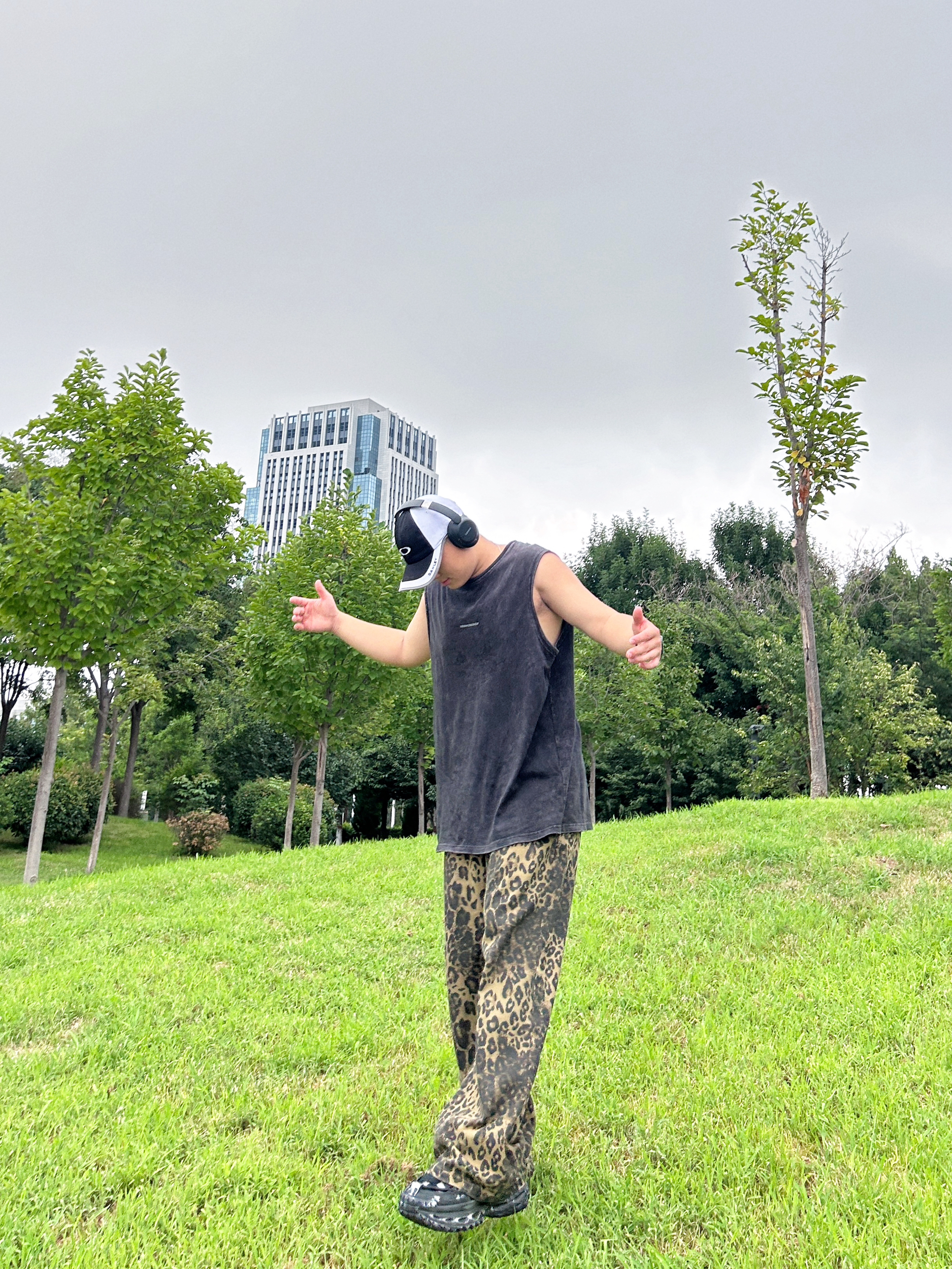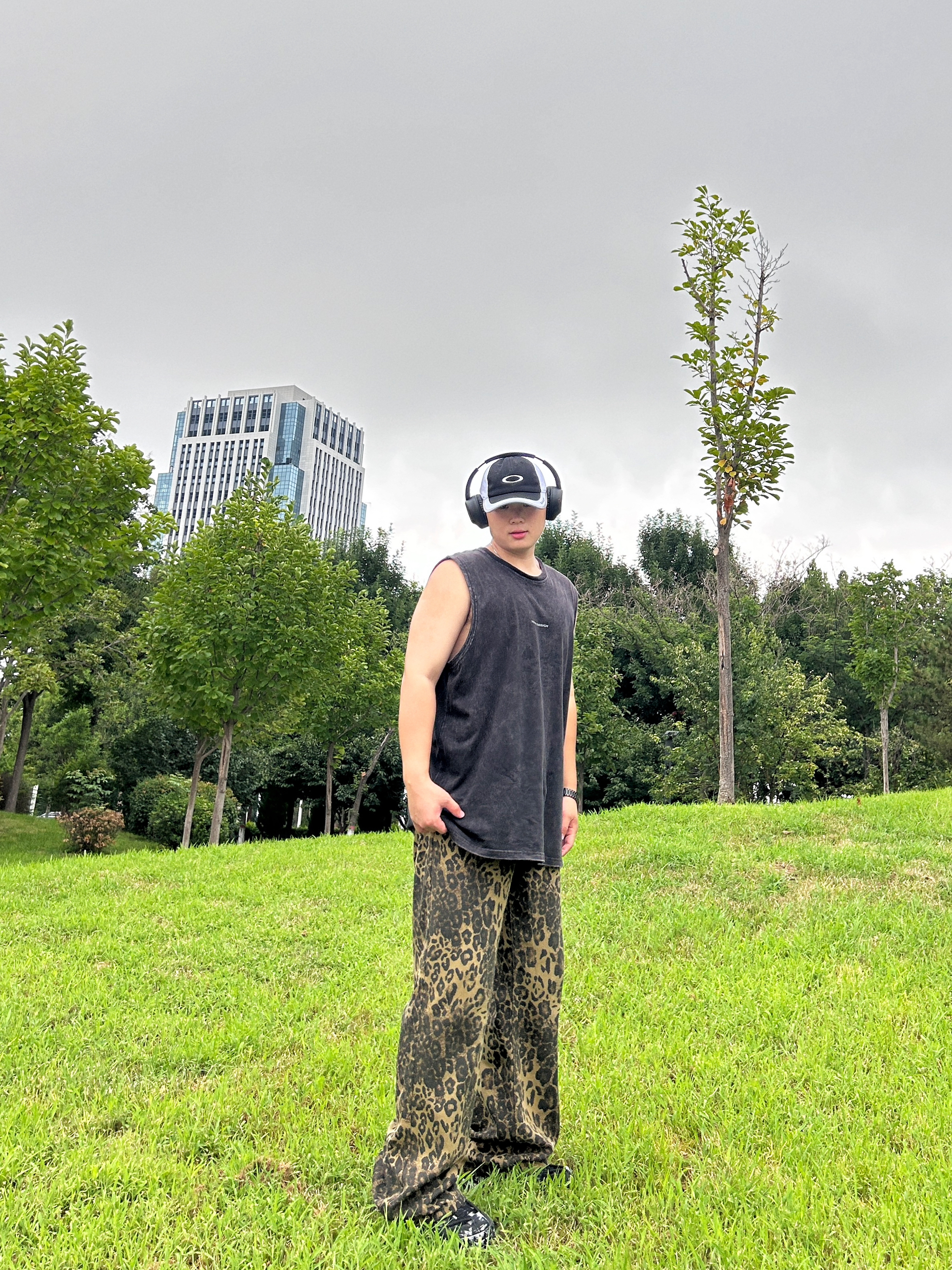 新生出街,你会怎么选? 美式黑色T恤搭配豹纹长裤 穿着休闲的慵懒感 下面上脚一双平底板鞋 出街也是会有底气的 首选的时尚单品 酷酷安排了
