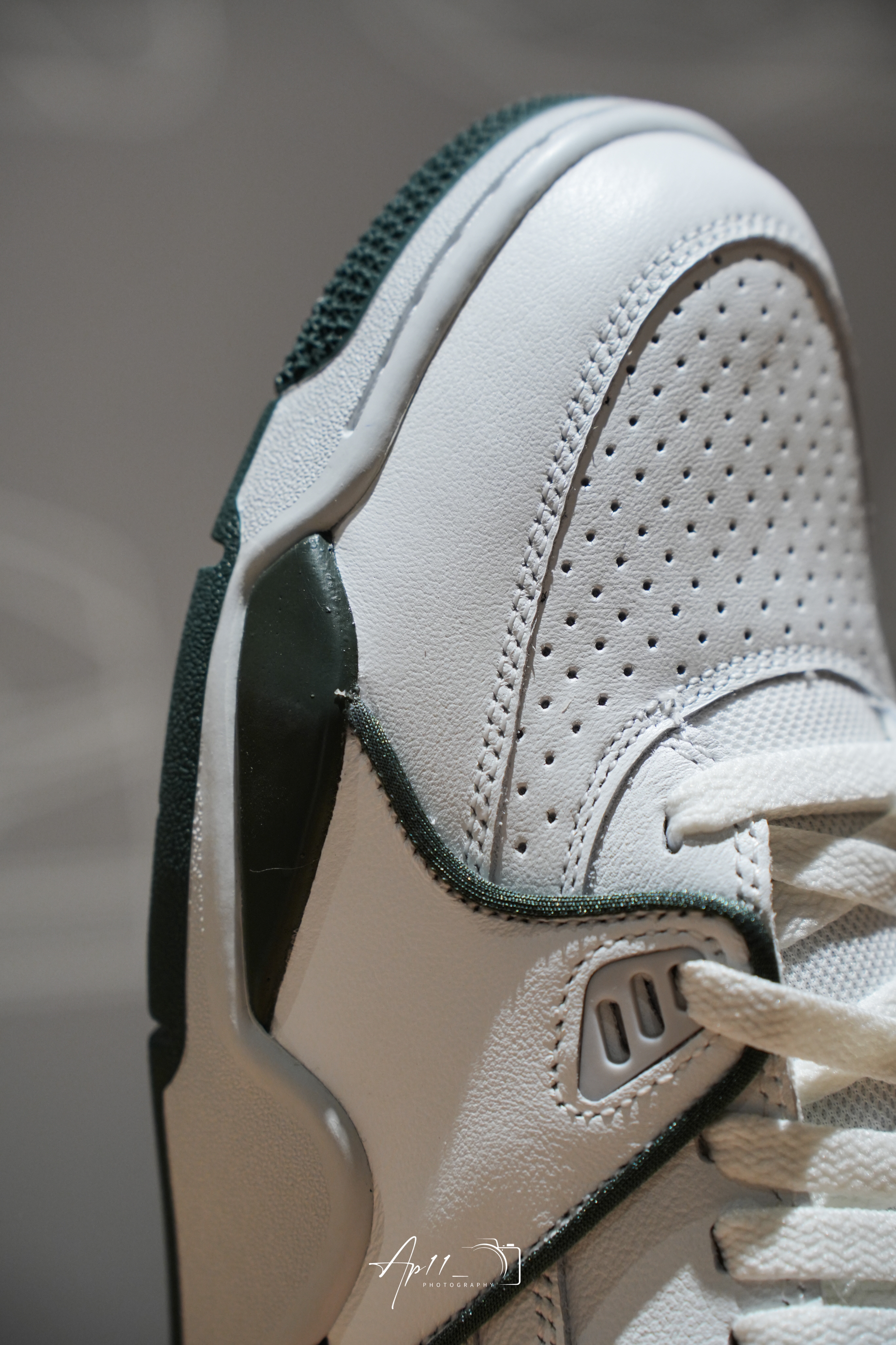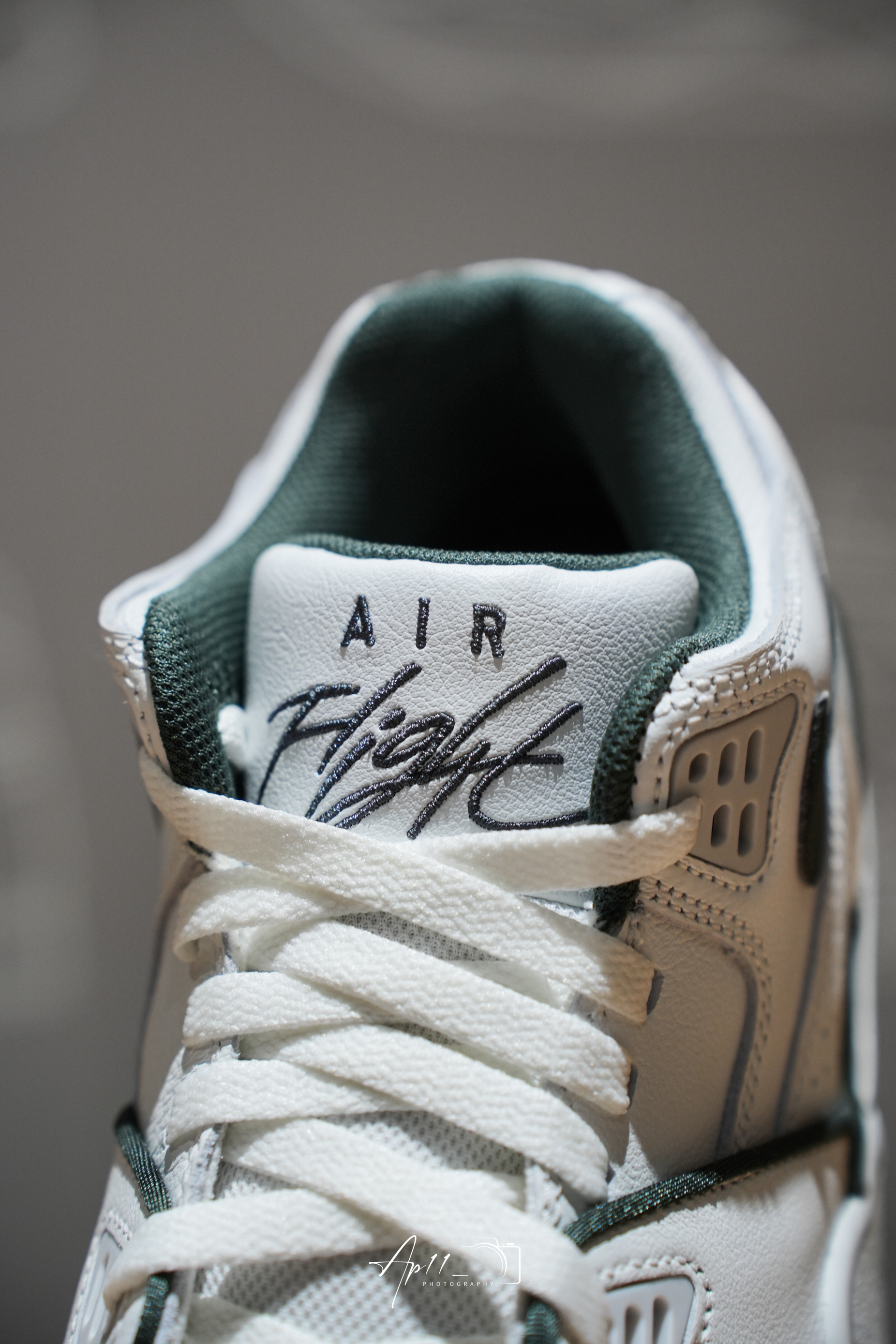 今天给大家带来这双Nike Air Flight 89 Low “ Gorge Green ” 的分享,鞋身采用优质白色皮革鞋面,外观整洁光滑。Swoosh 标志、鞋跟标签和其他细节上点缀着 Gorge Green 色调,与白色鞋面形成了鲜明而大胆的对比,为整双鞋增添了一抹独特的活力与清新感。