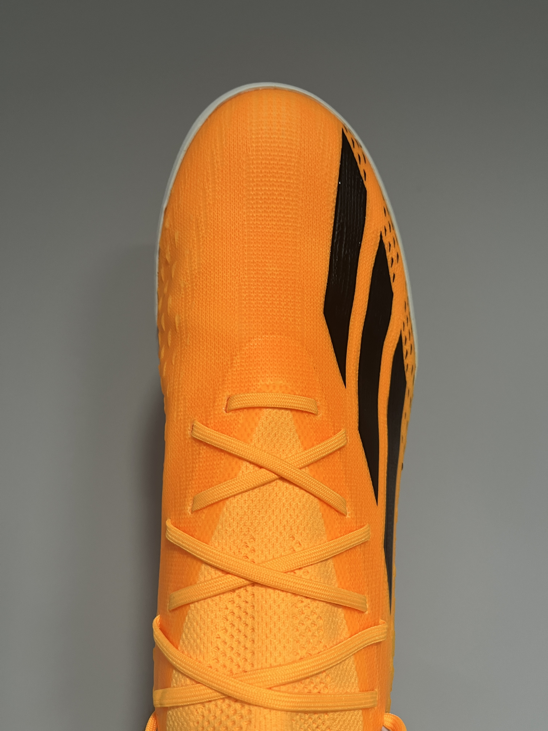 据说鞋面是移植的长钉版本,无减配!之前基本都是穿Nike鞋和其他品牌的真皮球鞋,习惯了比较柔软和稳定的触感,还有拿着新鞋就直接踢球的不用暖鞋的舒适度,对于这种硬挺清脆的鞋还真是需要适应。 但是通过半小时左右的暖鞋时间已经能明显感觉到这双鞋的发力感会是很好,脚弓推杆和外脚背做球用以往七八成的力度就可以,不过内脚背受限于场地较小,没有多少暴力发挥的机会,而且这一点点摩擦纹路用处也不大。大底抓地踢五人制...