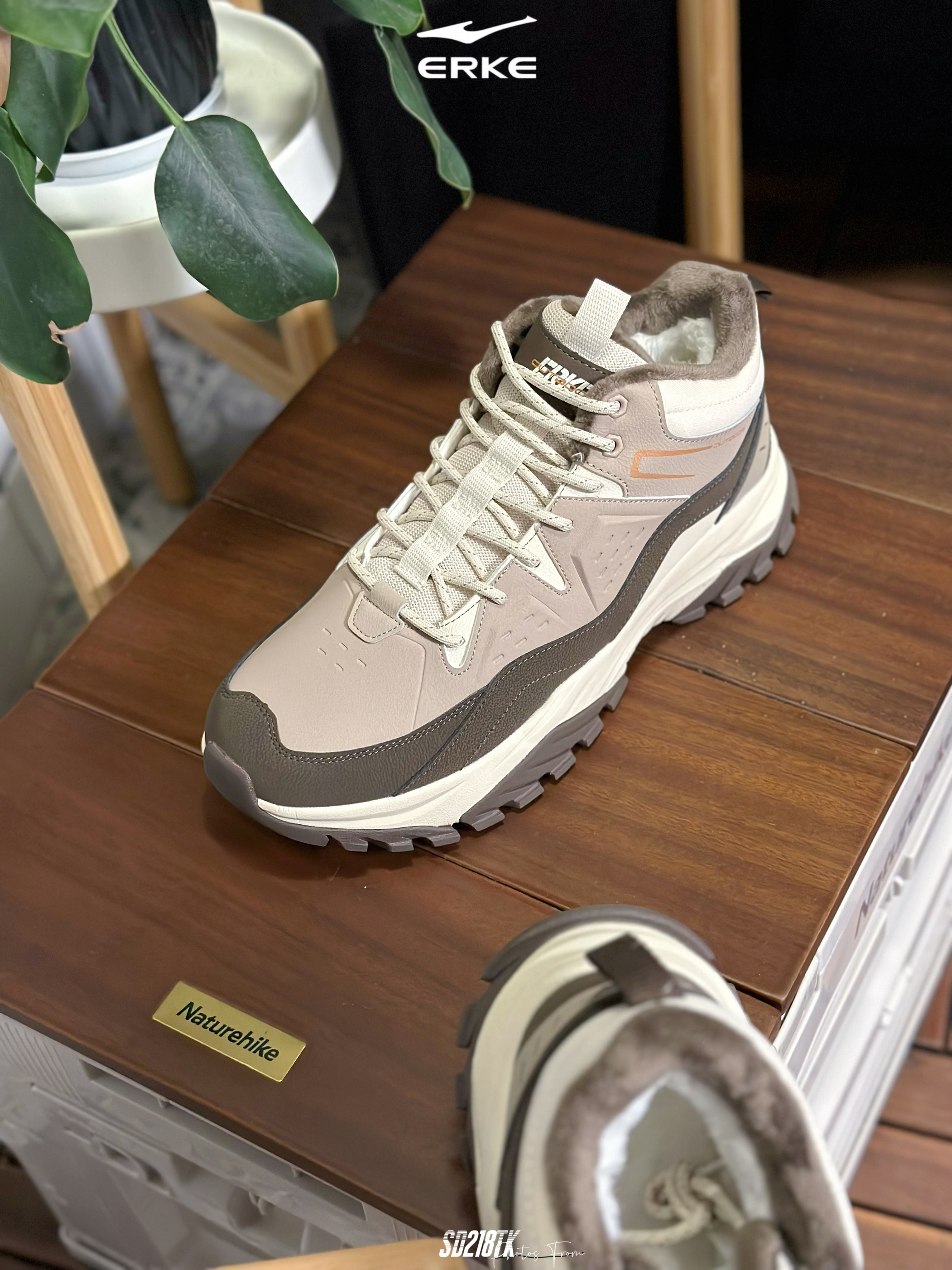 🎆球鞋设计 冬季的装备大家是否都准备好了,户外出行这次我还入手了鸿星尔克ERIK山河系列加棉户外鞋——暖阳2。他的内里同样做了加绒的设计,长绒毛内里御寒保暖,保障了我冬季的出行时的双脚。鞋面是全革的材质防水同时又耐磨耐用,同样是高帮靴形设计对脚踝的稳固做了提升,保障了冬季出行的安全性。全掌橡胶外底做了上翻的设计,能让鞋底的稳定性进一步的提升。 🎇尺码搭配 日常我穿...