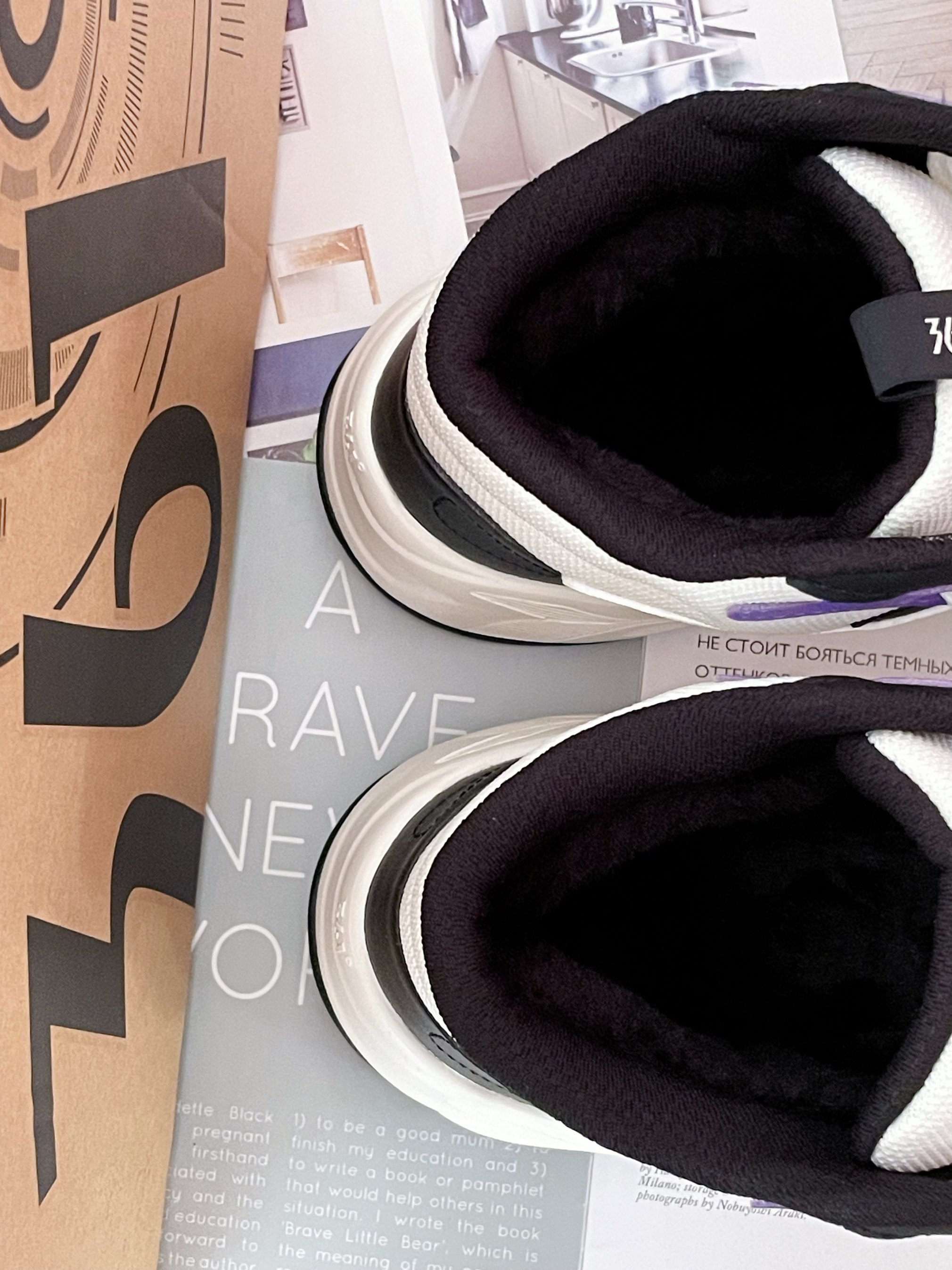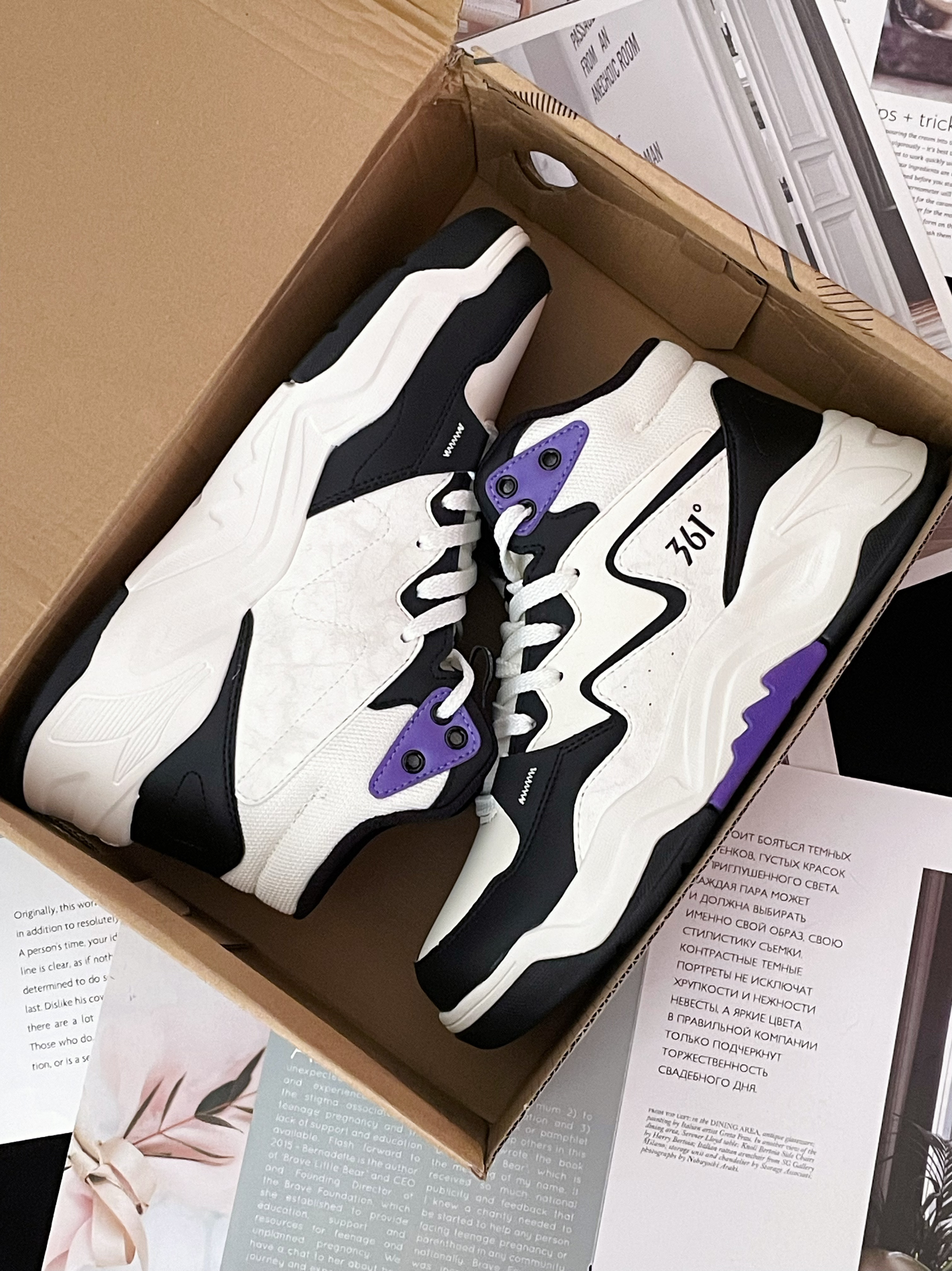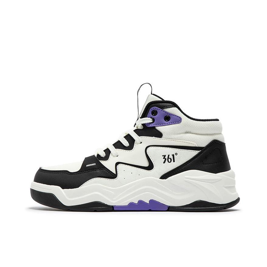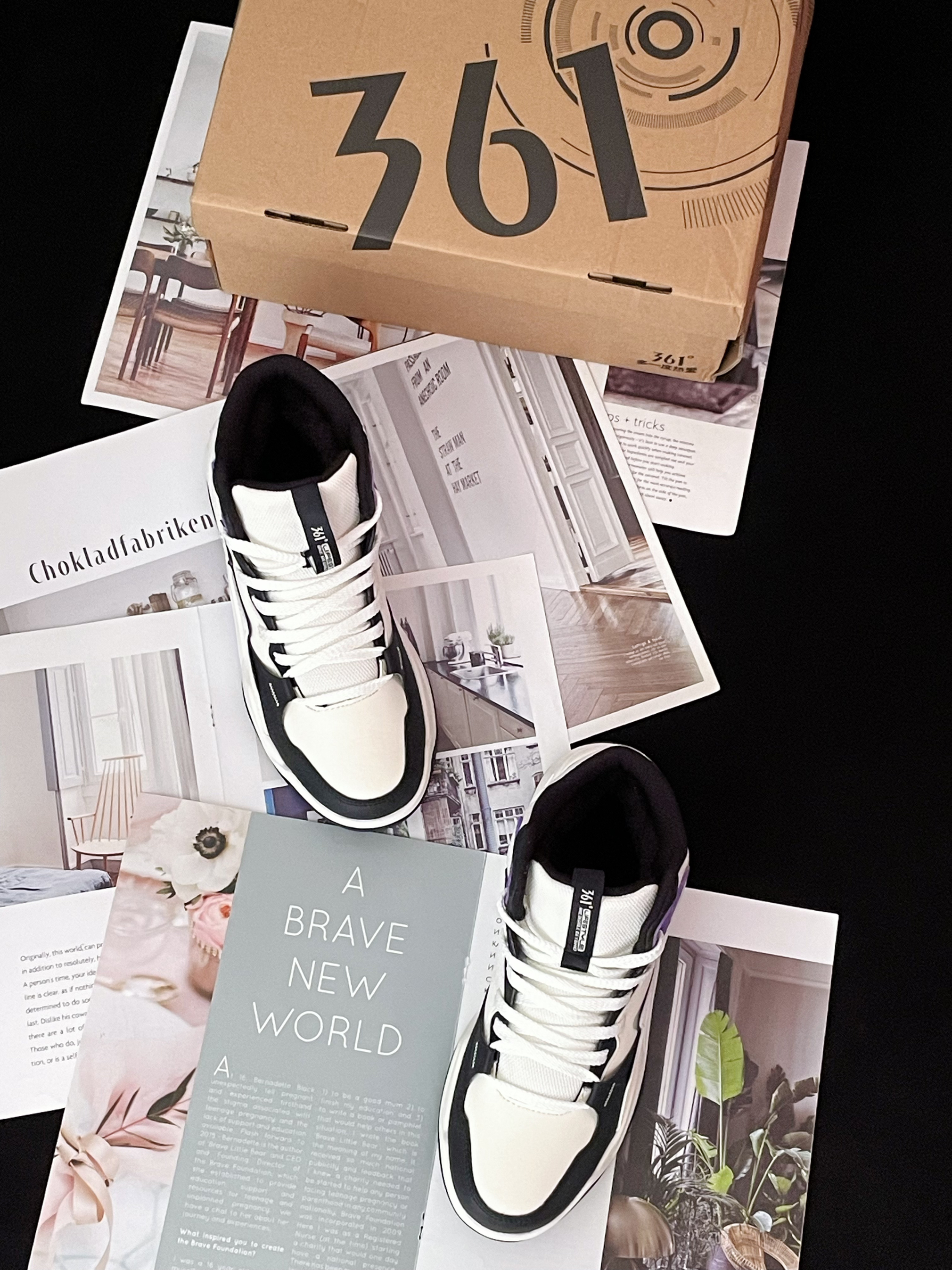 今天给大家分享这双 361° 『黑白紫』加绒高帮板鞋 鞋款由经典的黑白为主色调 细节部分加入了紫色💜点缀 配色时尚简约百搭 更显高级感 皮革拼接的鞋面搭配上高帮的鞋型 整体的包裹性和贴合度不错~ 内里的加绒设计更适合秋冬季节 厚实的泡面中底脚感软弹舒适轻便 还有很不错的增高效果呢~ ⚠️尺码方面不偏码 建议正码选择