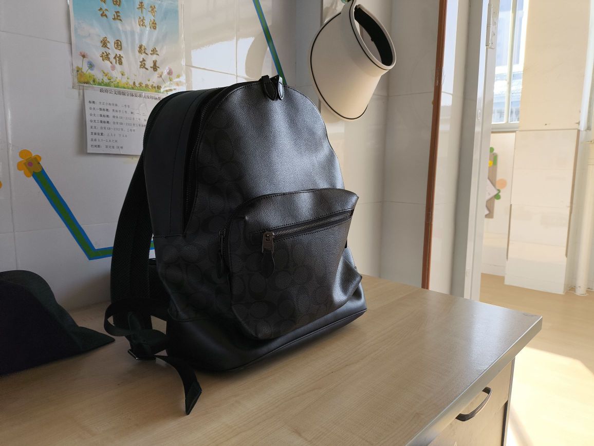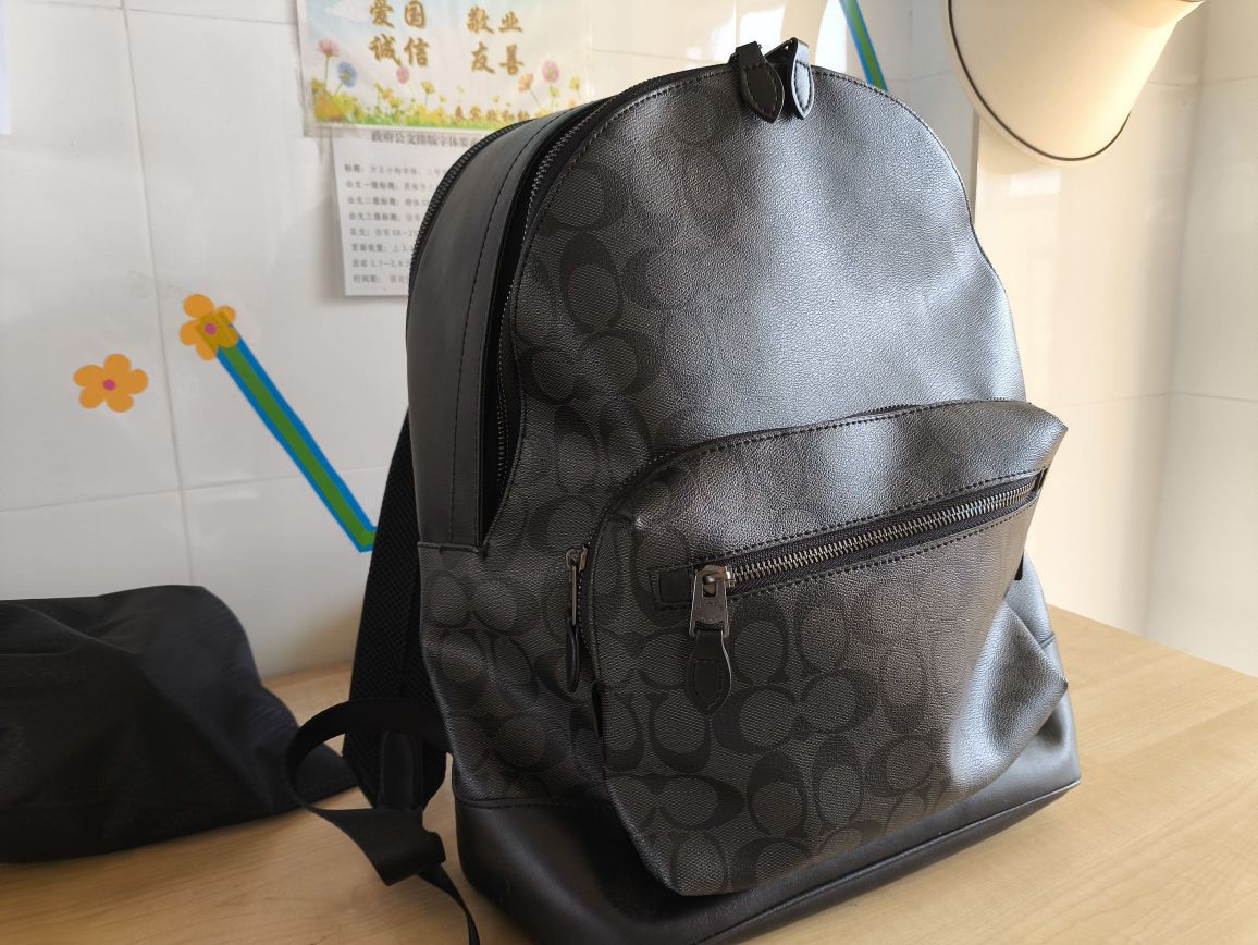COACH蔻驰 West 35 经典拉链开合大容量老花 涂层帆布拼小牛皮 背包双肩包 大号 男款 黑色,我比较喜欢的一款包包