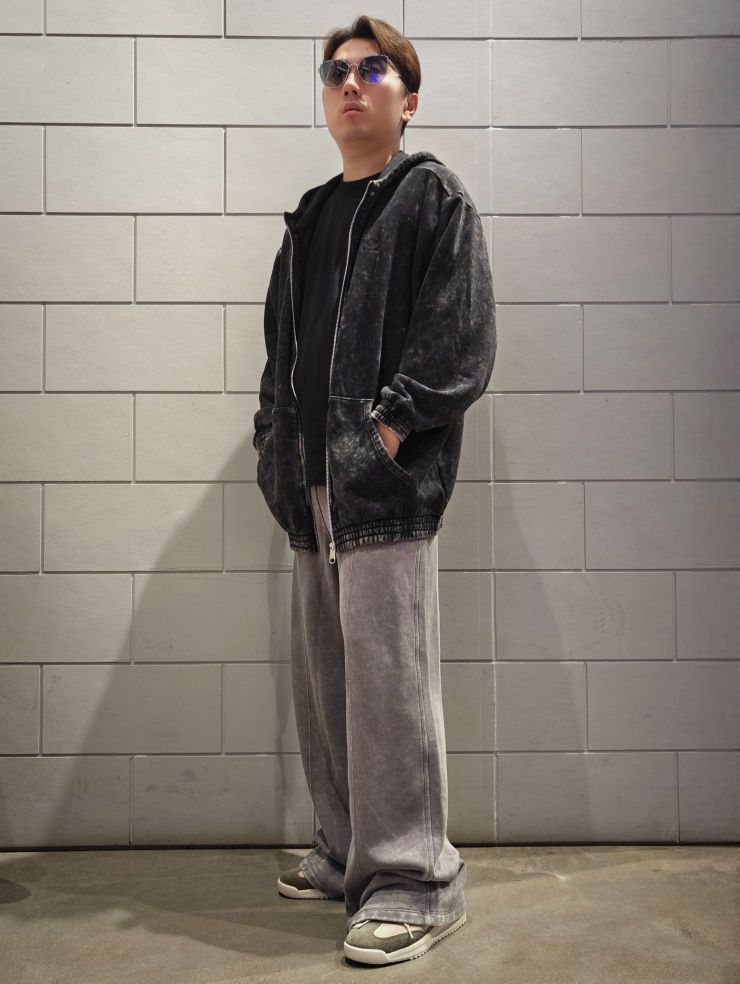今日穿什么 | 末日废土风 哇~这个水泥颜色真的很废土 纯色做旧廓形连帽设计巨有质感 宽松版型上衣掉肩、裤子超有坠感!