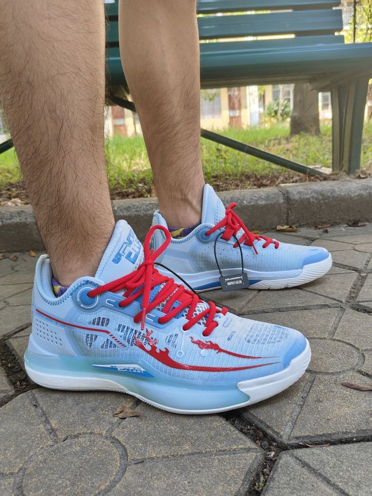 这双鞋上脚效果挺不错。它的鞋型比较贴合脚部,能让你在运动时感觉很跟脚。鞋底有一定的弹性,在起跳和落地时能提供不错的缓冲,双脚比较舒适。而且它外观比较帅气,搭配运动裤或者篮球服等,看起来很有运动感。