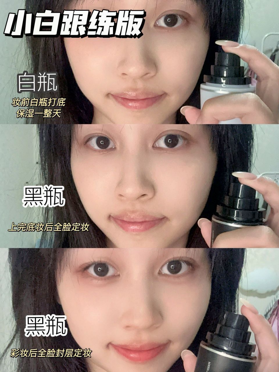 快来学女明星的持久妆面教程! 现在好多姐妹都跟着教程化妆,每一步都没落下,可妆面还是卡粉斑驳。出门的时候妆容还好好的,结果才过两个小时,妆就掉得差不多了。有时候这真不是手法和步骤的问题,而是大家忽略了关键的一步——【定妆】!!! 以前我就喜欢用散粉随便糊一糊就当定妆了。不过最近我刷到了海陆的妆造教程,才发现定妆喷雾才是定妆的秘密武器呢!她给我们示范用了✅柏瑞美“白 + 黑”定妆喷雾,我就买...