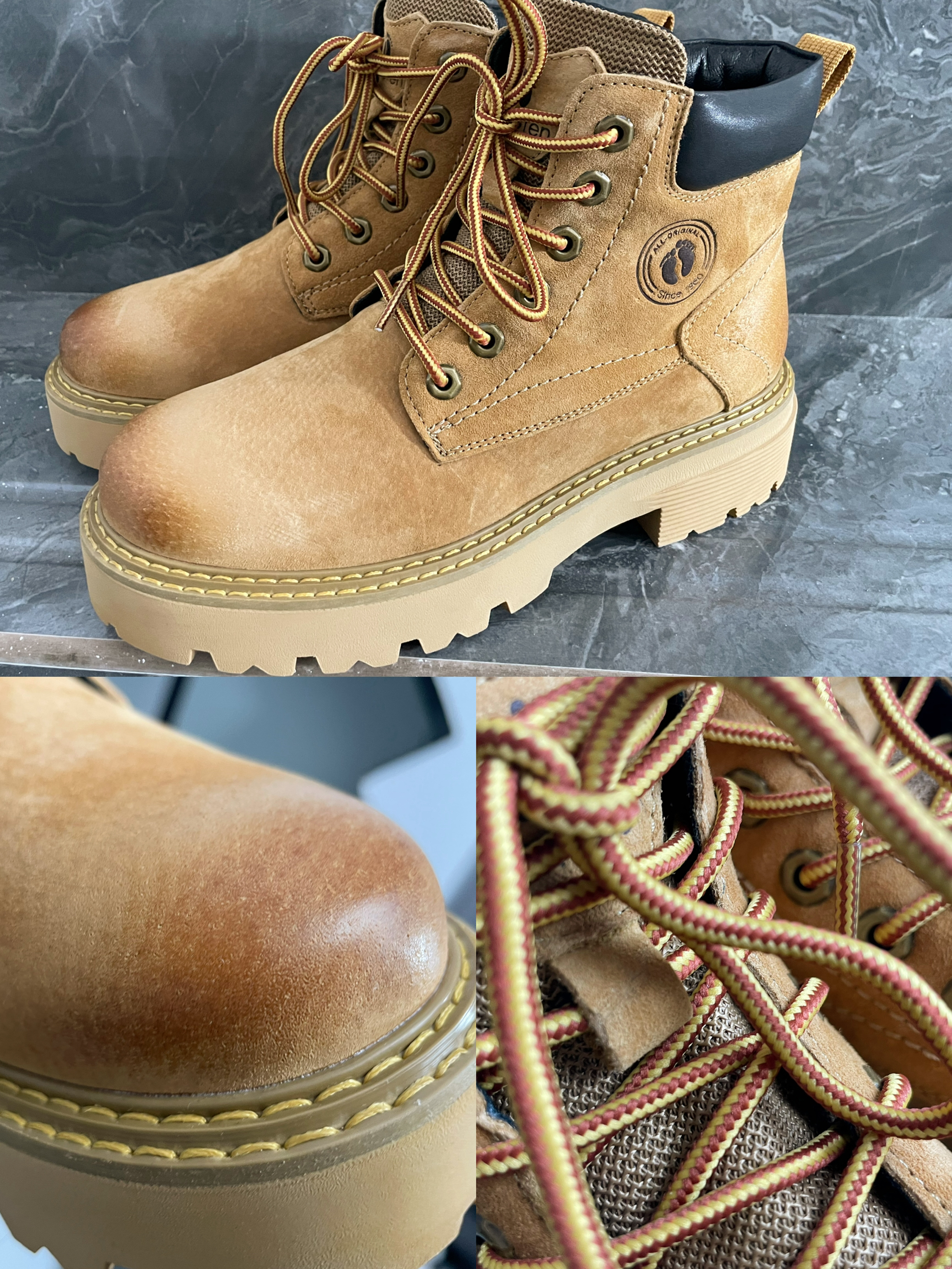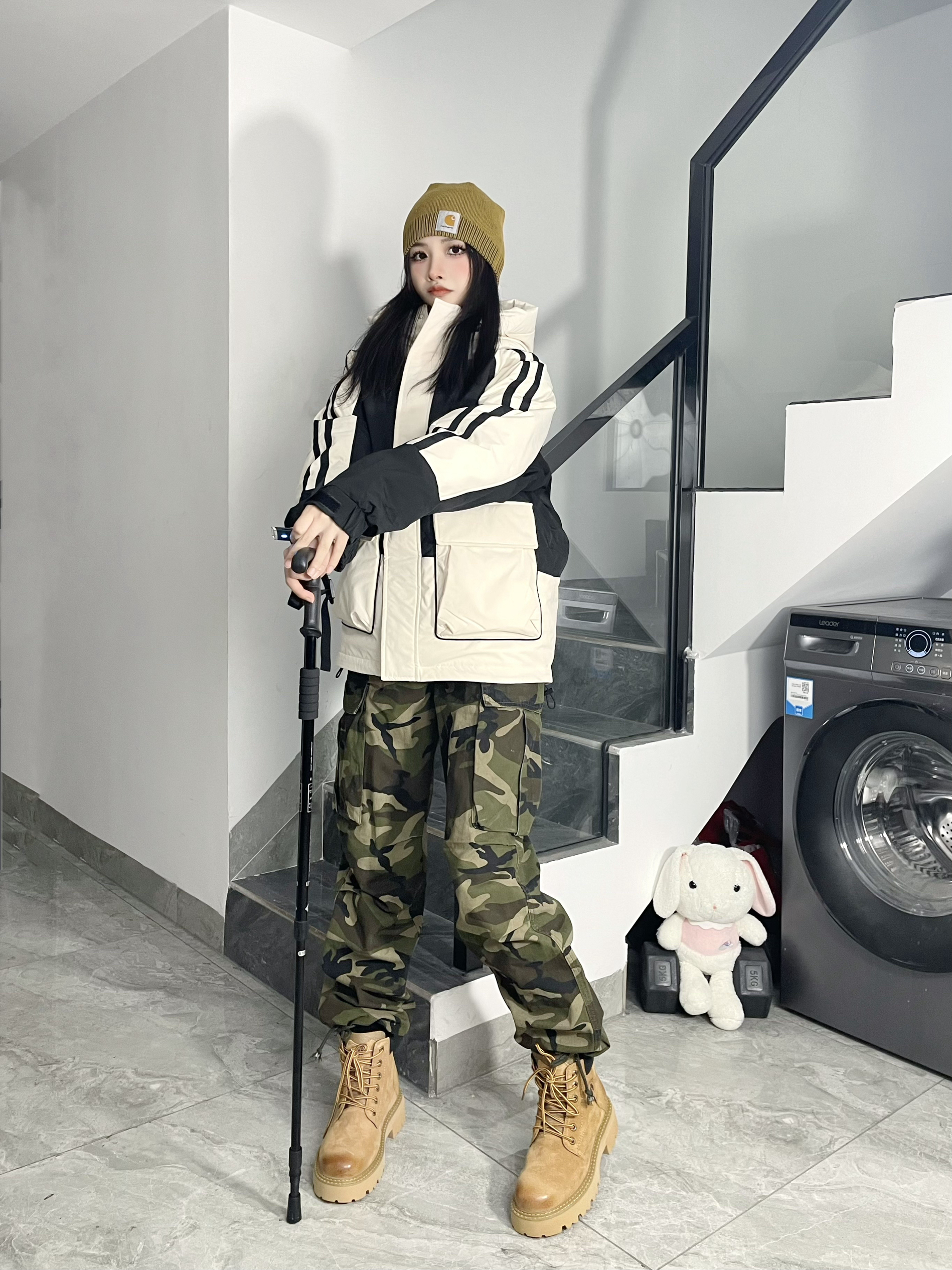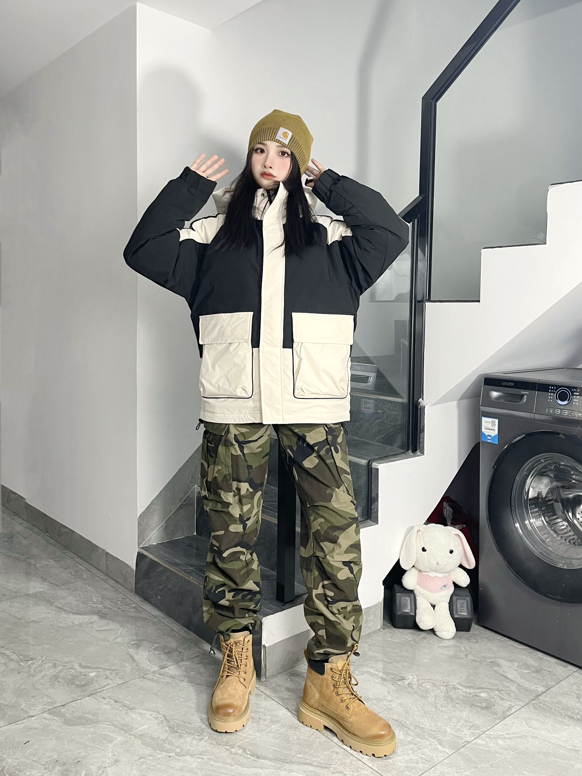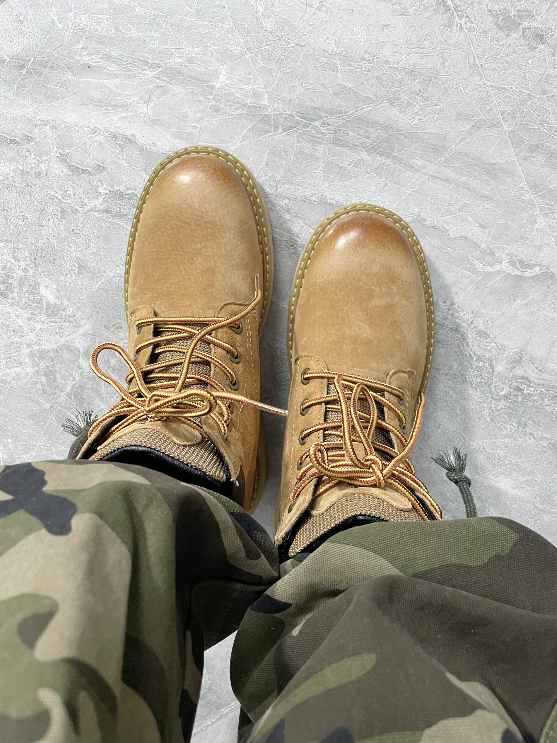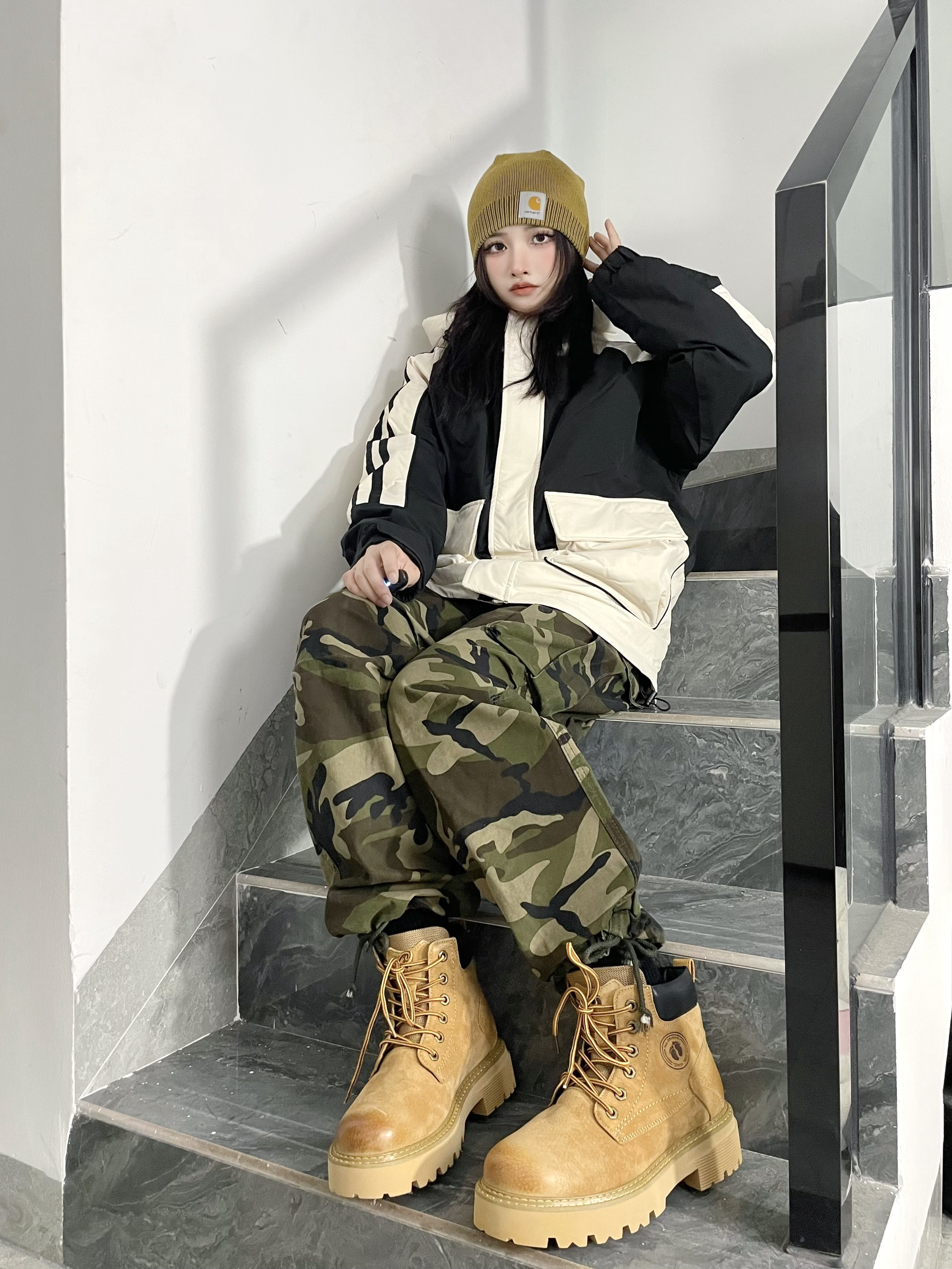 想把山系穿搭焊身上!⛰️ 冲锋羽绒服➕迷彩经典配色 很耐看👀酷飒十足好有气场~ 这双大黄靴👢点睛搭配提亮了整套穿搭~ 这个颜色的马丁靴很有复古感 鞋头的擦色和走线细节拿捏住👀 再来个同色系冷帽呼应⚜️山系味更浓 带上我滴登山丈徒步去咯!