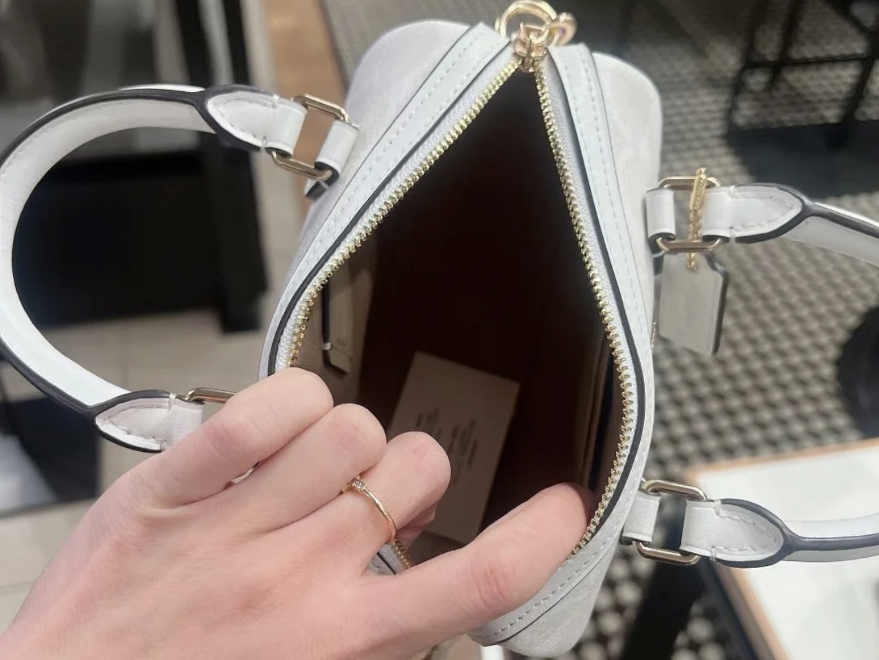 本篇笔记关联了Coach Rowan 18 迷你 经典标志顶部拉链开合波士顿人造革单肩斜挎手提包 白色等商品,为用户提供真实的使用体验和购买参考。