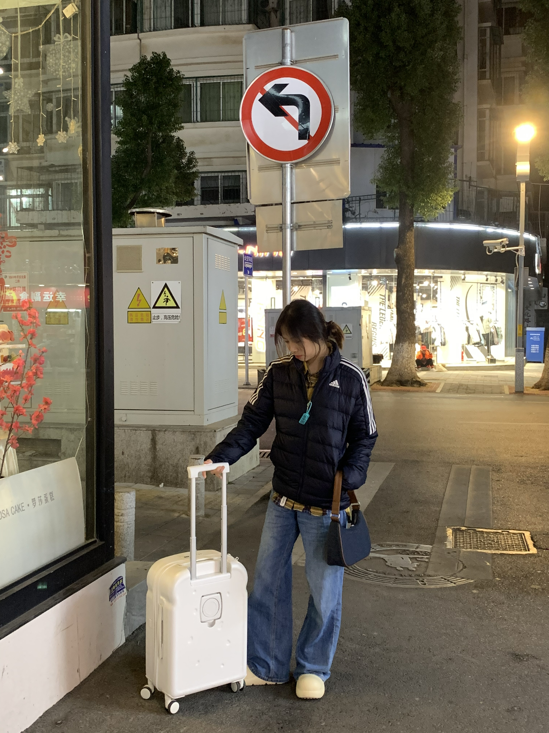 藏青色和黄色搭配好好看 而且两个都是特别显白的颜色 轻薄羽绒服很好穿