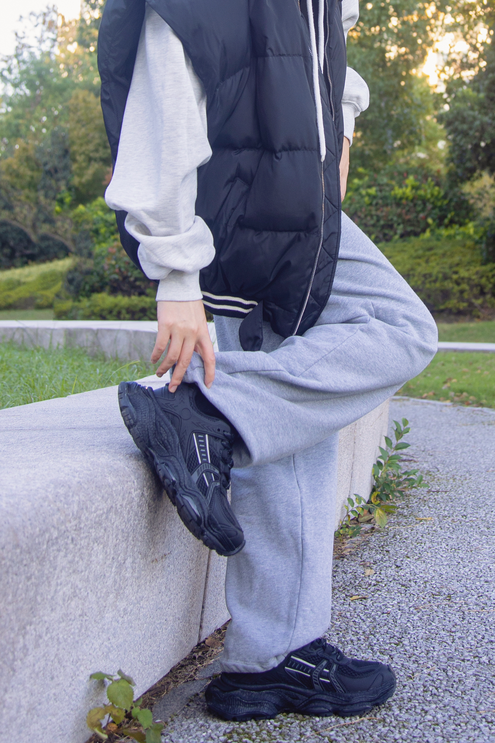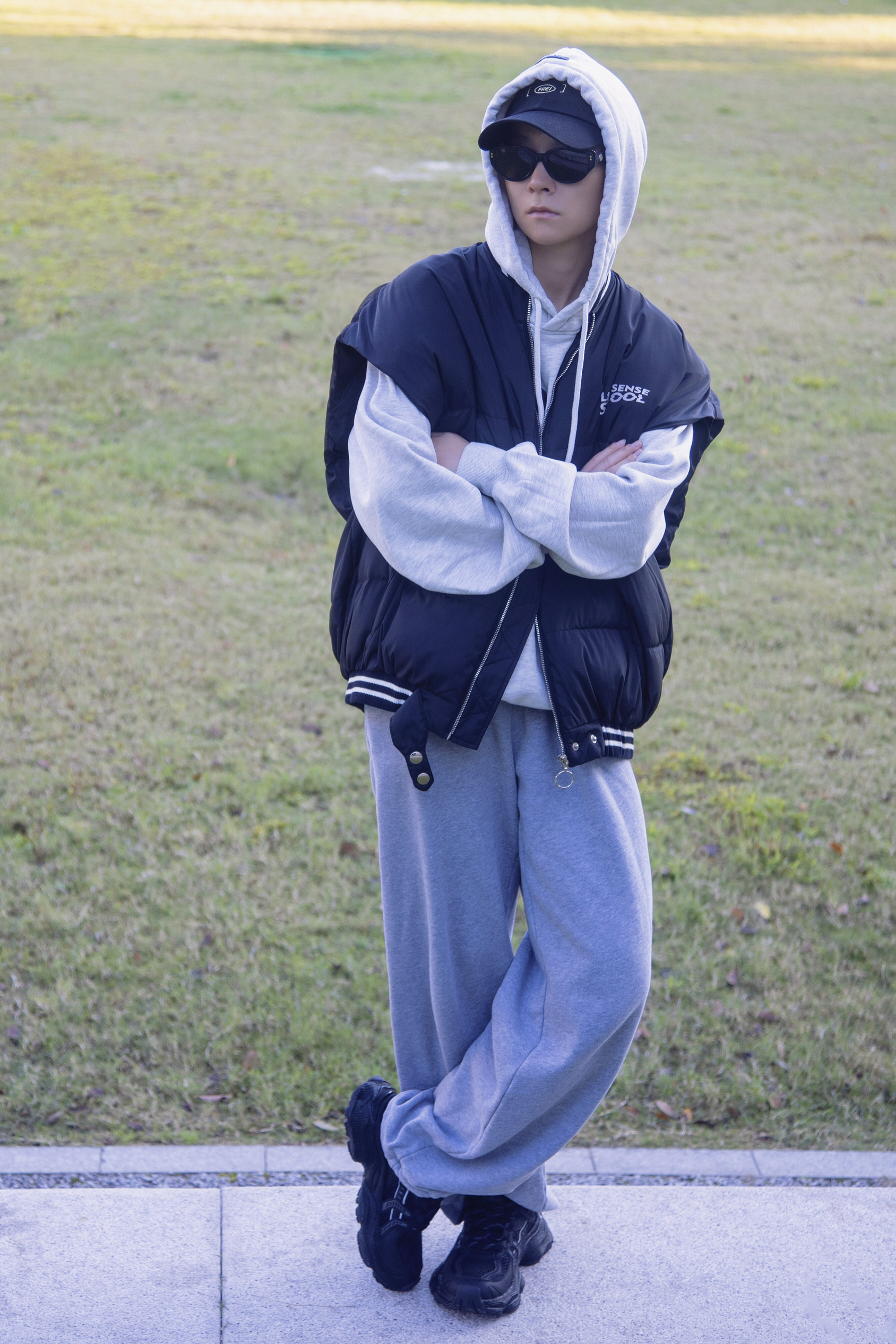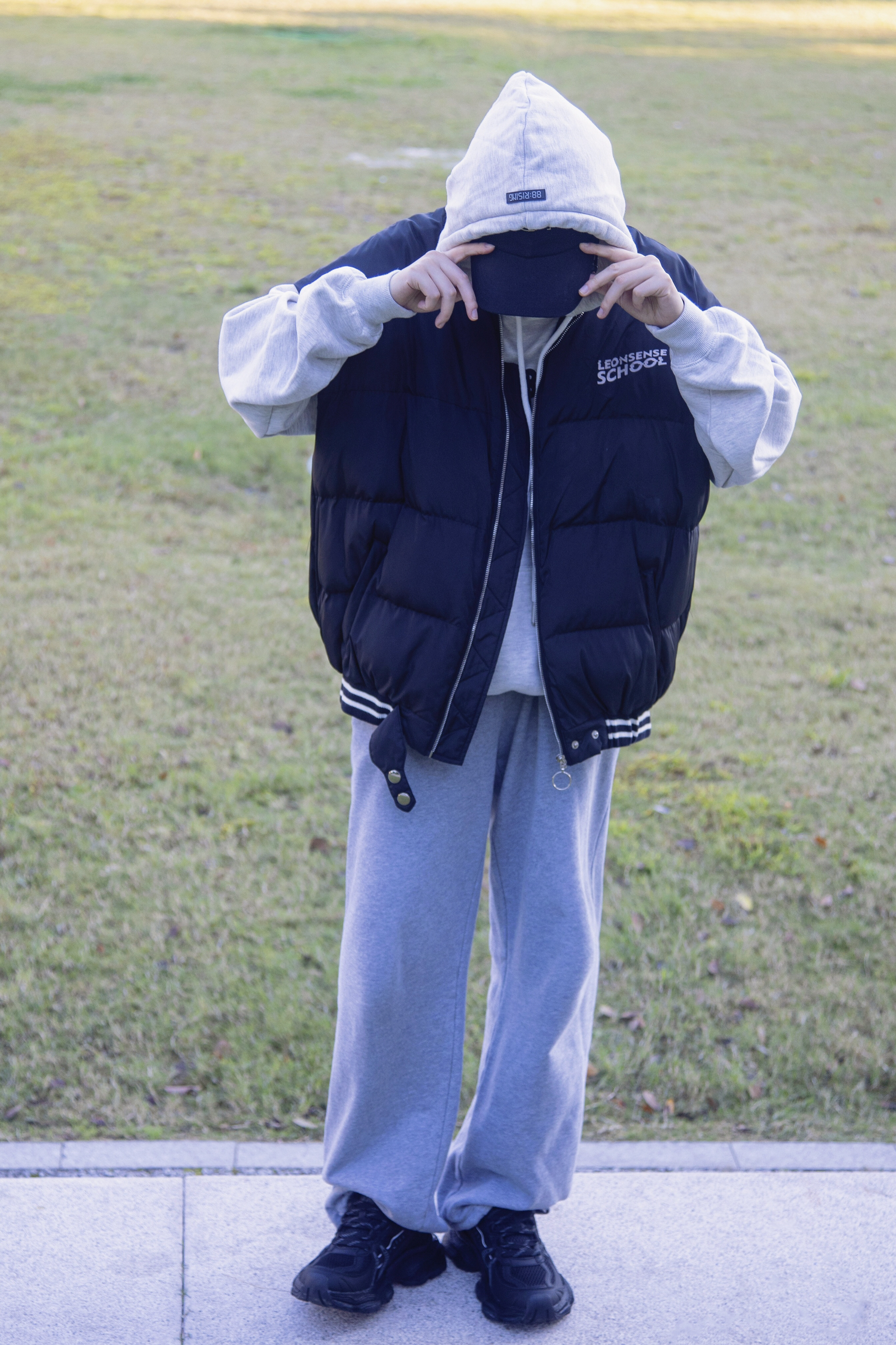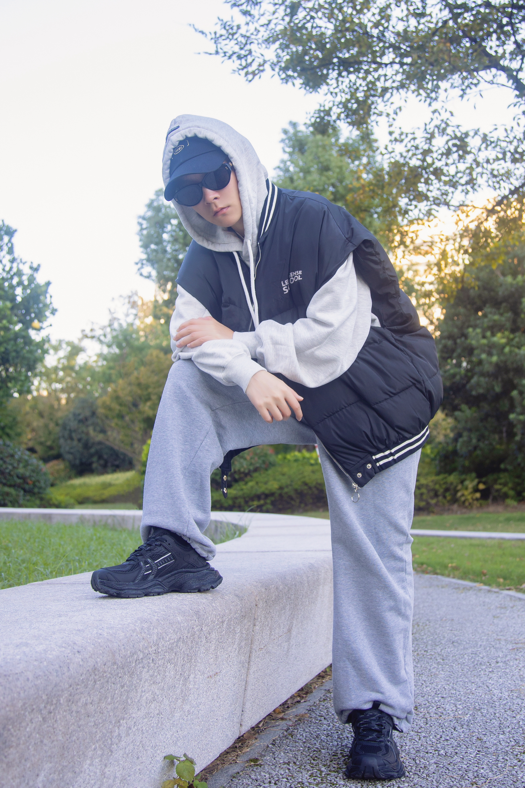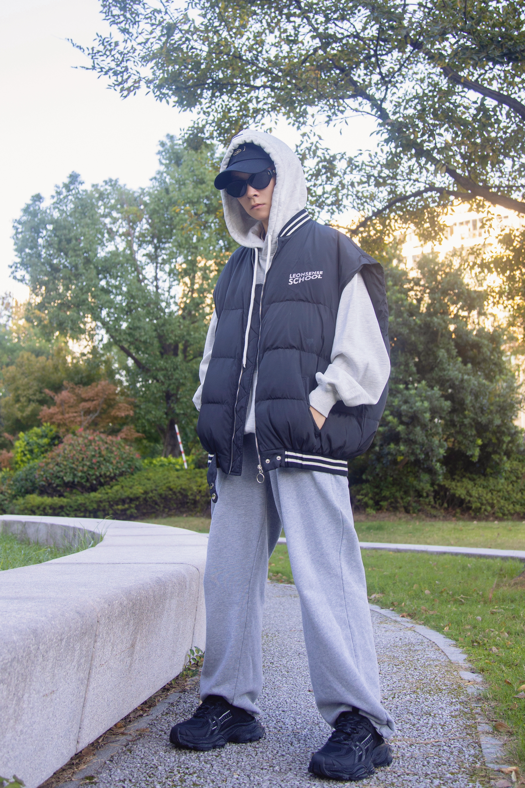 最近降温了 不知道穿啥 羽绒马甲穿起来 不知道怎么叠穿 羽绒马甲穿起来 穿搭指南: 上身一件花灰色连帽卫衣 外搭一件黑色羽绒马甲 廓形设计和谁搭都好看 基础色叠穿不出错又有层次感 配一条灰色休闲卫裤 上脚一双tcellars老爹鞋 黑色跟上衣很好地呼应了 厚鞋底秋冬穿很有安全感呢 一身黑灰配 随性高级感拿捏