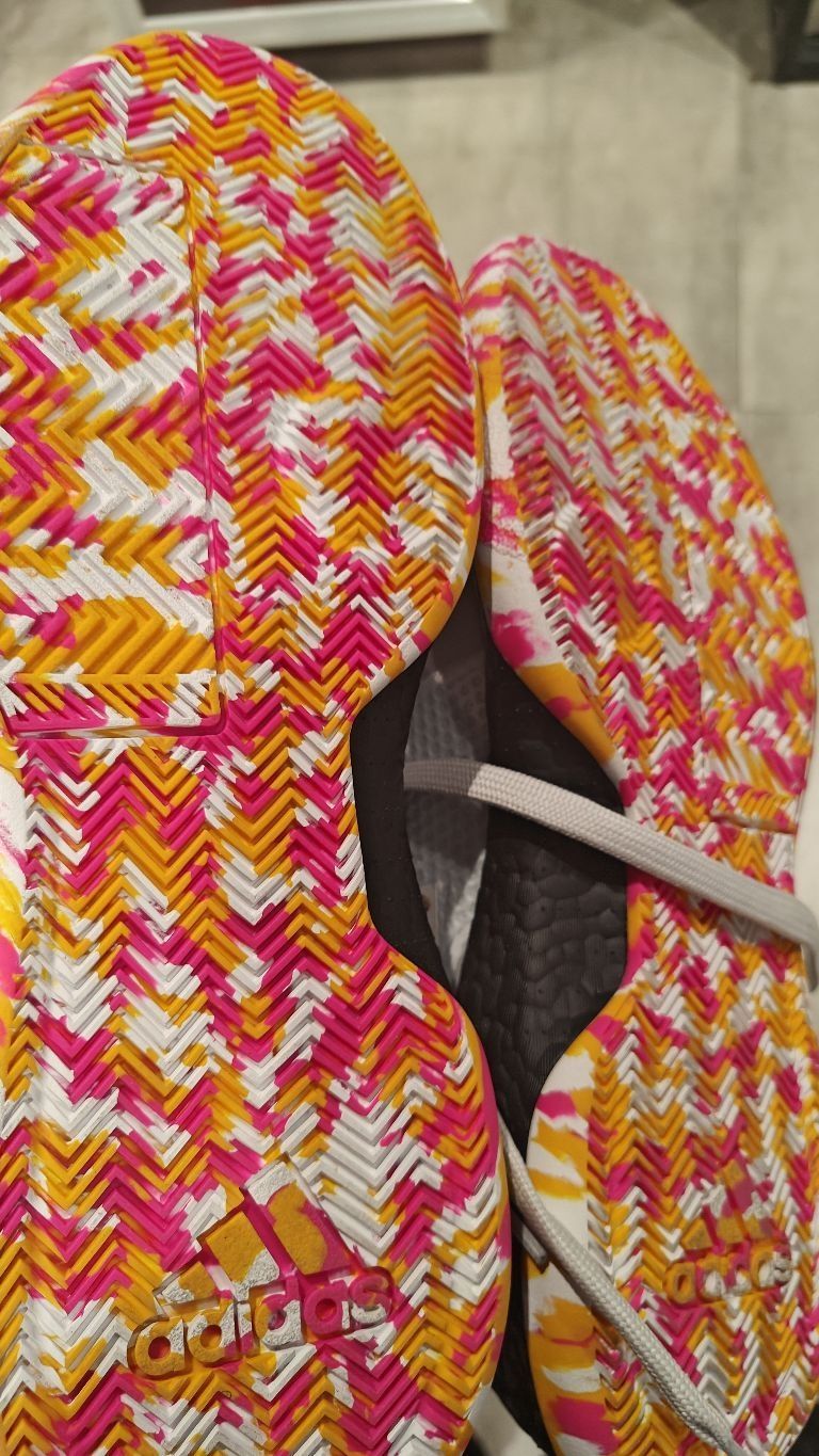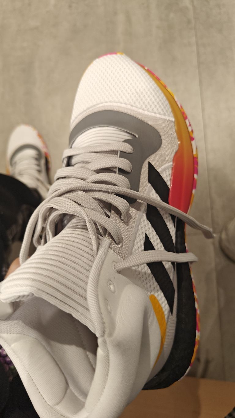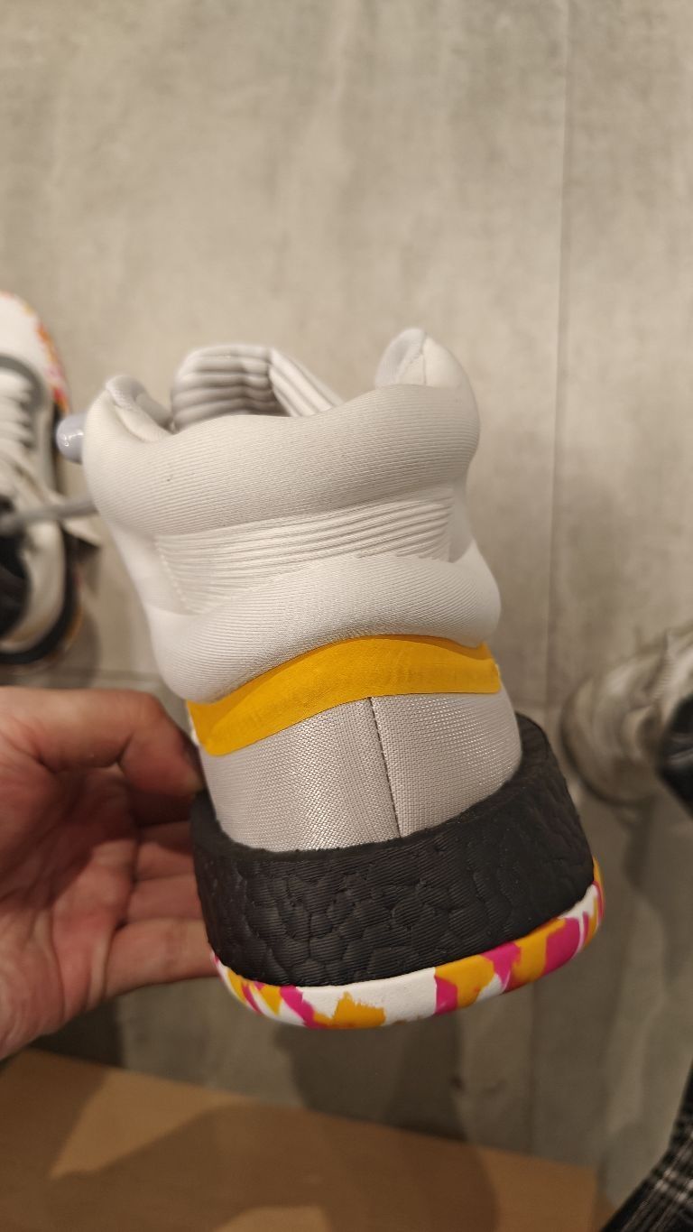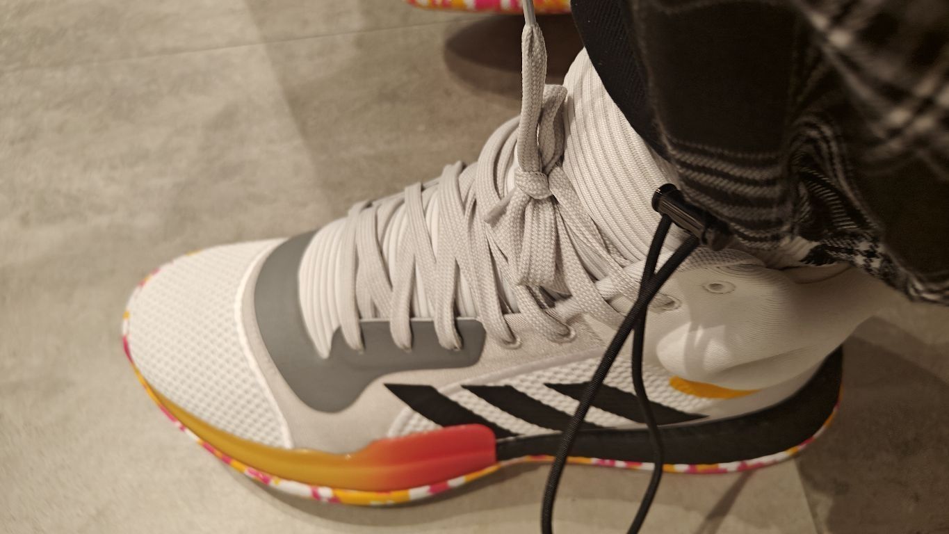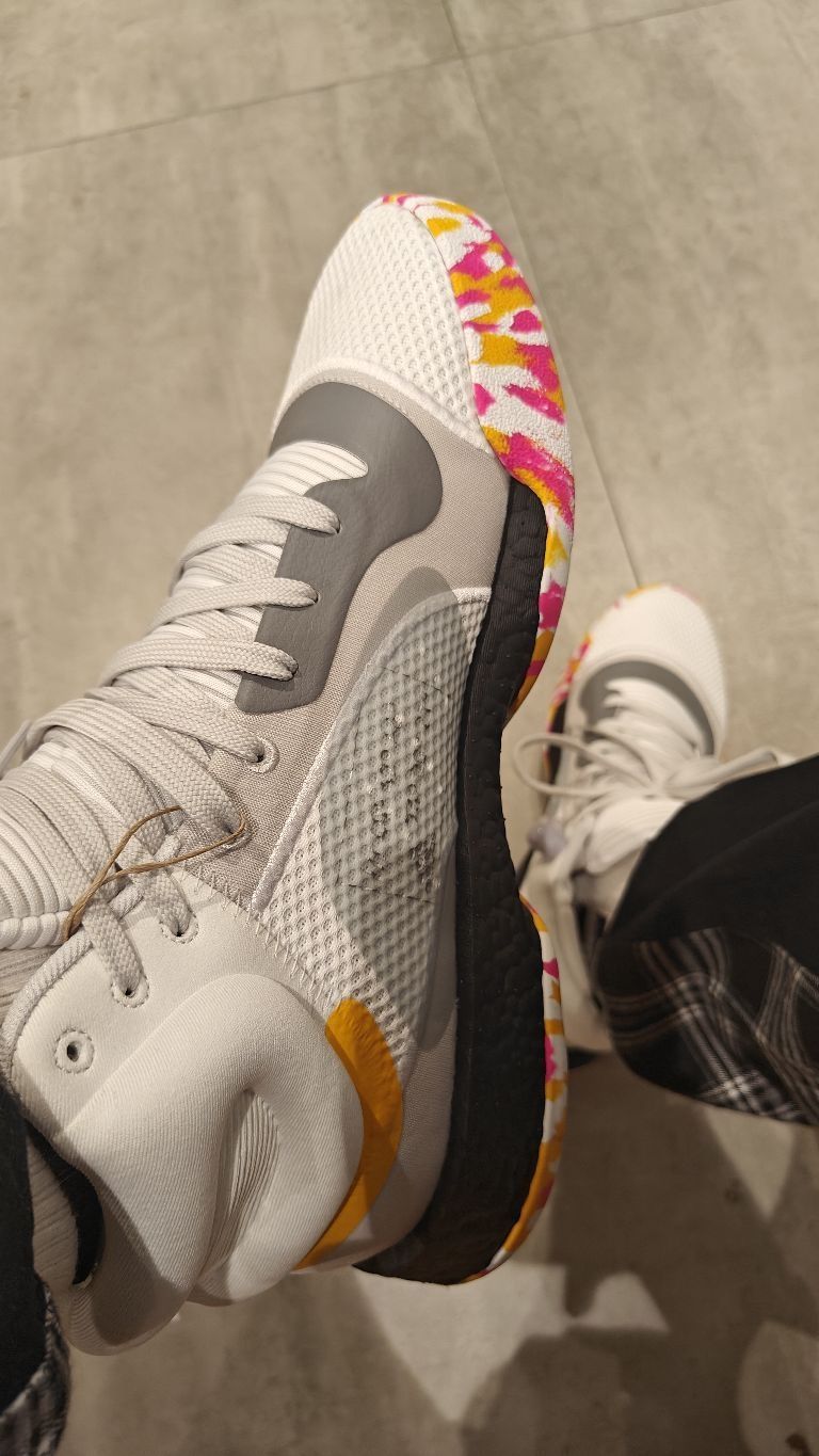 今天入手一双adidas Marquee Boost 黑白炫彩款,一代神鞋已经降为白菜价了,来感受感受这款诸多球星在实战比赛中非常钟爱的神鞋。 鞋面采用的primeknit轻量织面材质,鞋子的贴合感不错,前脸和侧帮都有大面积的网眼,透气性很好,设计感十足。前掌外侧有一块不大的tpu加固 防止侧翻扭脚,鞋底中帮有大块阿迪达斯经典爆米花材质的减震,弹性很强,回馈力十足。鞋底我这款是一个橡胶底,非常亮眼...