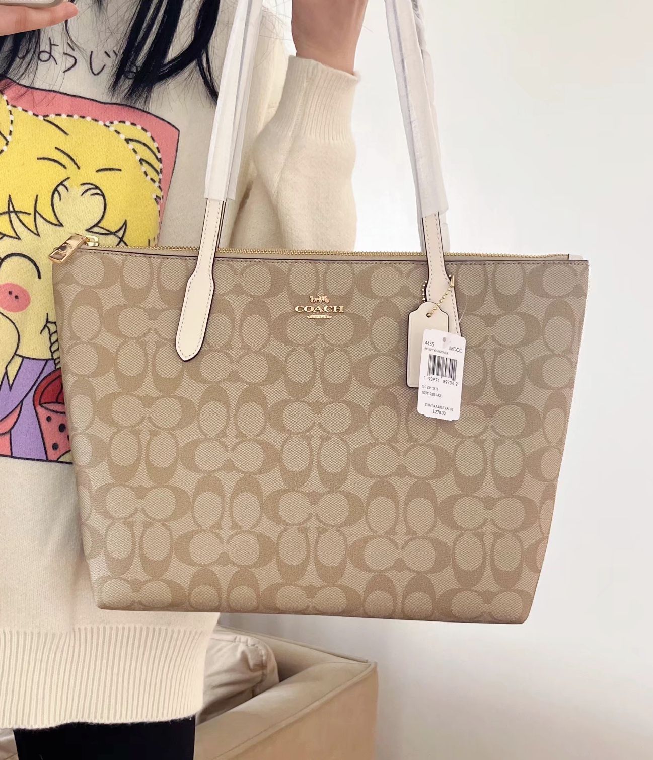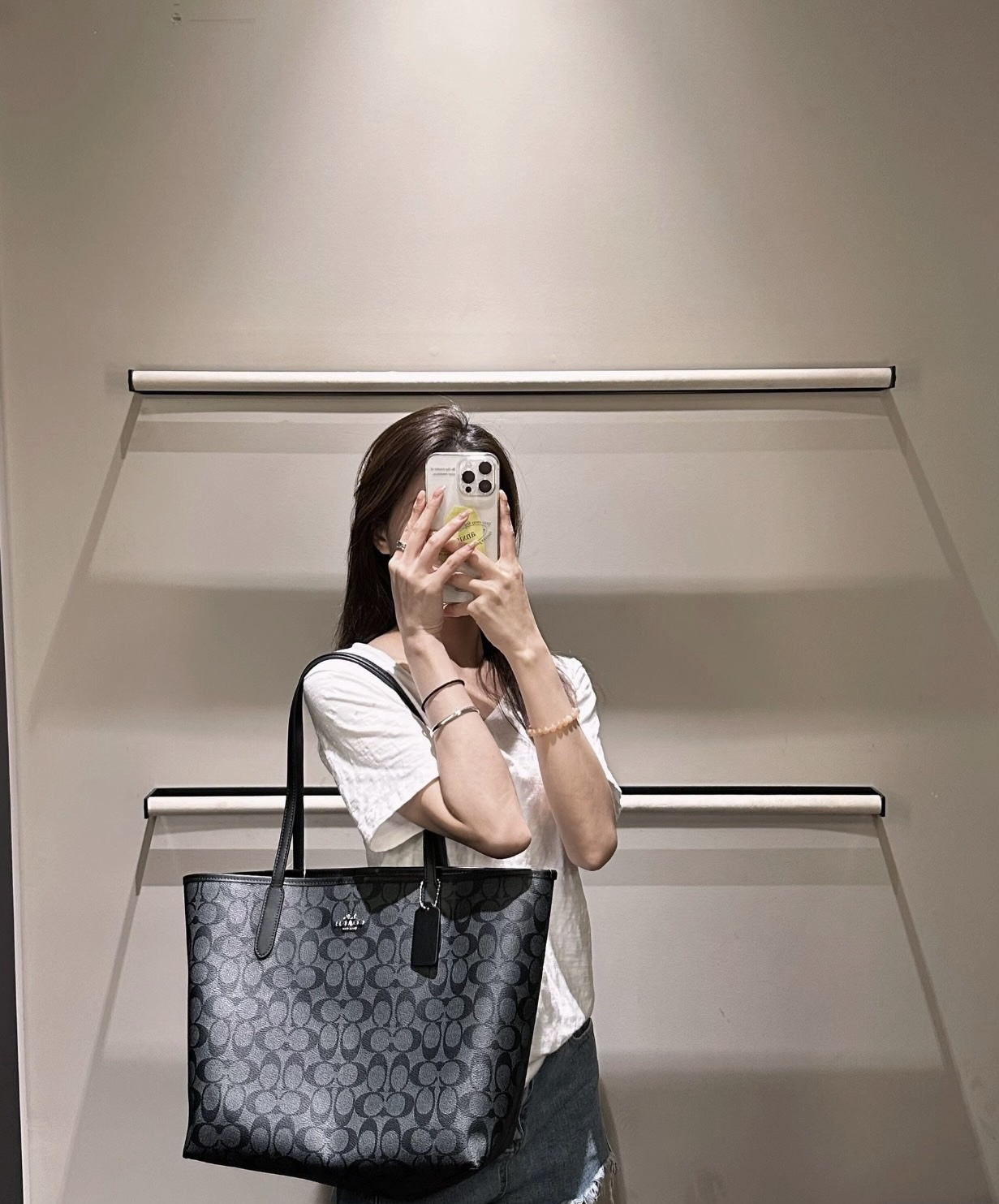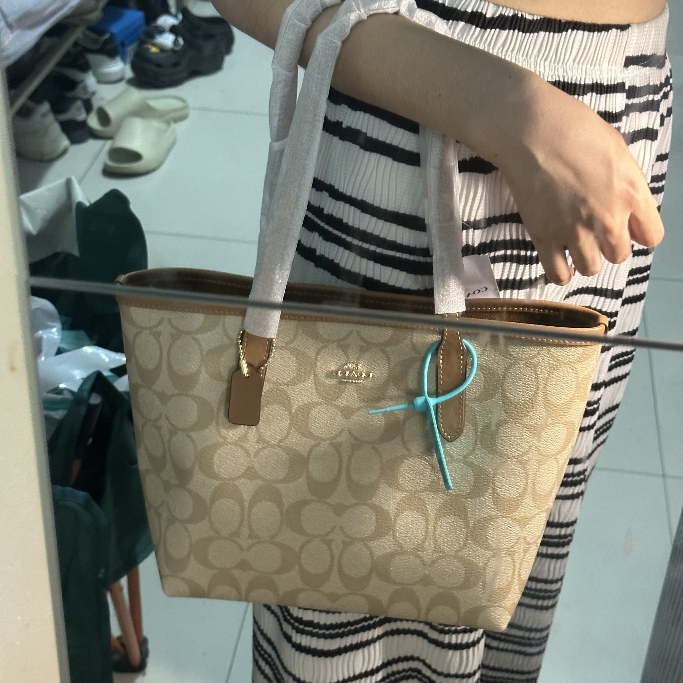 本篇笔记关联了Coach City 23 小号 经典老花按扣大容量帆布拼皮托特包Tote包购物袋手提包单肩包 冰川白 等商品,为用户提供真实的使用体验和购买参考。