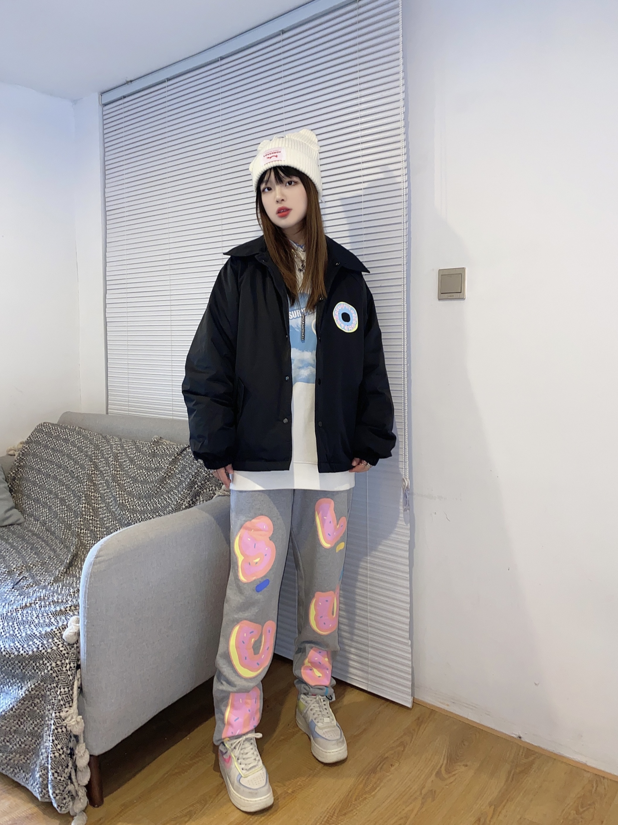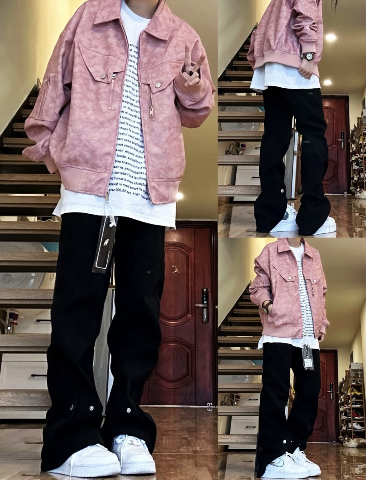 现在天气冷了 出门通勤穿件外套刚刚好 BJHG XL 酷酷的开学季穿搭 霉粉色的外套里面搭配一个T恤 整体是一个麂皮绒的设计 外面绵绵的手感,穿起来舒服 平时出街也是一个潮酷的搭配 下面搭一件迷彩牛仔裤👖 板鞋也是单品推荐 美式的开学潮感这不就来了 酷酷的开学礼穿搭