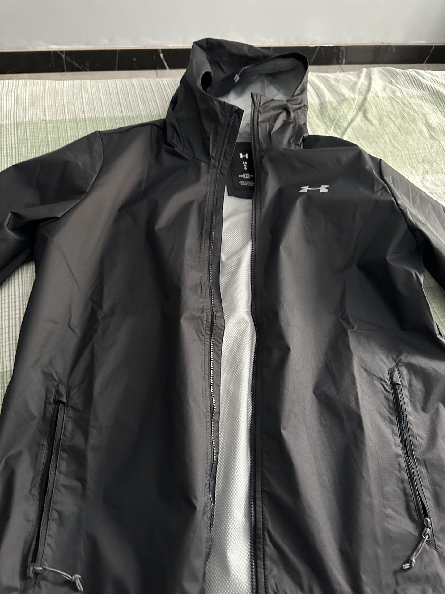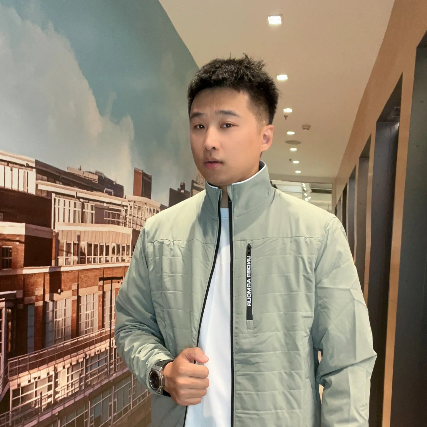 安德玛属于那种很有版型的衣服‼️衣服上身显身材,帅气有型,内里有绒,秋冬穿很舒服,面料应该是轻微防水的💥下雨抖抖水珠就掉了,感觉这个材质也比较挡风,看起来版型和颜色都很出彩👣上身版型很好,效果也不错,立领的高度也恰到好处,作为一件功能性的外套 我很满意,户外走起。 图片来源于@爱在西元前00999