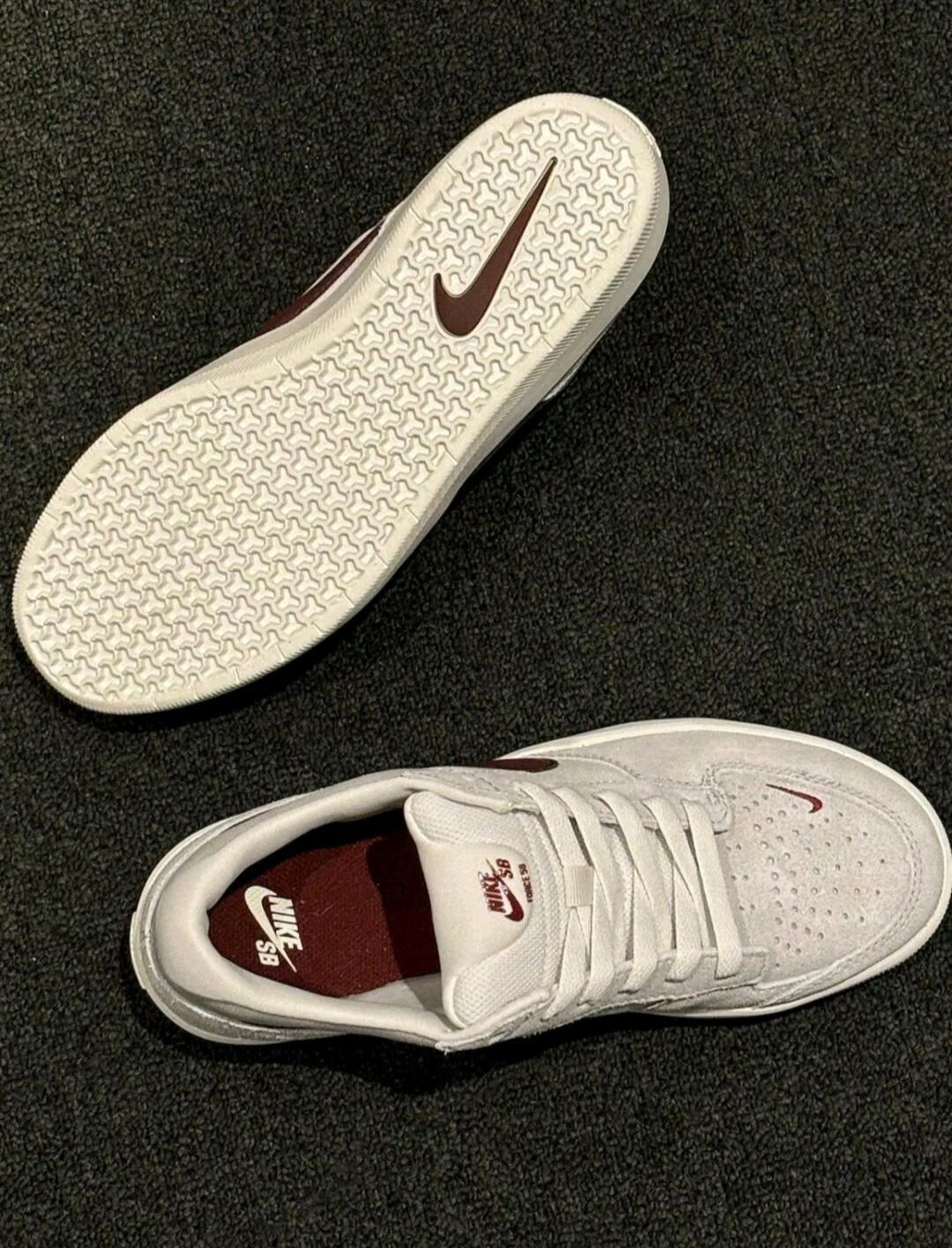 Nike SB force这款大logo鞋底 鞋身采用翻毛皮材质 再加上整体的鞋型是复古宽松 红色的logo 白色的鞋身 让整体穿搭变得简单 Nike SB force无论是用于滑板还是日常 都得心应手 鞋码方面刚刚好 按自己码子买就行