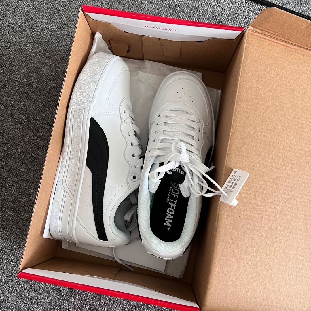 颜色:以白色为主色调,黑色作为点缀色,经典的白黑配色简洁又时尚 非常百搭 材质:采用皮革材质,质感较好, 较容易打理,日常穿着中如果弄脏了,用湿布擦拭干净 鞋垫:鞋垫采用彪马的 soft foam 鞋垫,长时间穿也不会感到累脚😍