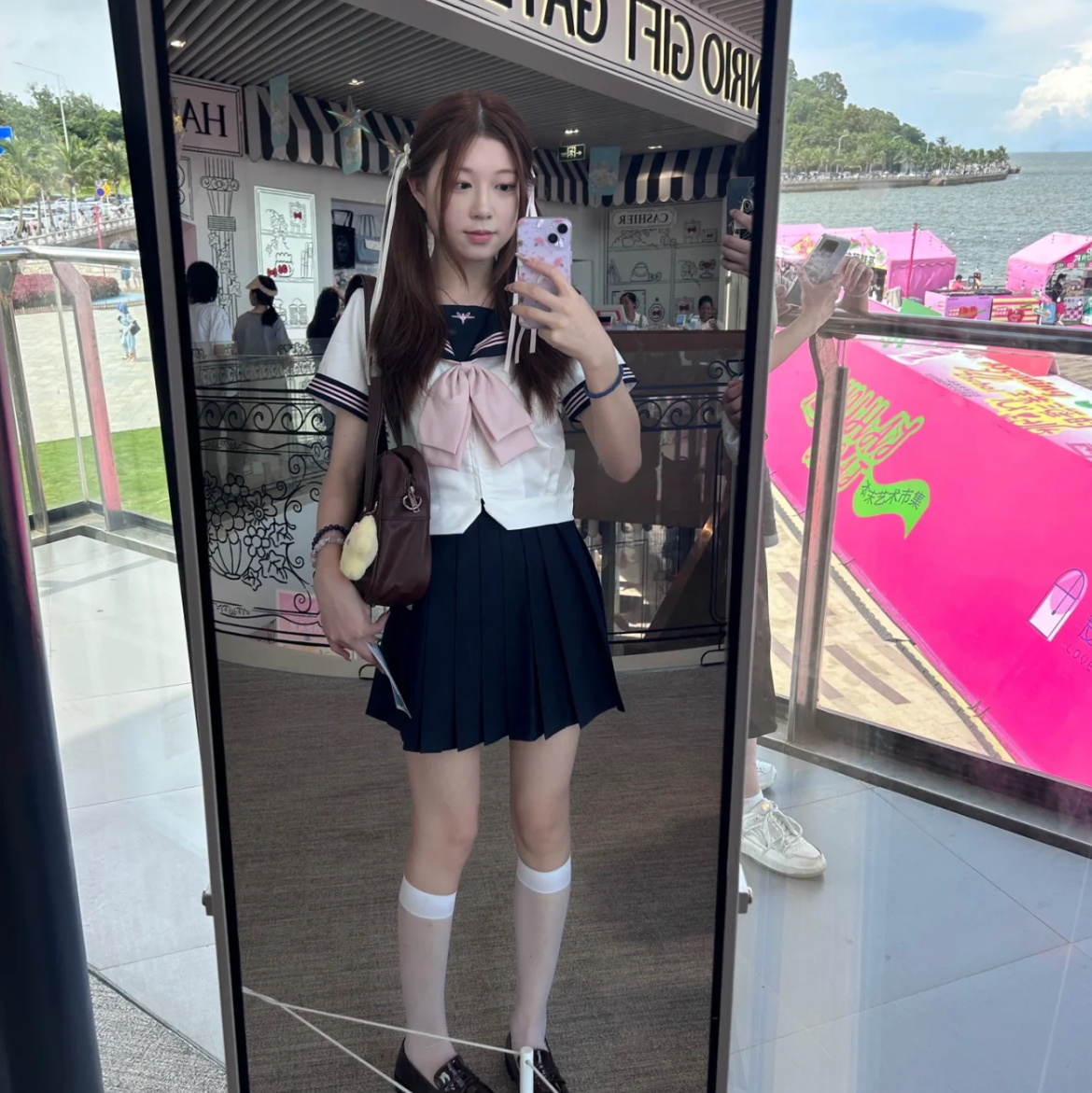 想要在人群中脱颖而出?这款水手服绝对能满足你!不仅颜色鲜艳,还能衬托出你的肤色无比白皙,配上粉色蝴蝶结,瞬间学院风满满,少女感爆棚!而且,这款水手服的基础款式设计,无论搭配哪种百褶裙,都能打造出不同的风格,百搭又时尚。 (图片来自网络,侵删)