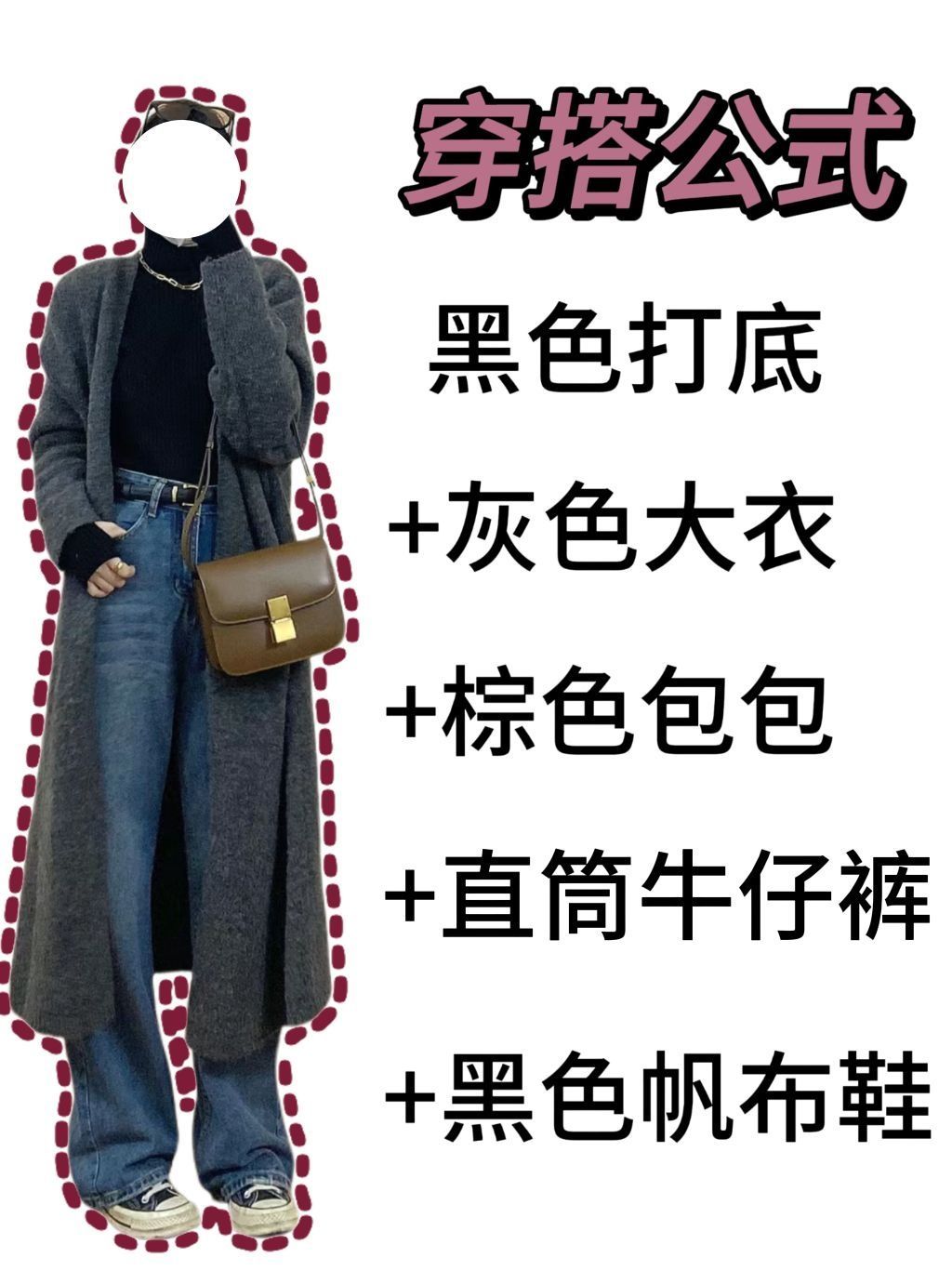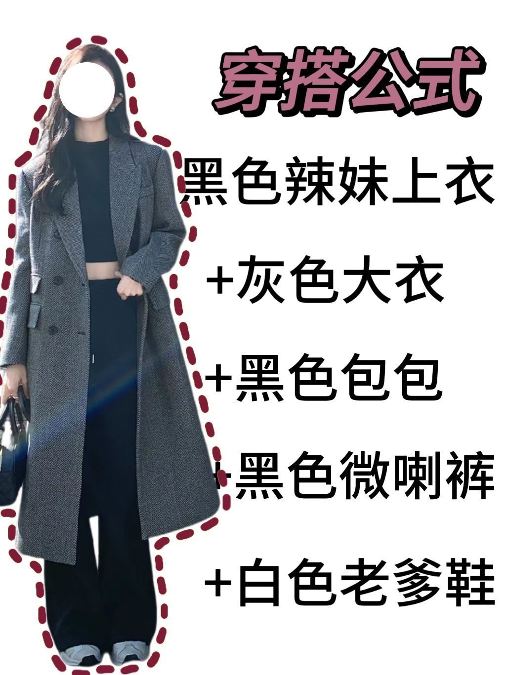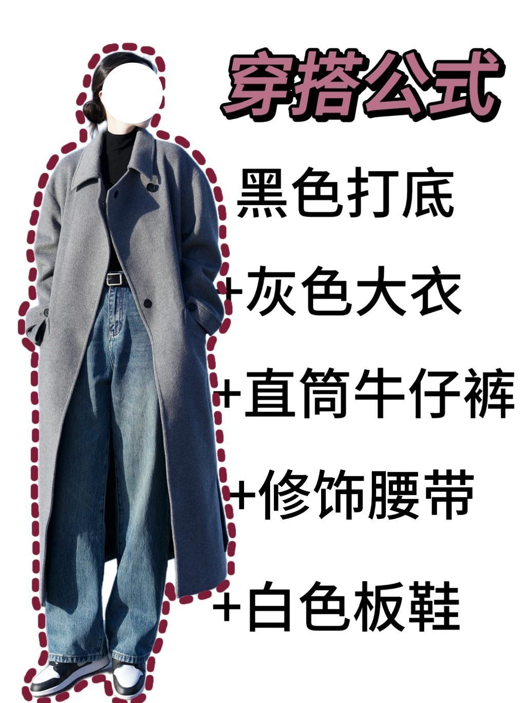 灰色大衣真的是超级经典又百搭的单品! 1.灰色大衣+宽松牛仔裤:简约又气质,再配上一条氛围感满满的围巾,整个就很韩系! 2.灰色大衣+黑色基础服饰:比如黑色打底衫、黑色裤子或裙子,轻松穿出秋冬的高级感。 3.灰色大衣+粉色内搭:灰粉搭配,温柔又高级,再配上一条灰色百褶裙或黑色裤子,就很好看呢。 4.灰色大衣+米色毛衣/藏青色阔腿裤:灰色大衣显质感,藏青色阔腿裤也是显质感颜色,两者搭配起来复古与时尚...