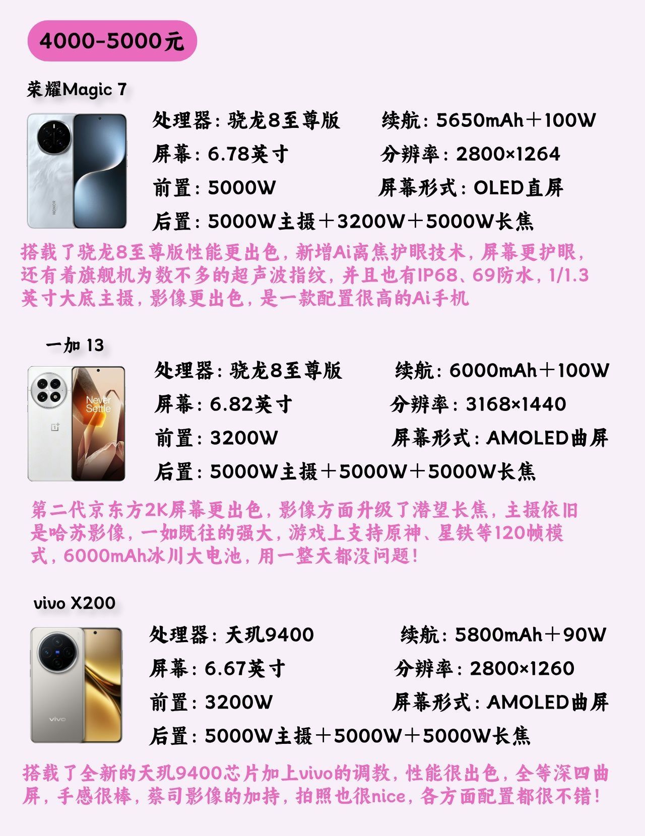 今年的双11已经接近尾声了,各大手机厂商的旗舰机基本上都已经出了,有一些手机目前价格性价比还是很高的,我把各个价位性价比很高的手机都列举出来了,大家看完之后,对于自己选购手机肯定有所帮助! - 🌸1000-2000 一加 Ace 3V、 红米Turbo 3、荣耀X50 GT - 🌸2000-3000 iQOO Neo9s Pro+、荣耀200 Pro、真我 GT6 - 🌸3000-...