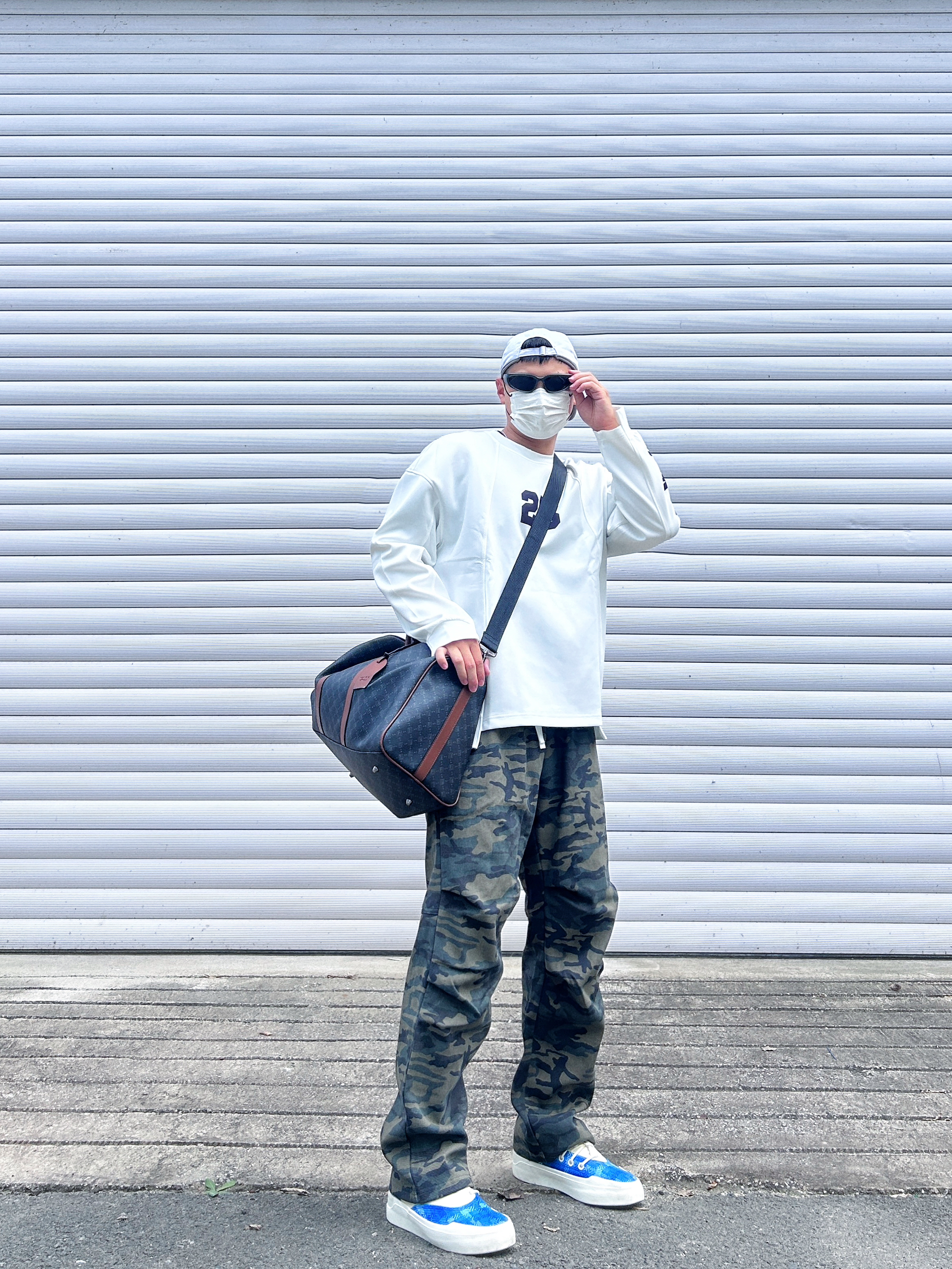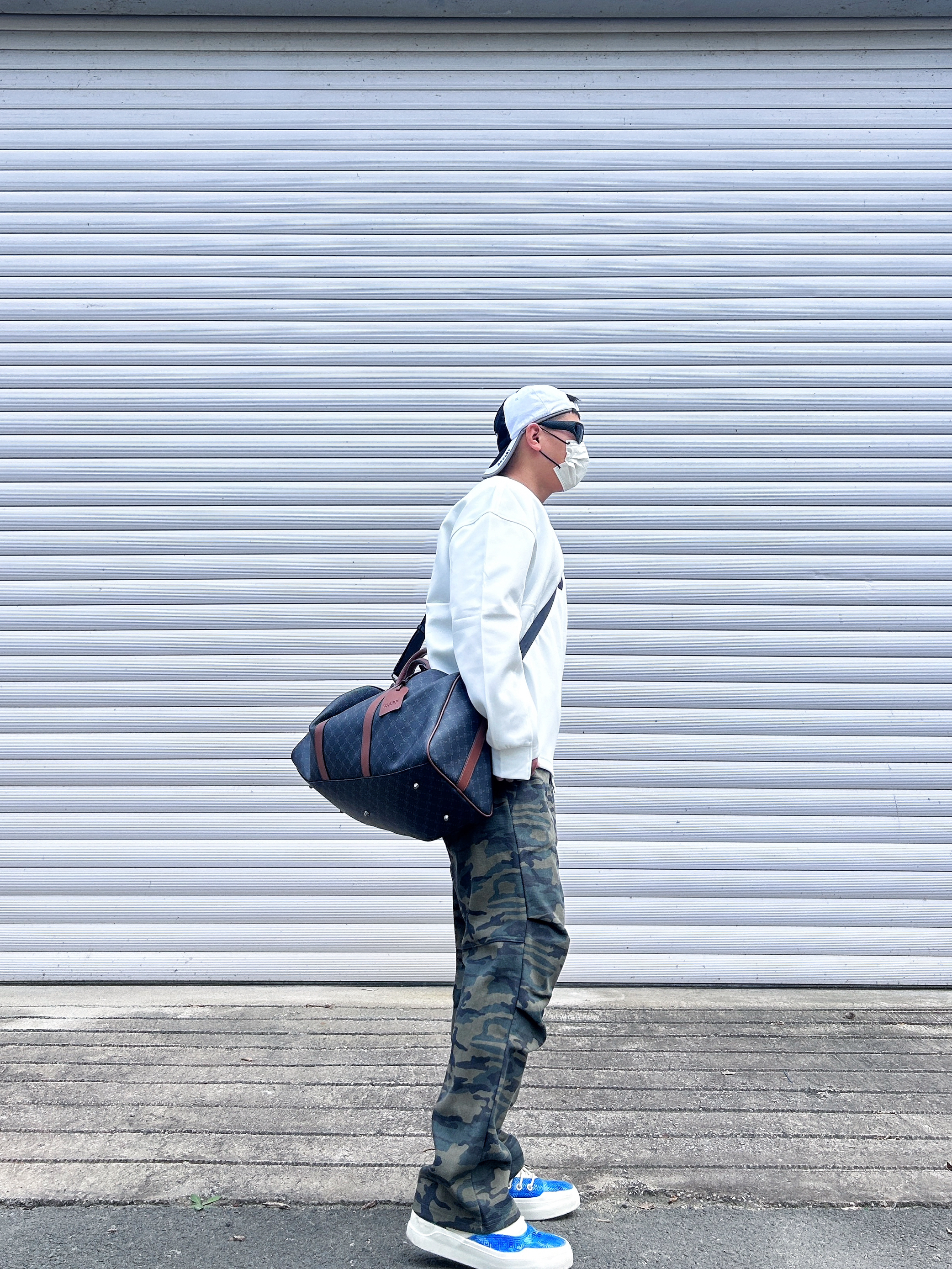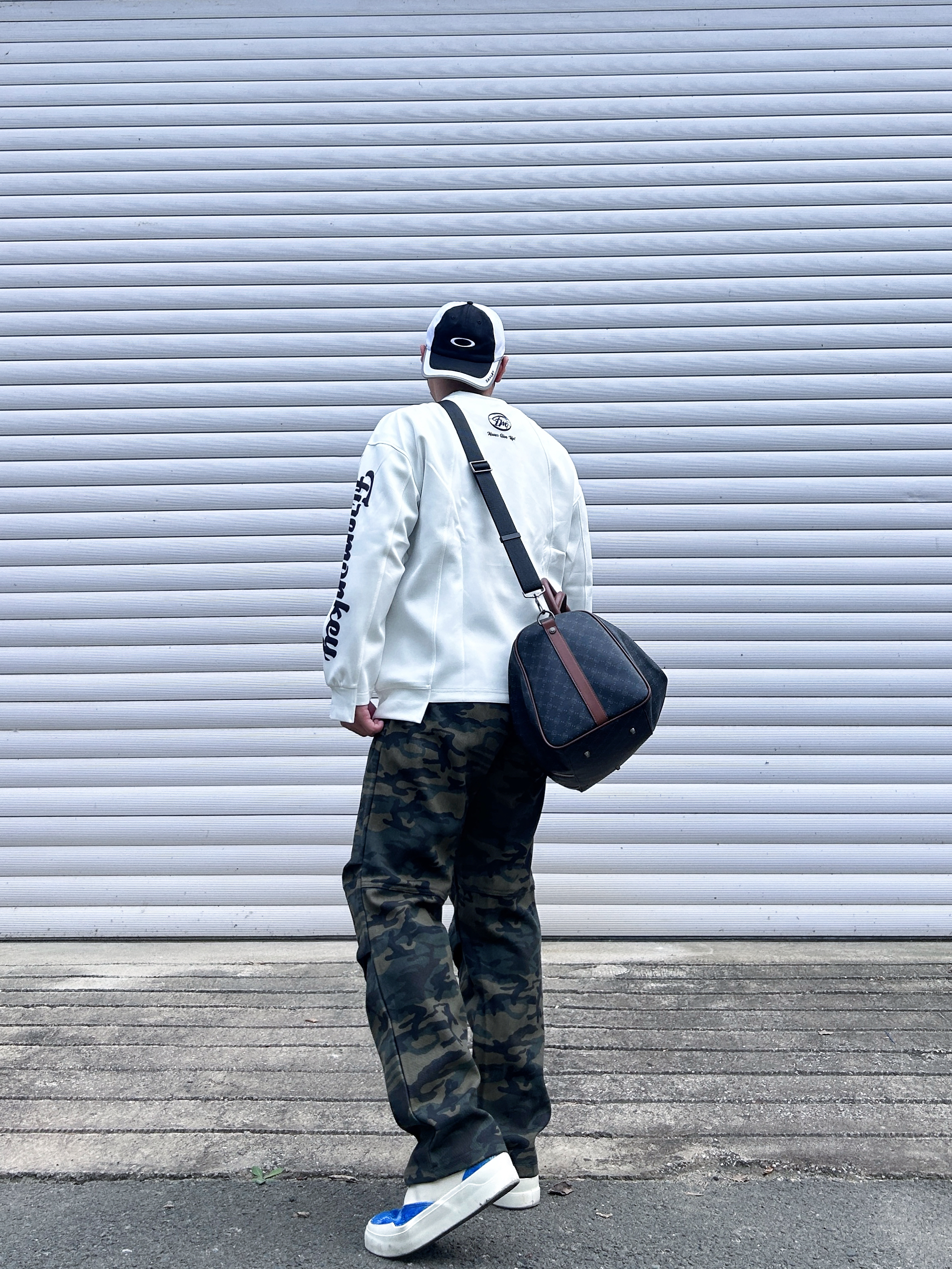 你的新的穿搭打开方式 最近天气渐渐变凉 上身一款美式的宽松卫衣 下面搭配一条迷彩长裤 整一个酷酷的健身包穿搭 马克华菲/FAIRWHALE 双面的印花皮质材料 容量很大,平时健身户外旅行都可以 单肩背着也很酷 情侣👫拍照📷出片