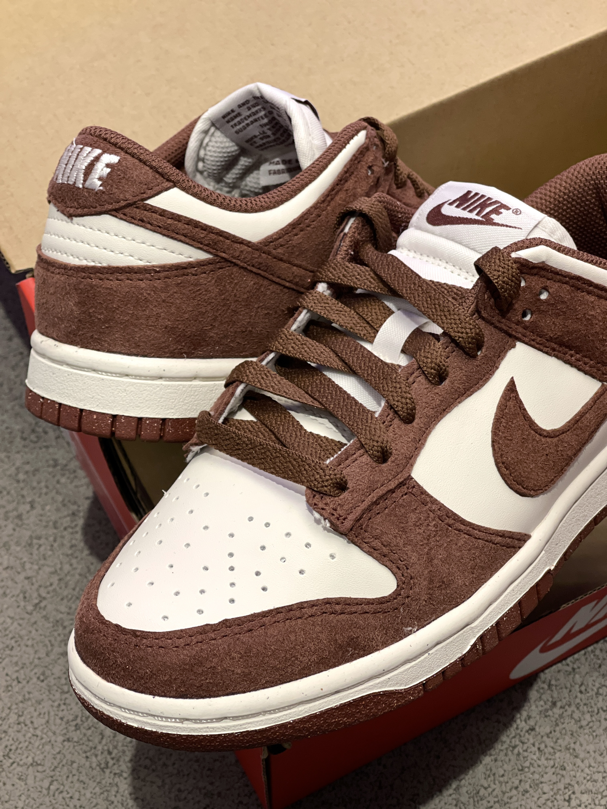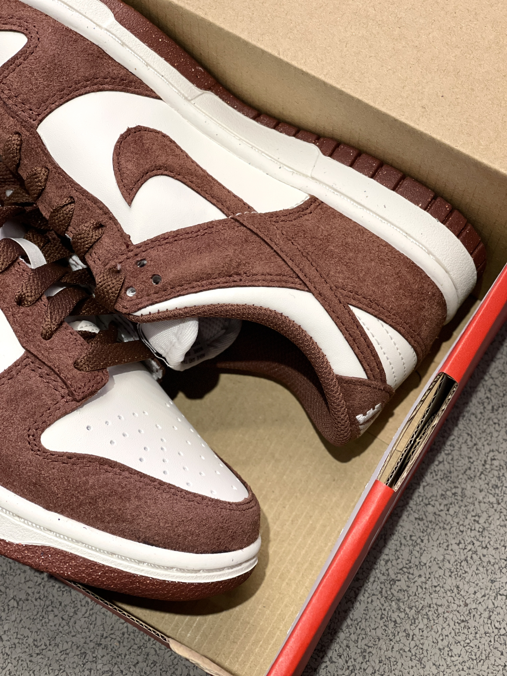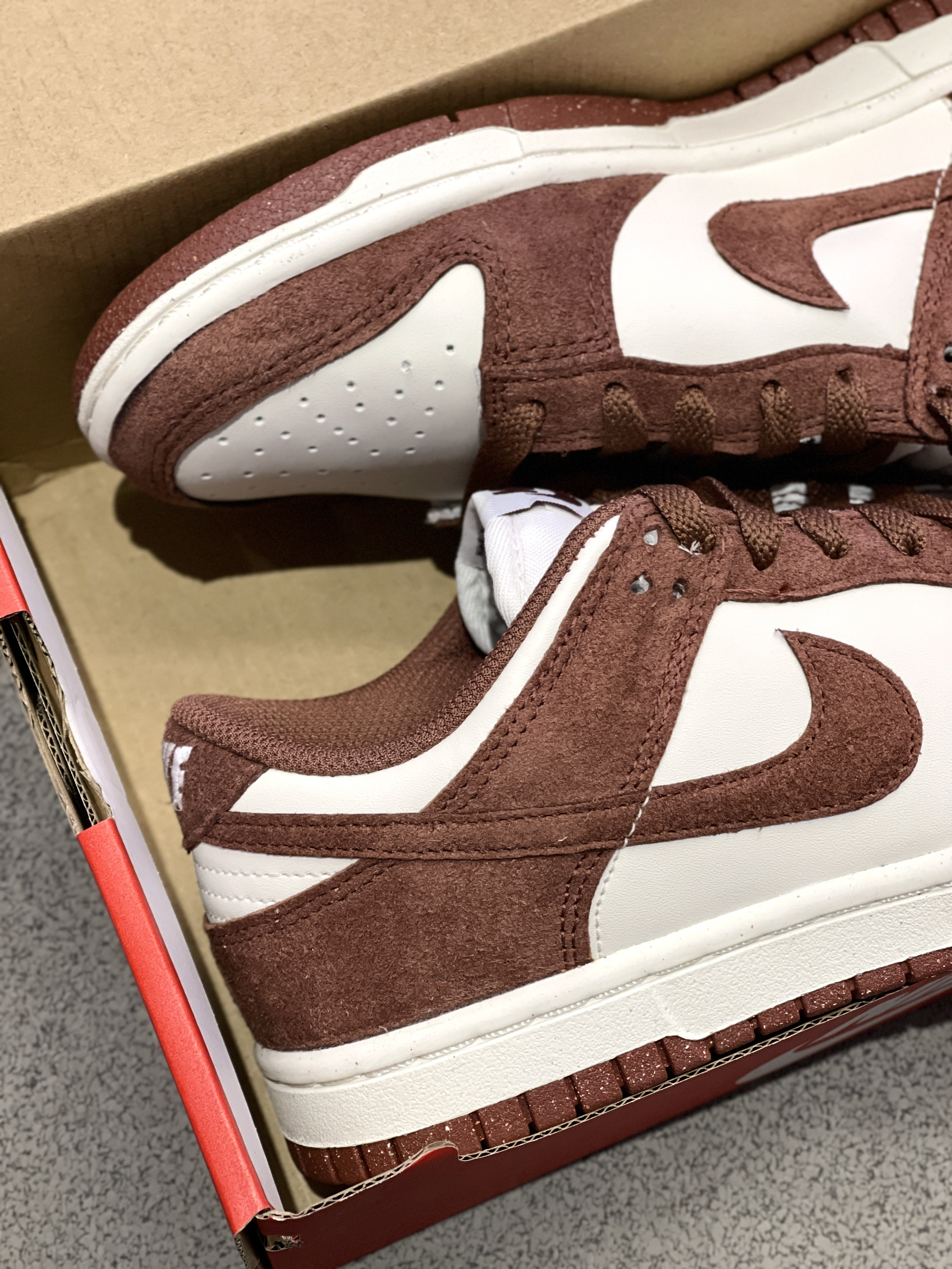 秋冬刷街单品准备好了吗!😍 Nike|Dunk 低帮板鞋“白褐色”♥️,实物开箱依旧是经典的低帮Dunk鞋型,穿脱起来舒服轻便,白色皮革➕红色翻毛皮,整体层次感十足,穿起来嘎嘎拿捏氛围感~🔥