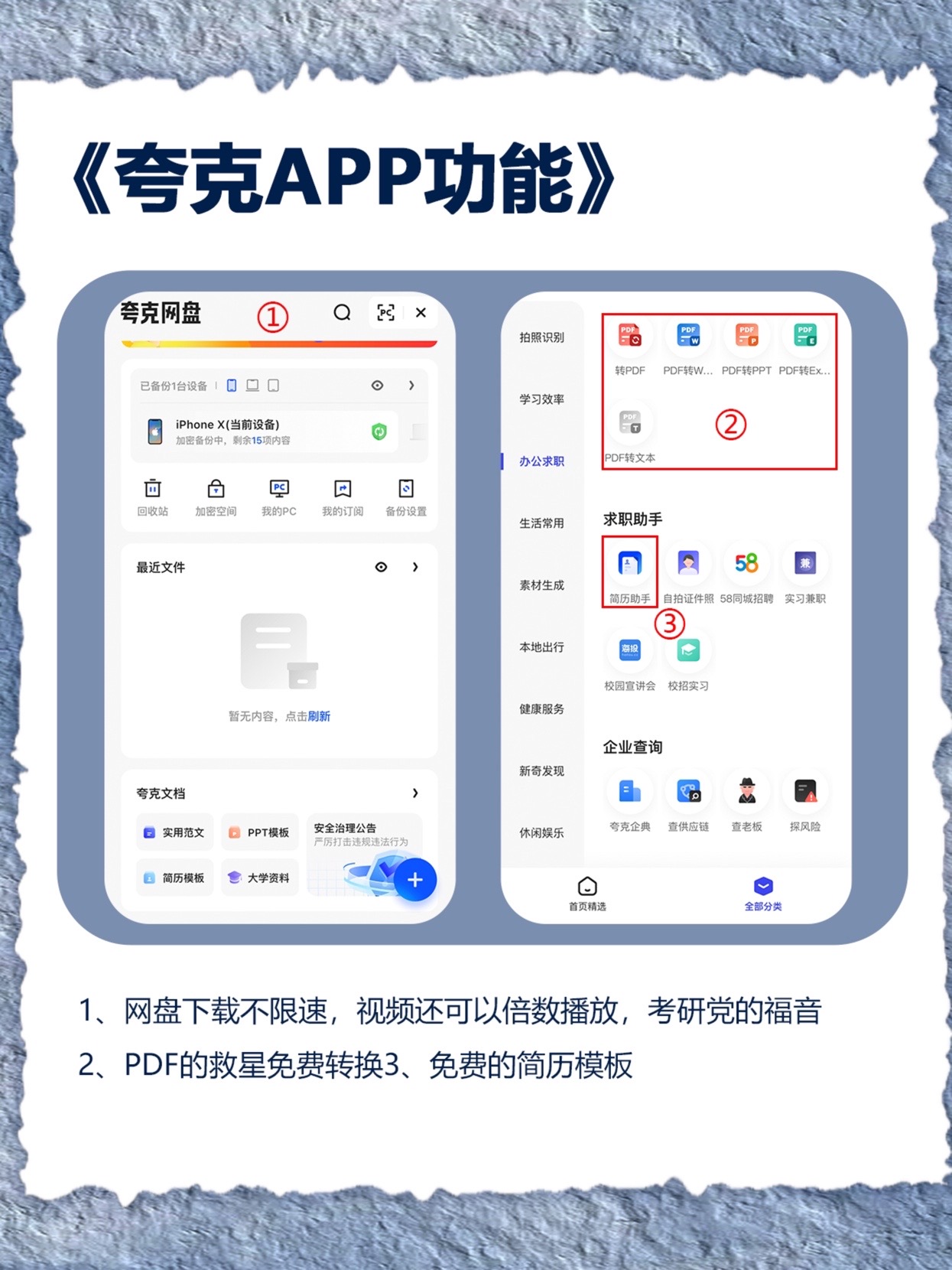 今日分享夸克APP的实用功能: 超多实用小工具、学习辅助、学生党追剧必备、没有广告的小说免去网页广告、免费的简历模板、PDF免费转换等等.. 是不是和我一样已经受够了其他浏览器的小弹窗小广告,看小说经常会误触到其他界面围烦都要烦死啦!我也是偶然发现,网页的小说可以直接转换用夸克自己的阅读器,真滴很干净,没有广告,还可以存档!!! 让我很惊喜的还有一个是Pdf可以免费转换成其他格式!重点是免费!!!...