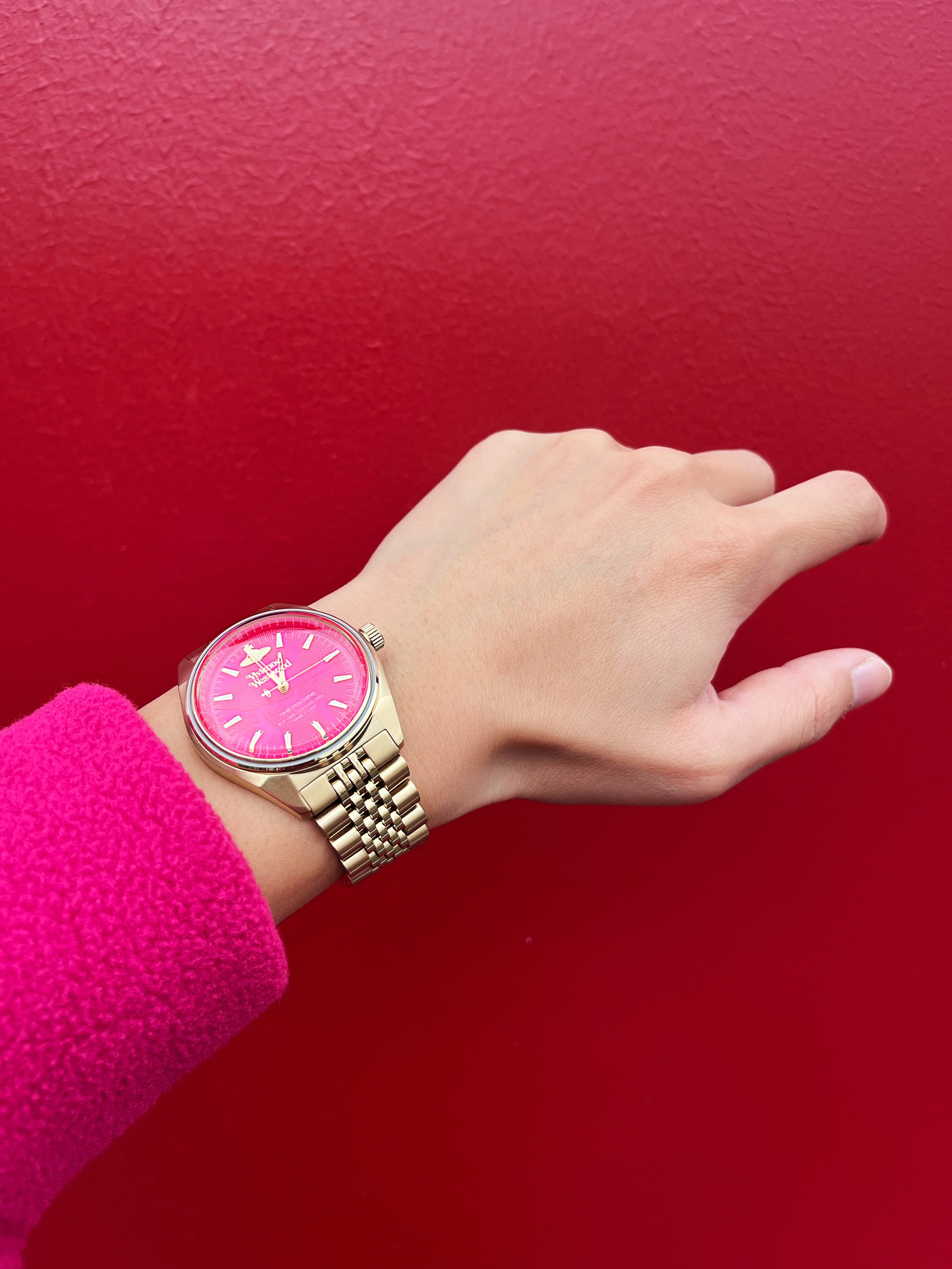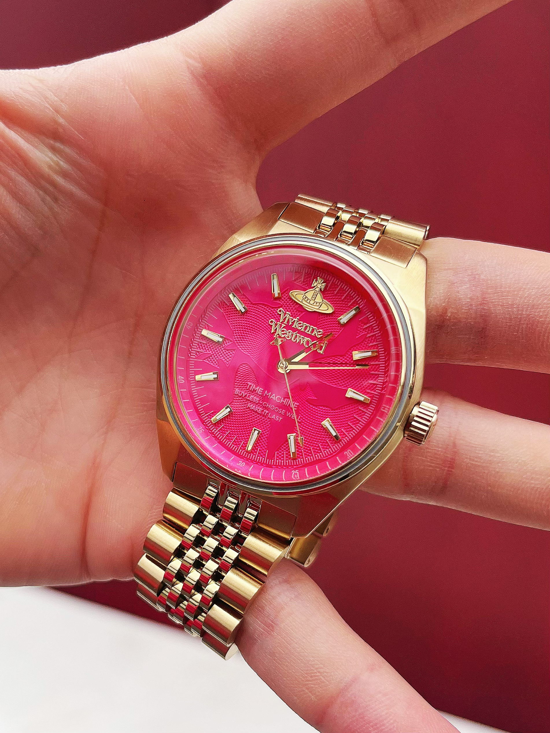 Dio今日份营业时间🕘 双十一的新货来了 这副西太后的手表我真的盼了好久🥹 实物真的很精致很好看 搭配一身偶尔穿穿的粉色系列✔️ 火龙果玫红色真的超级显白 腕间若隐若现的金粉,细节感拉满 女生拒绝不了,男生戴也腔调十足~