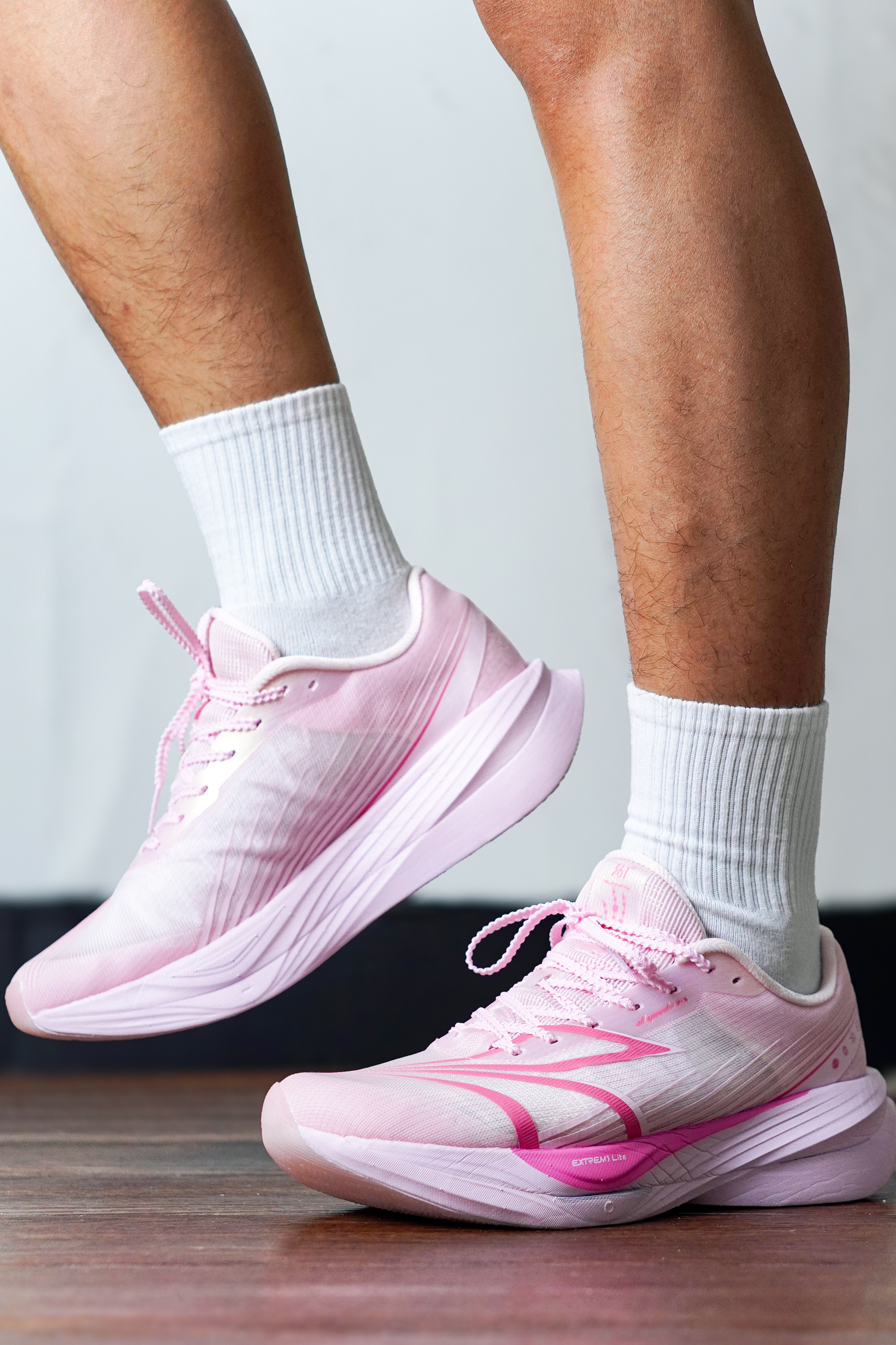 最近在跑步的时候看到了几个小孩哥穿的这双飞飚ET,果然是能让小孩哥爱不释手啊。那我穿了会有桃花运吗? 首先整双鞋上脚后整体对比飞飚系列产品里面算比较温和的了,鞋面整体的透气以及包裹都还是很出色的。 那么全掌的注碳推进板和粗胚发泡的中底组合整个脚感会更加软韧保持推进力的同时刚性不会那么强。 相比起来整体的驾驭门槛降低了很多完全可以作为日常竞训还是挺不错的。