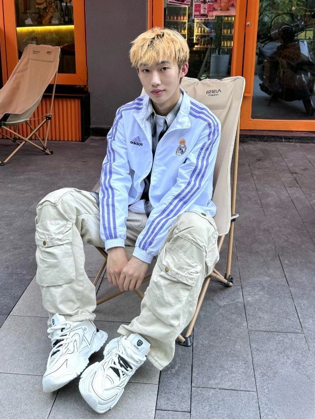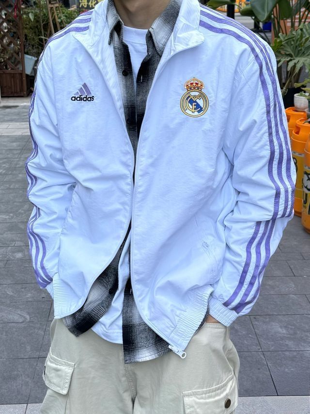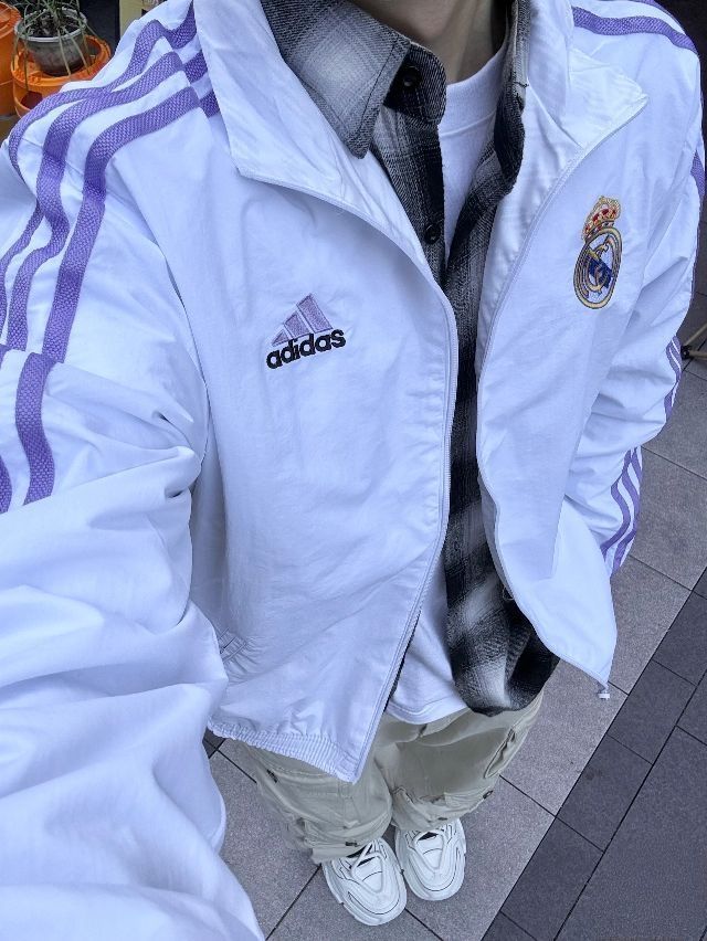 太爱白紫皇马球衣外套!好看! 内搭衬衫叠穿怎么都合适 米色工装裤,我的浅色系百搭小神裤 漫感老爹鞋真是设计感满满 结构性的黑白配色,简约又百搭 天气热也不闷脚不捂脚 清爽干净的穿搭太适合夏天啦立 今天这套日常或者约会穿都很棒喔