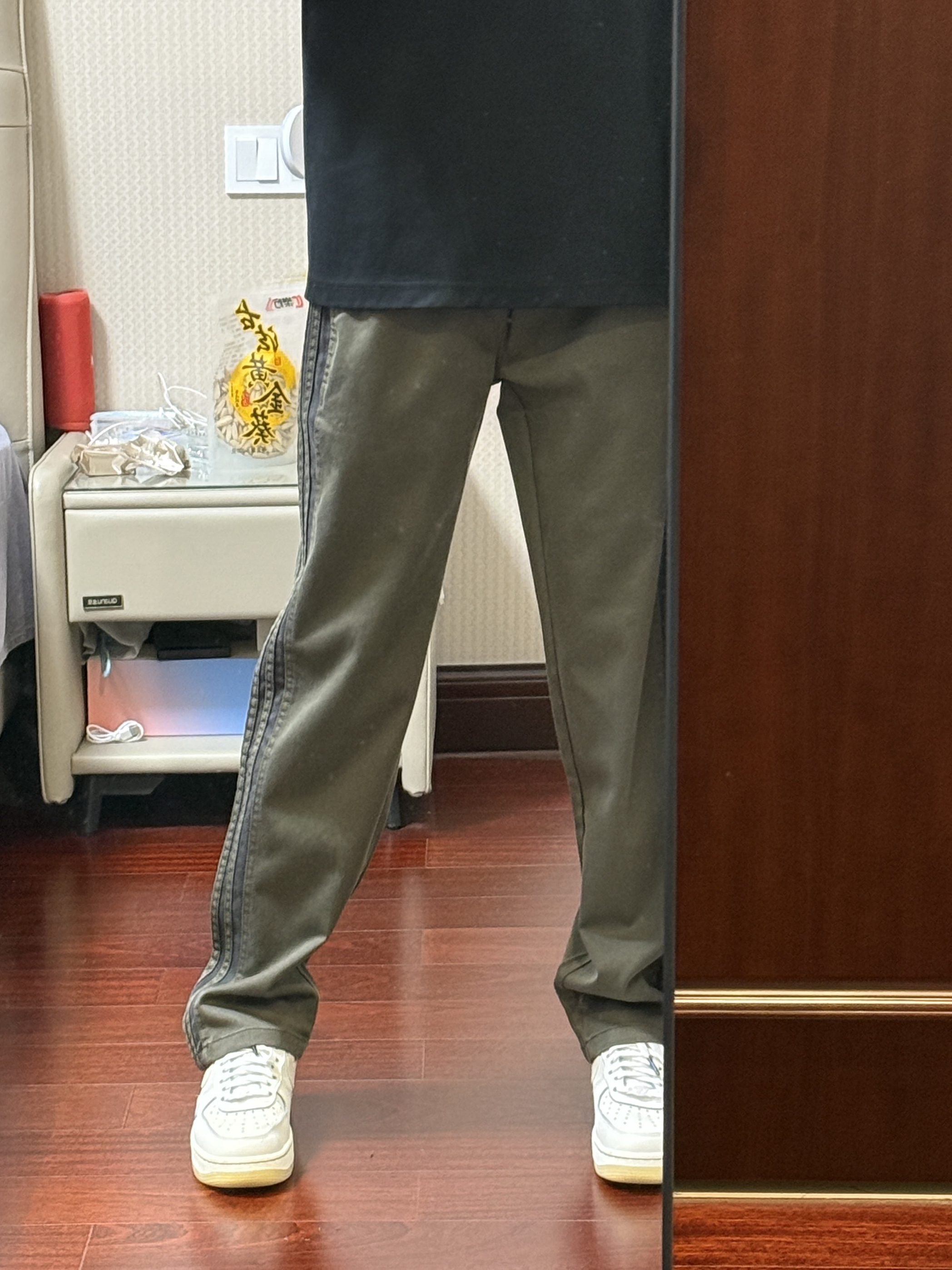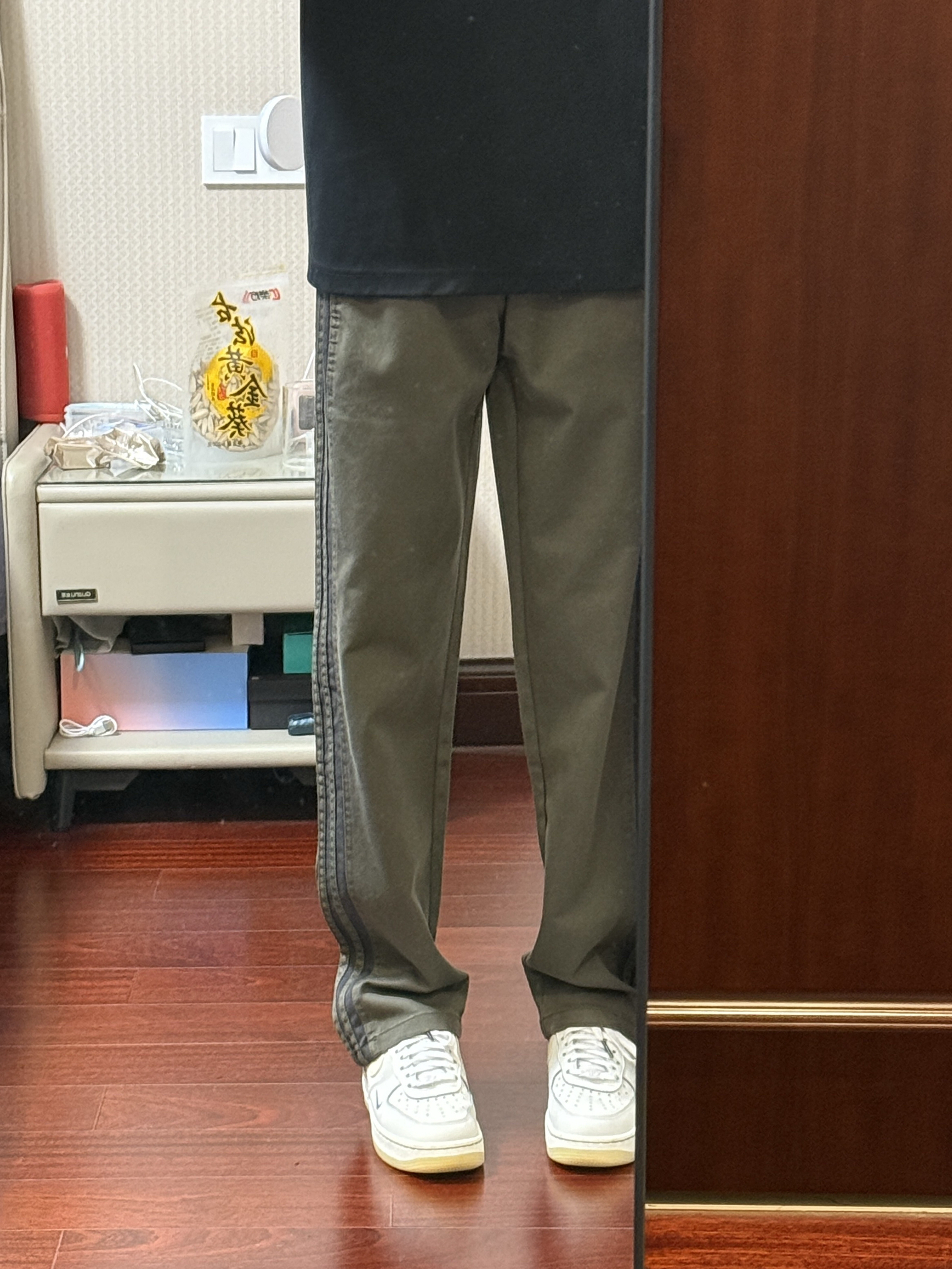 啊啊啊今天这条军绿色条纹直筒休闲裤真的太帅了,这个颜色美式复古风十足,侧边条纹很有设计感,运动风十足,直筒版型上身显高显瘦显腿长,男女同款,谁穿谁帅,我真的太爱这款条纹休闲裤裤了!简直就是我的梦中情裤啊!