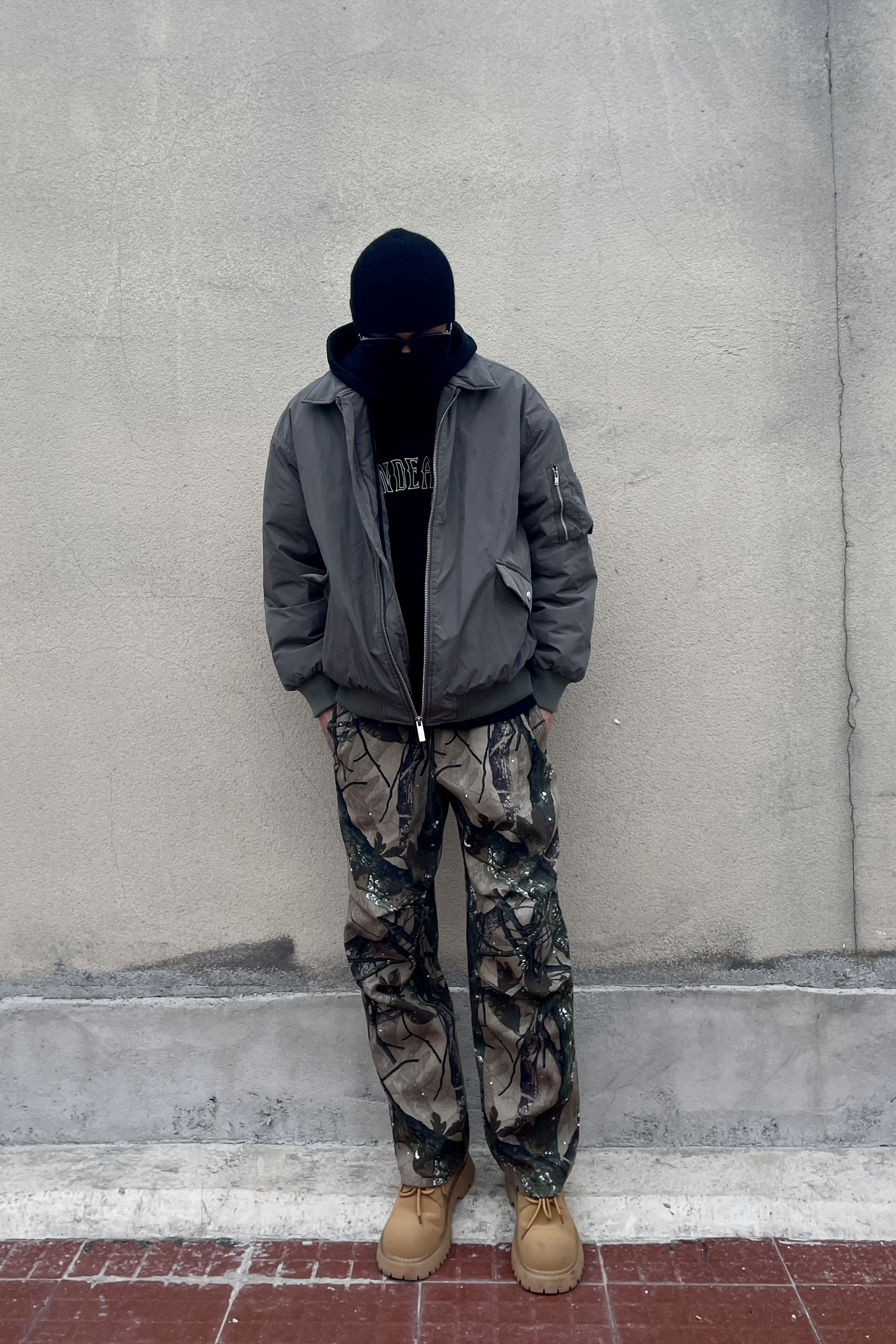 上衣搭配一件黑色短款卫衣 外套选择一件咖色飞行夹克 裤子来自UZIS的一条美式宽松直筒休闲长裤 内里加绒,适合秋冬 宽松版型,上身效果顶满 整个色彩也是街头感满满 做工用料都是很值得入手的 而且真的是性价比超高