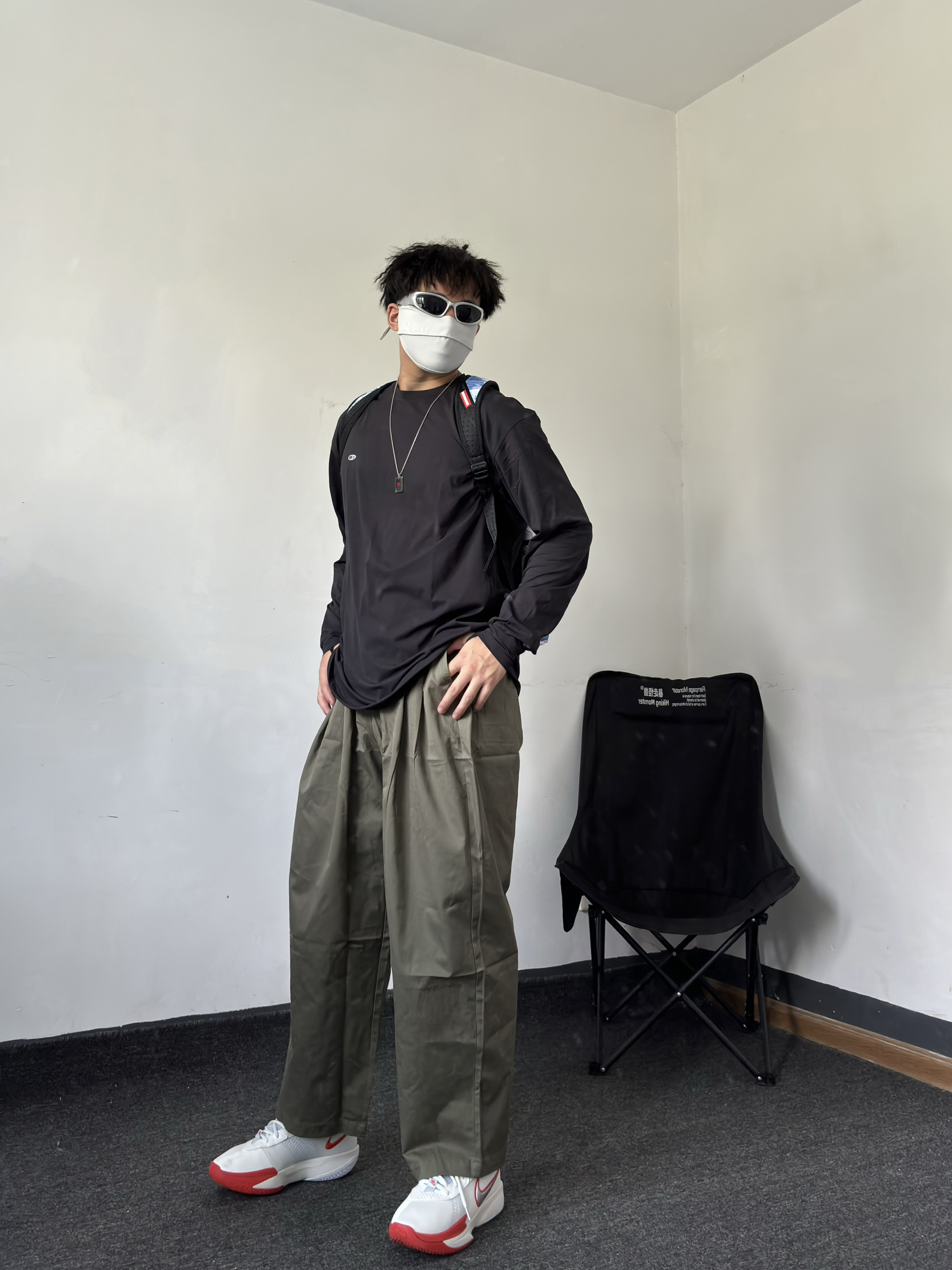 👔 NOTHOMME BLUE 👖 NOTHOMME BLUE 👟 Nike 今天搭配都是not的一套ootd 上衣黑色运动系挺宽松 下身深绿色直筒裤有点oversize 黑搭军绿色还是挺好看百搭的~ 搭配上gt3简版还挺帅呢