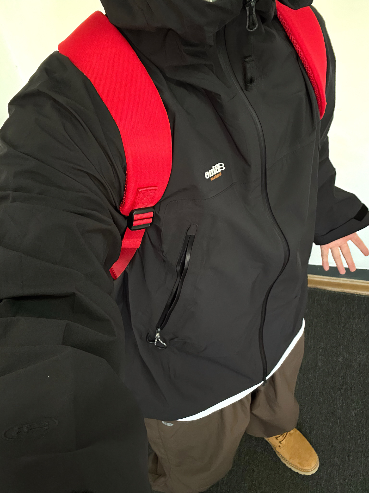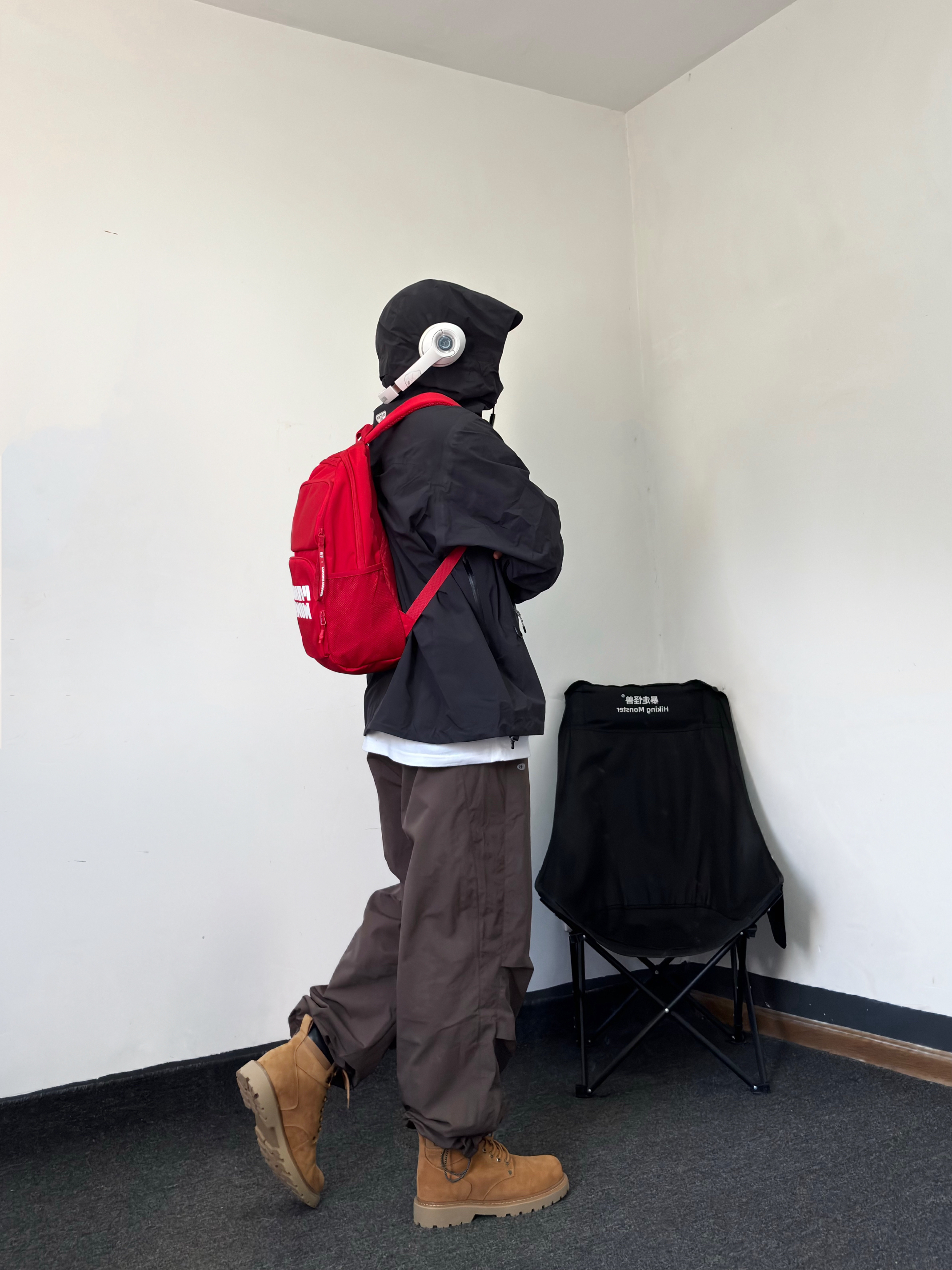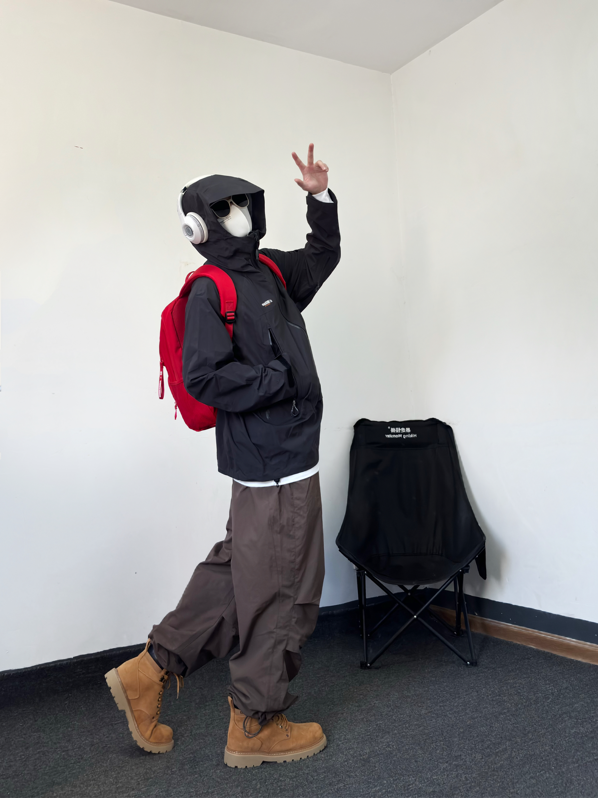 呦呵背上我的小书包开学咯! 身高176体重75 今天深色系冲锋一下 黑色的冲锋衣上身,轻便上身也不臃肿 户外爬山休闲都实用百搭 搭配一条宽松伞兵裤 有种怎么穿都挺帅的“错觉”嘛哈哈~ 👔 NOTHOMME BLUE 👟 海澜之家 HLA