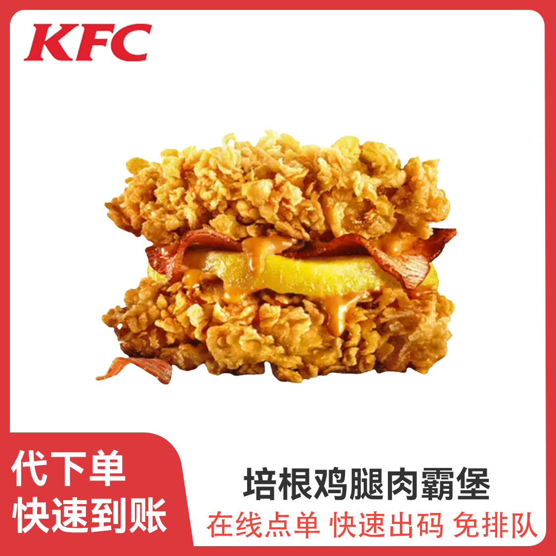 本篇笔记关联了KFC/肯德基 培根鸡腿肉霸堡 1个培根鸡腿肉霸堡等商品,为用户提供真实的使用体验和购买参考。