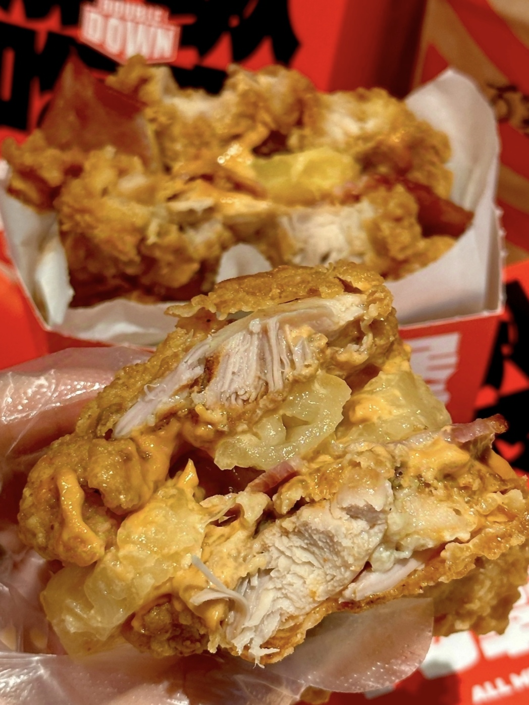 今天的快乐是肯德基给的🥰肉霸堡回归了!!肉食脑袋一整个爱住!!!!两大块香辣鸡腿排➕厚切菠萝🍍➕培根片🥓➕夏威夷风味酱汁🤤没有面包的汉堡🍔真的超级诱人了!!满嘴都是肉真的太满足了!!图源网络,侵删!