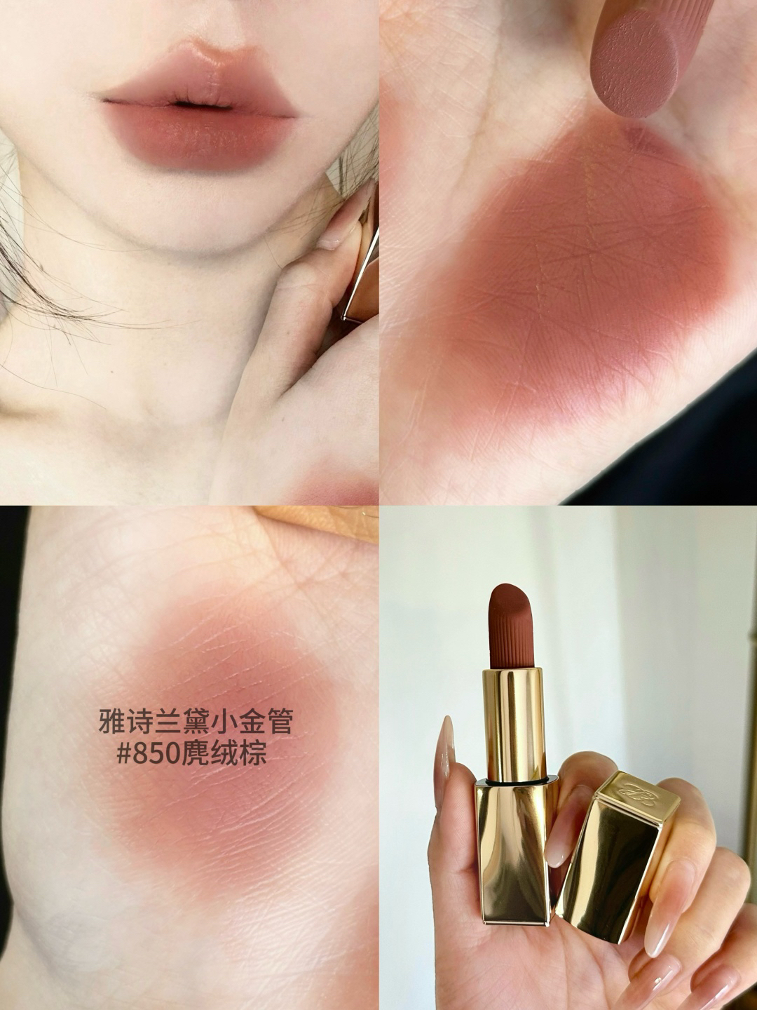 🍂秋季型人的大牌本命色系来了!|||一到秋冬棕门血脉就觉醒了!每一支都好有秋冬氛围感! #850麂绒棕[话题]# ✨雅诗兰黛作为掌管口棕界的神!这次彻底把裸棕玩明白了!棕调为基础色糅合了蓝调平衡因子,刚刚好的中和了亚洲人的黄感肤色,打造出了适合亚洲宝宝的低饱和灰咖裸棕!!搭配一抹即可饱满成型的麂绒质地,丝滑细腻又自带高级质感,简直把高智感写在脸上!!轻松拿捏秋冬的慵懒惬意~大衣毛衣随便配! 🍂63...