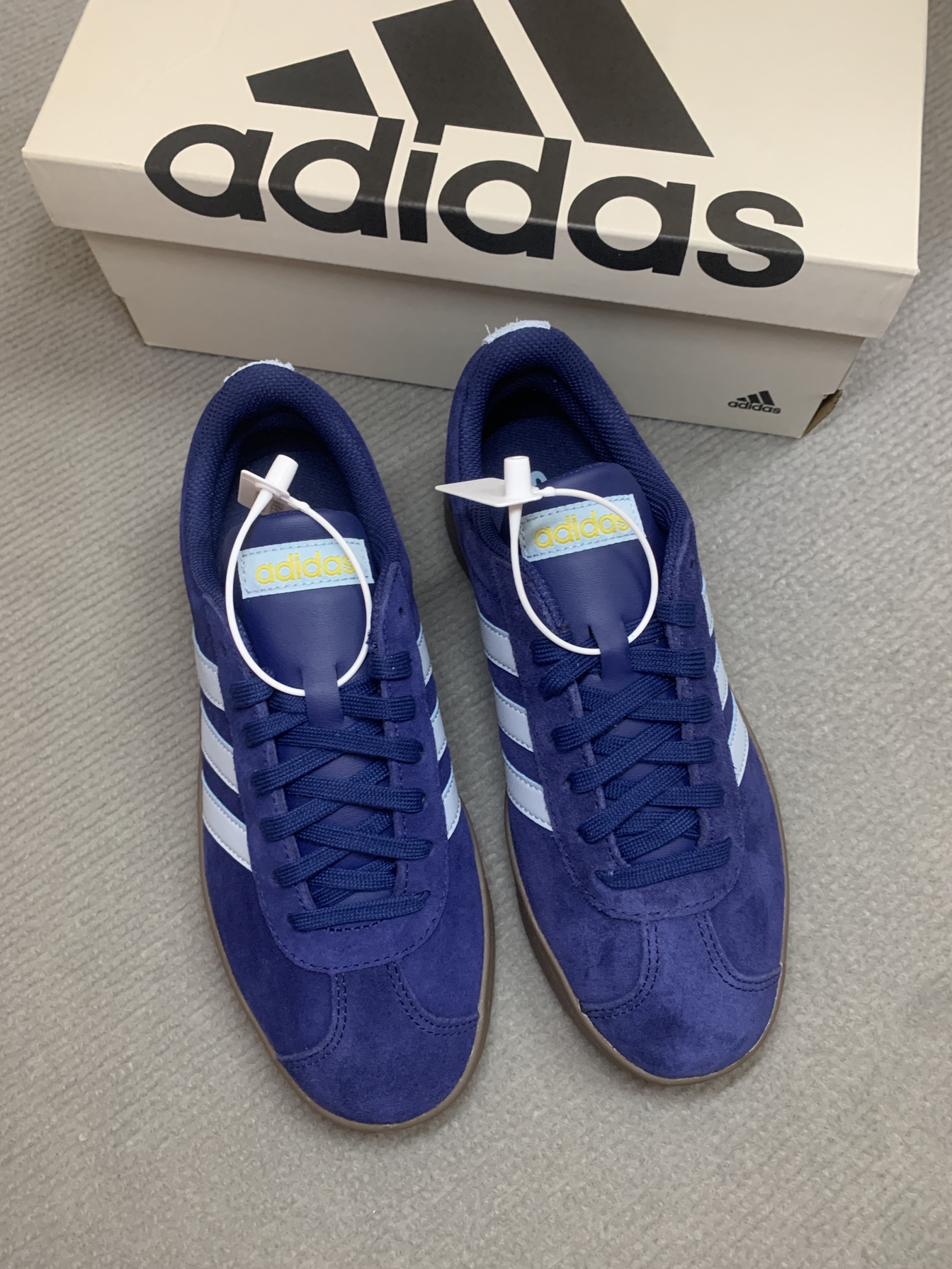 adidas vl crout 2.0 德训 t字头新配色 深蓝色 脚感还可以 比较舒适 建议穿厚一点的袜子有点磨脚鞋底橡胶底 不会打滑的 室内与室外有阳光的情况下有色深度会有所不同 经典的德训鞋很百搭 穿牛仔裤 短裤依旧很好看 三百多的价位很值得大家入手