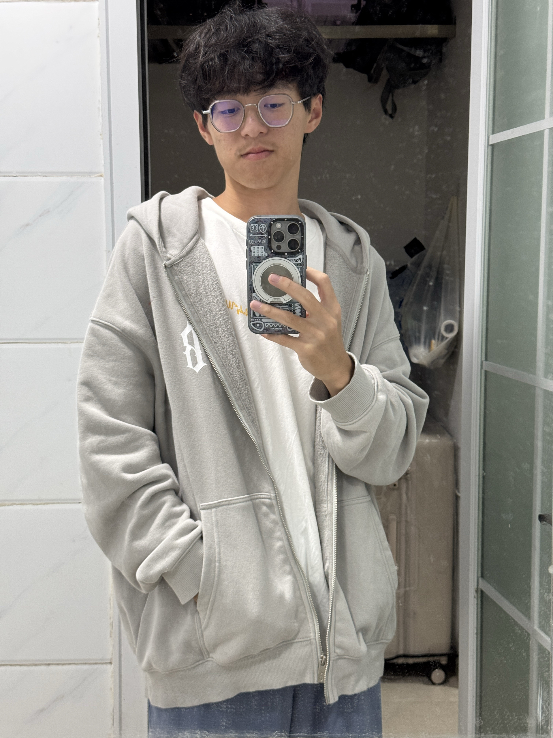 首先boneless这款卫衣外套真的很好看而且很好搭,蓝灰色很高级也有质感 重点重点他的内里面不会显得质感差,不像有的灰色或者白色款的卫衣外套里面满满的无纺布的感觉很劣质,这款完全不会,而且拉链的金属带来的质感和颜值的提升真的细节 整个不是很很很宽松版的那种,不会特别阔但有一点非常适合出门拎上直接穿走很舒服,还有其实不算很厚秋天刚刚好里面一件短袖,本人173,55kg买的xl大概这样,可以买大...