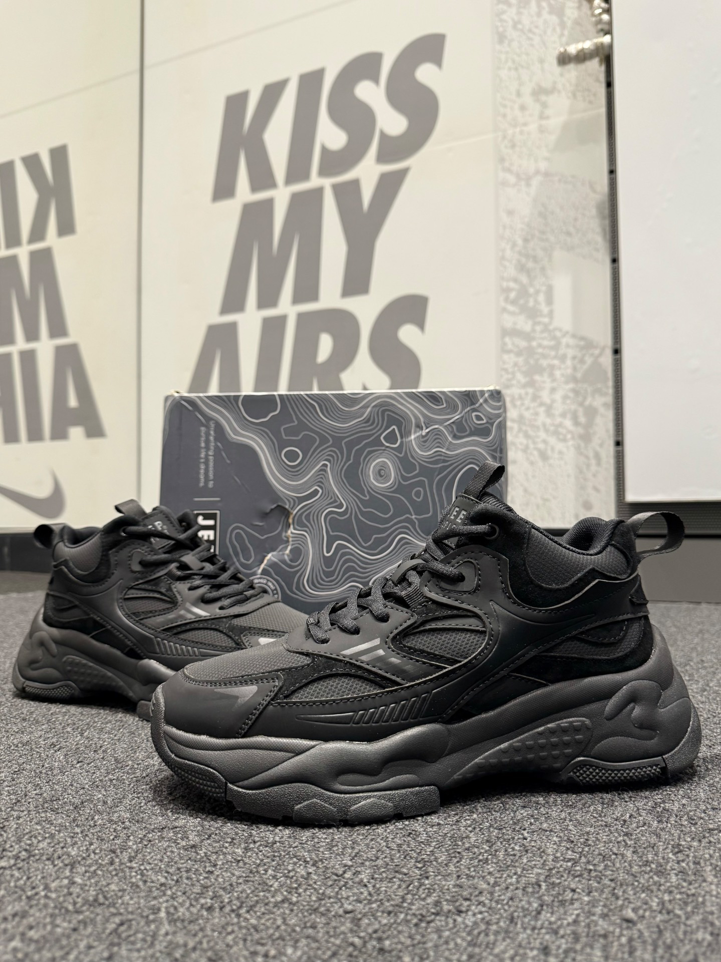 Air Jirdan 卫衣➕直筒牛仔裤➕ #Jeep 黑武士老爹鞋,这双黑武士尊嘟是我的心头爱,霸气黑色,高级感中的酷帅,穿上颜值是真的高,而且脚感完全不用担心,舒适又轻便,中底还有微微增高效果,真的是一整个爱住的宝藏老爹鞋。