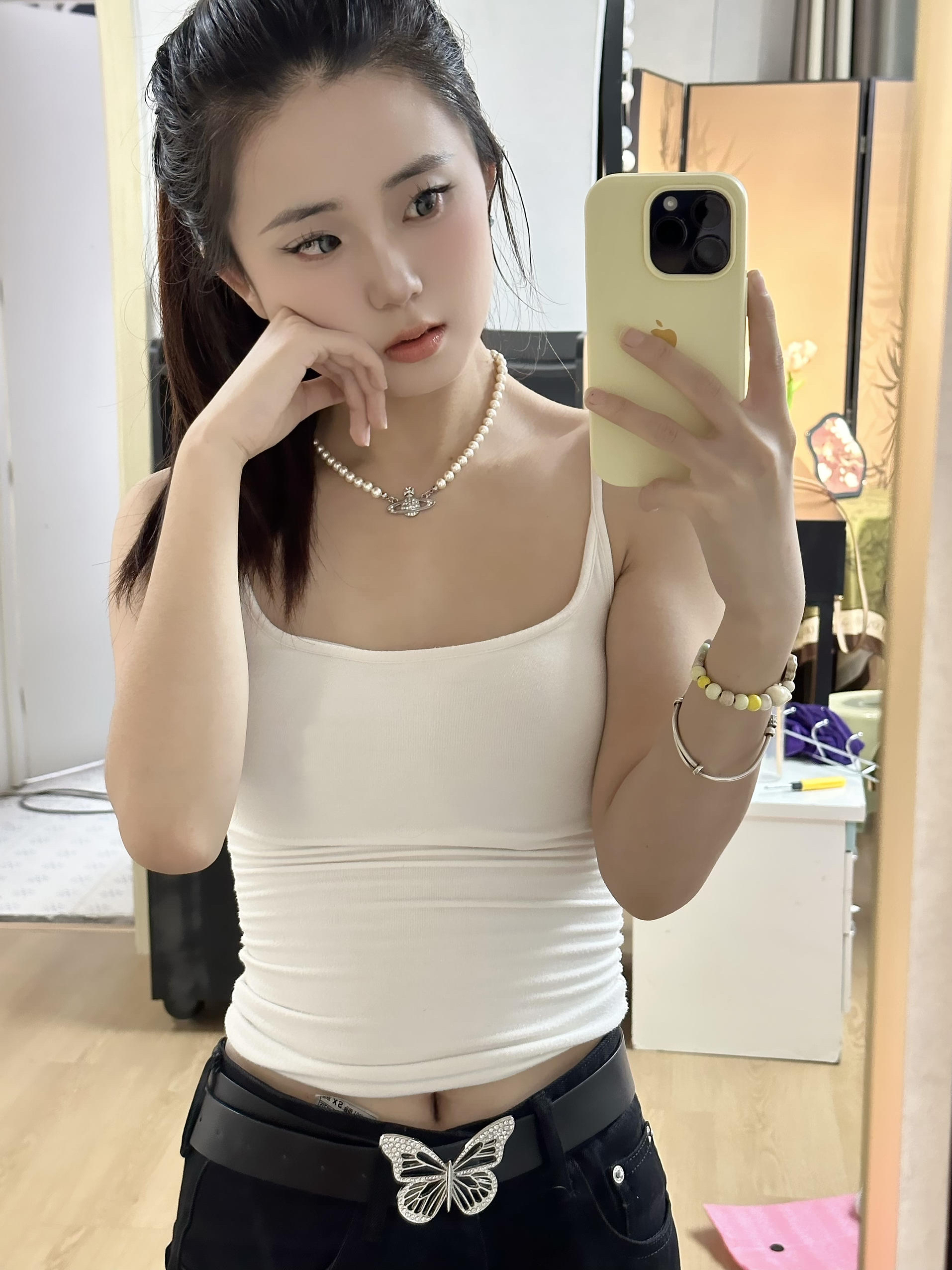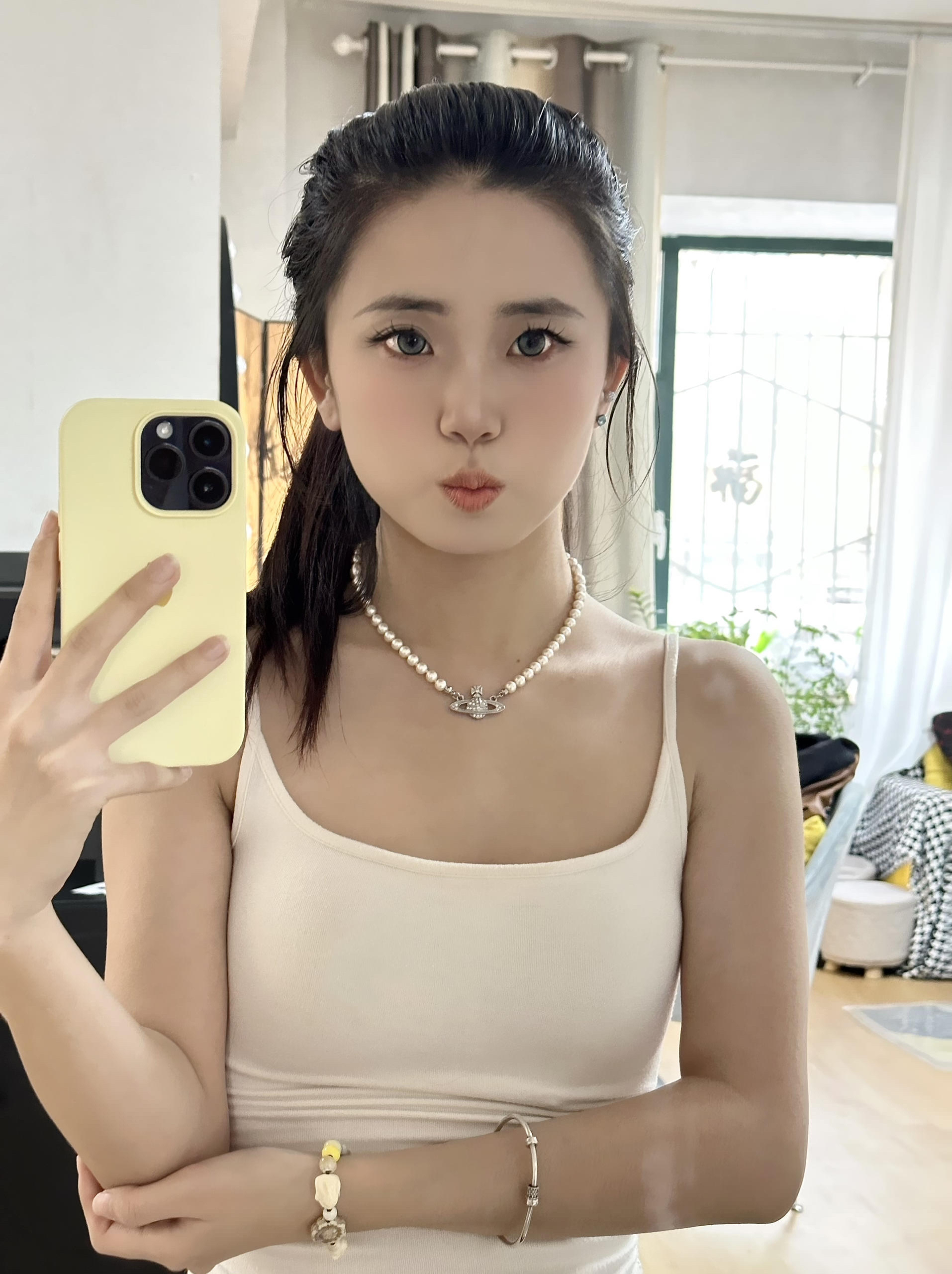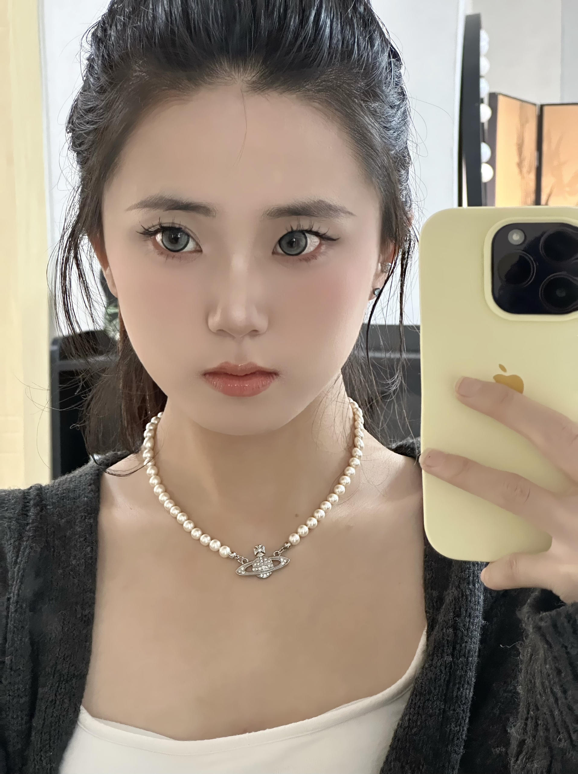 有没有一眼看到闪闪的项链~ 我觉得这就是照片的点睛之笔! 提升整个人的精致度! 戴上就是千金公主风✨✨