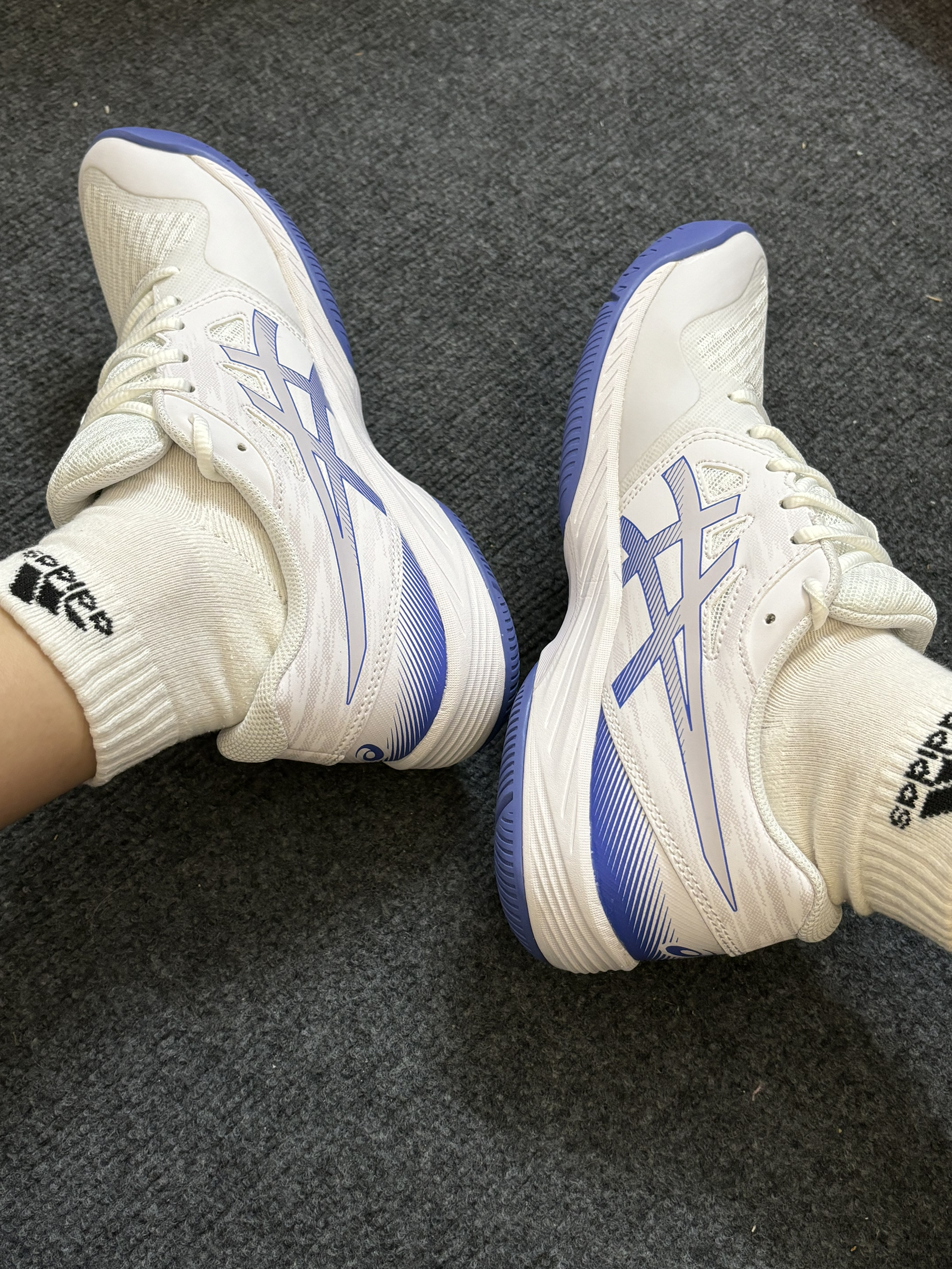 这是颜值很好看的亚瑟士羽毛球鞋 侧面logo很有辨识度[机智_blue] 白蓝配色简约又百搭 很有少年感 织物鞋面透气性好 打球不闷[强_blue] 鞋子不偏码